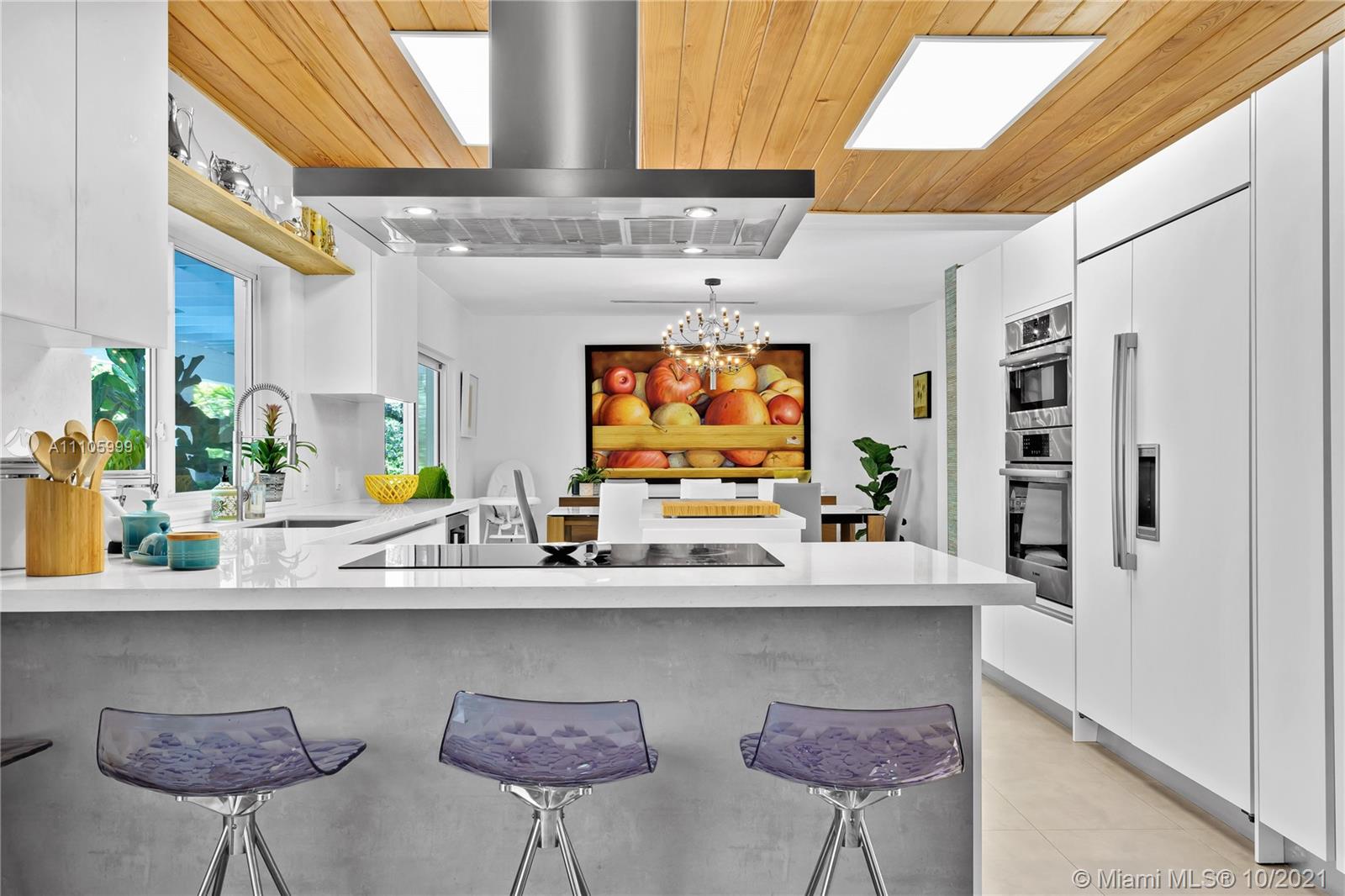 Stunning completely redone 5BR/4.5BA home. This beautiful home is finished to perfection with an excellent split plan design and inviting indoor/outdoor living. A spacious layout that includes a new Kitchen with Bosch appliances, SubZero refrigerator, overlooking the pool & patio area. Formal living/dining room which have views access to the covered patio/pool area & private garden with tropical design landscaping. Expansive master suite with big sitting area or private den, walk-in closet, master bathroom with a view from shower to the tropical landscape & pool. A second master bedroom, 3 bedrooms and 2 full bathrooms, one with access to the pool. The house was completely redone in 2019 including new electrical system, plumbing, a/c units, impact windows, metallic roof, new generator.