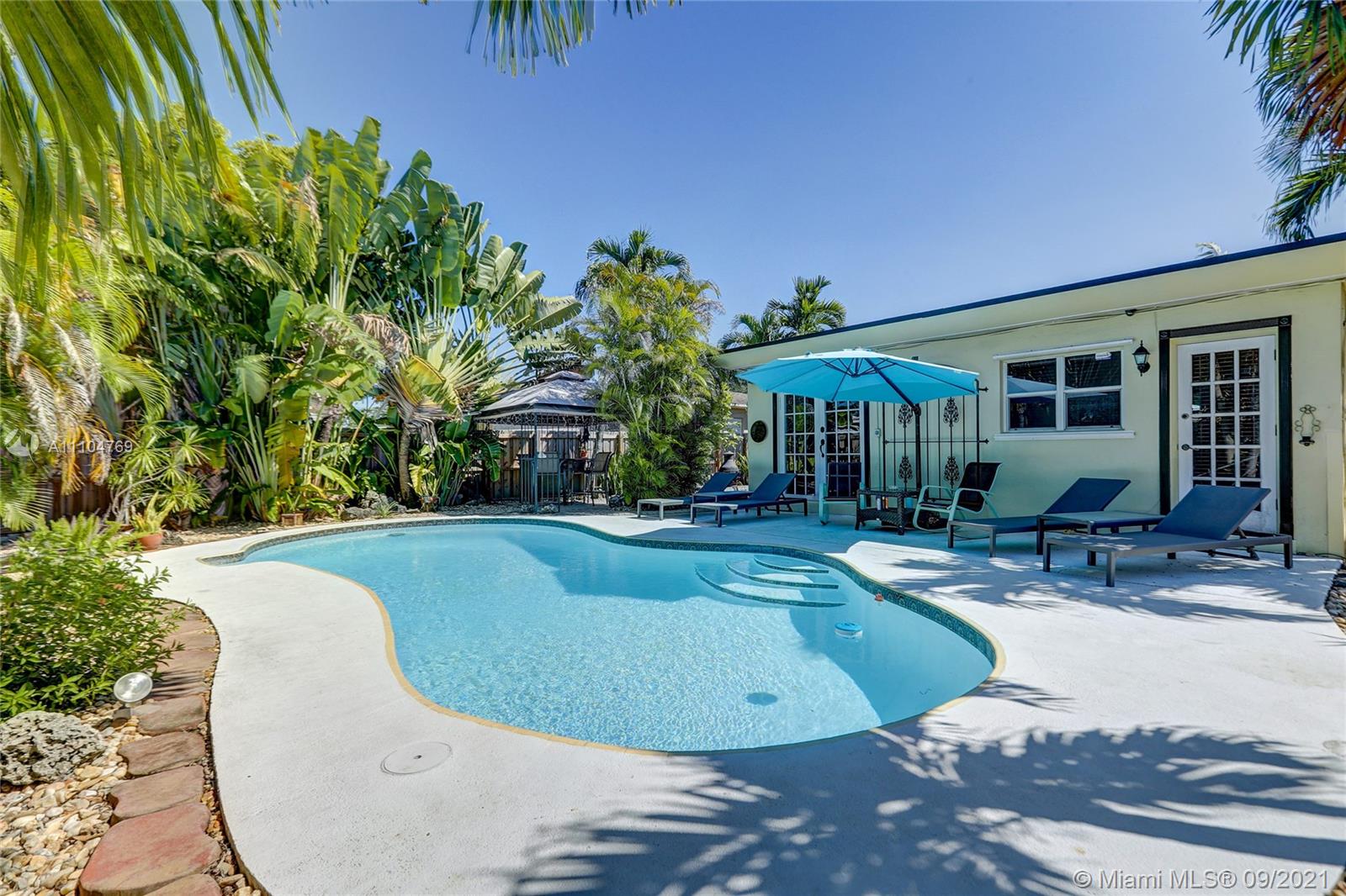 THIS IS IT! Don't miss your opportunity to own this Move-In Ready, beautiful 2 Bedroom 2 Bathroom, well maintained, single family home in the perfect location of Hallandale Beach! Extra living area space could easily be converted into a 3rd Bedroom! Lots of natural light, spacious living room, walk in closets, featuring french doors, and the best part, a tropical oasis-style backyard with a pool, perfect for entertaining! NO HOA. Minutes from the beach, major highways, tons of shopping, and parks within walking distance! Perfect starter home or investment opportunity. COME MAKE IT YOURS TODAY!