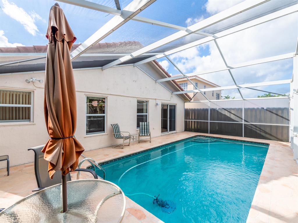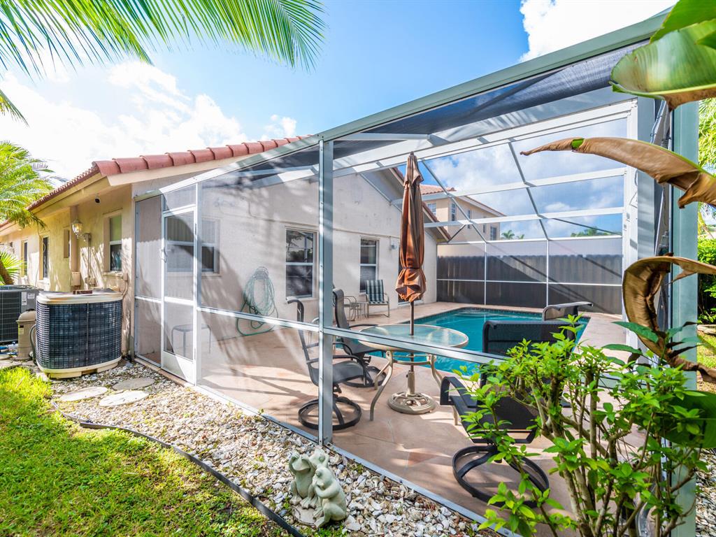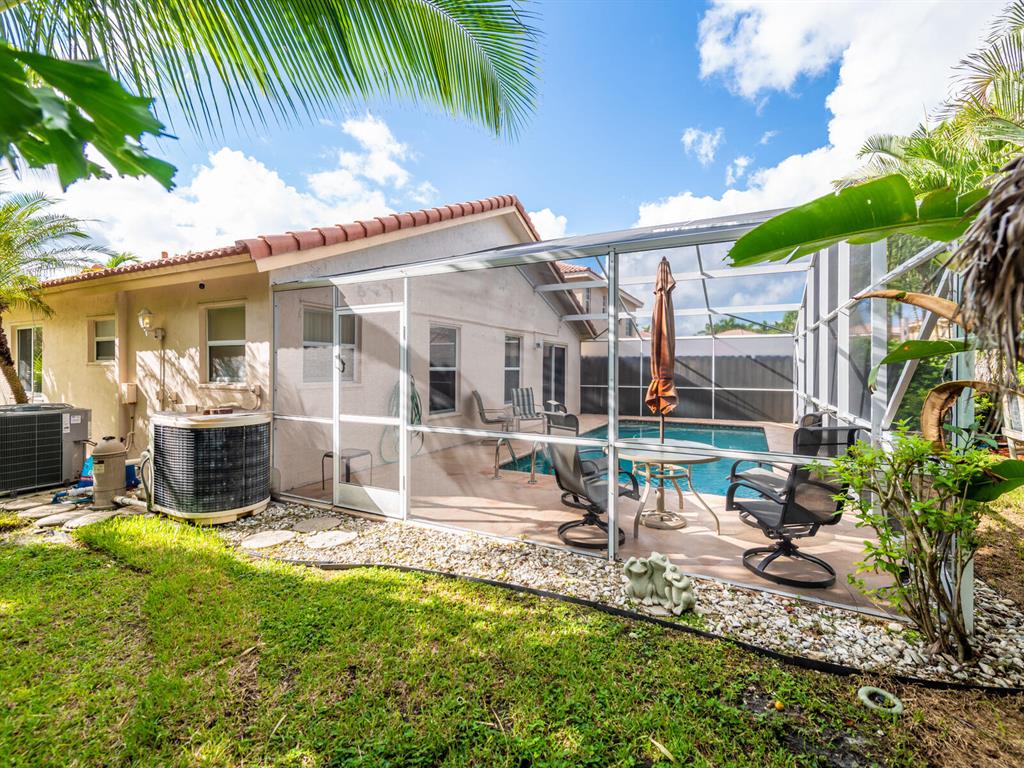 Enjoy living in a tropical oasis with a lushly landscaped backyard with heated, screened pool and a tiki hut to enjoy outside dining or just enjoying the surroundings. Lovely 3 BR home with 2 car garage. This is an immaculate and well maintained home with an updated kitchen including granite countertops and stainless steel appliances. The home has been freshly painted and is ready for move in! Vista Filare is centrally located with easy access to highways making your commutes easy. EXCLUDING the RING door & ARLO camera systems.