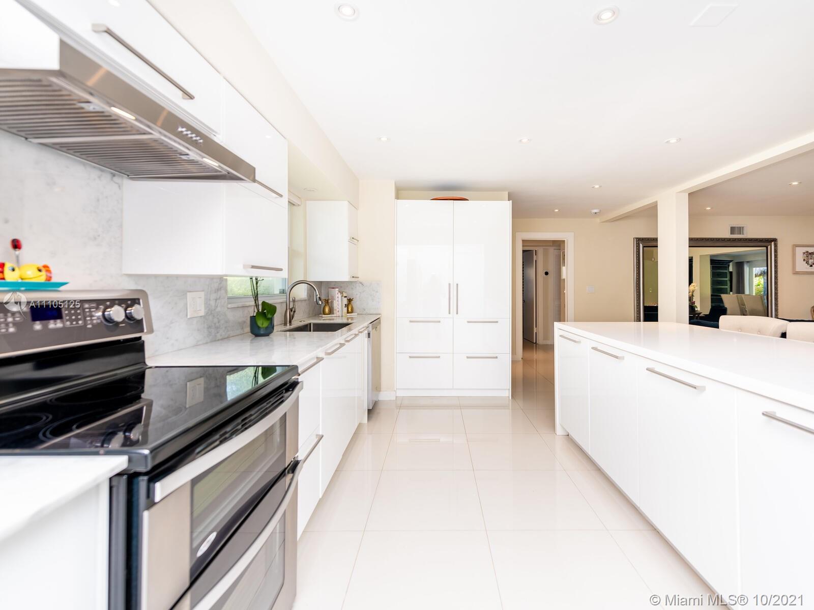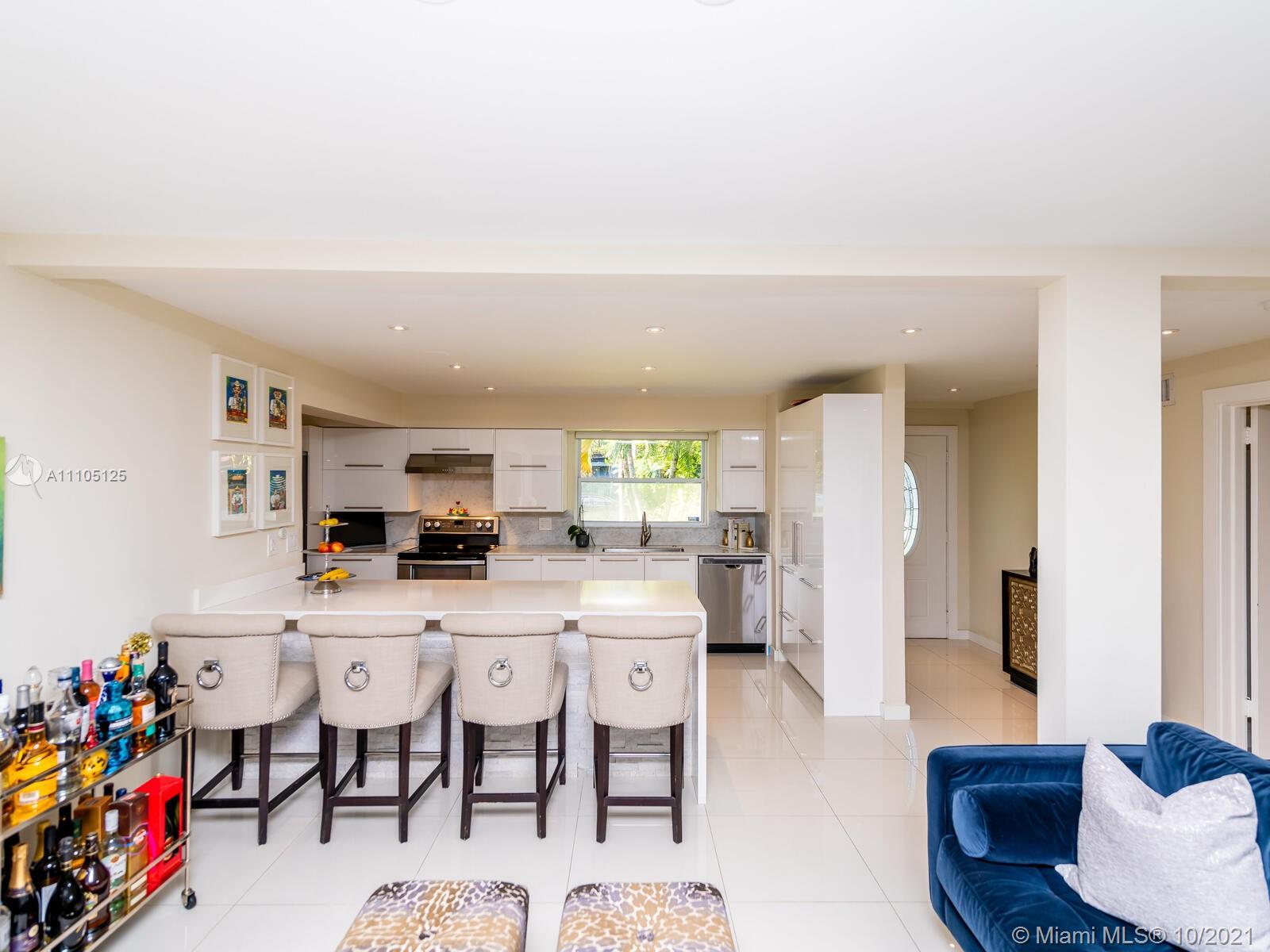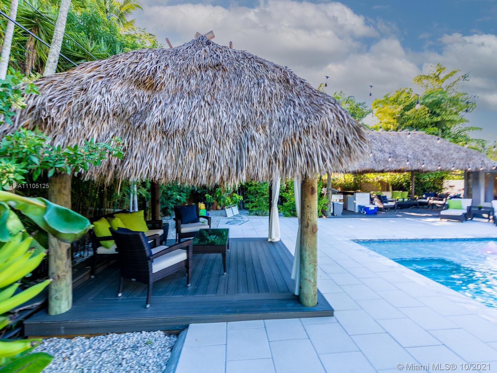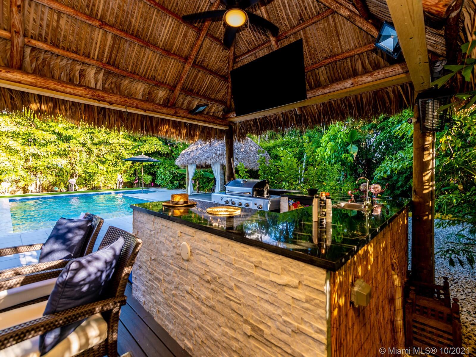 Stunning 3 bedrooms and 2 bathrooms completely remodeled with plenty of custom closets. The home boasts a large living space with plenty of natural light, white porcelain tile throughout, motorized shades, Italian style kitchen cabinets with quartz countertops. Master bedroom with sitting area to enjoy book reading or the captive view of your private oasis backyard. This is the perfect place for your staycation plans, as you can be entertained by the brand new resort style pool that can be used all year round! The pool features a gas heated system which will keep it warm. Also, enjoy the outdoor TVs and speakers , two tiki huts, BBQ , bar area and Astro turf. You can save money on insurance as the roof is 3 years old. Act now before this opportunity is missed!!!