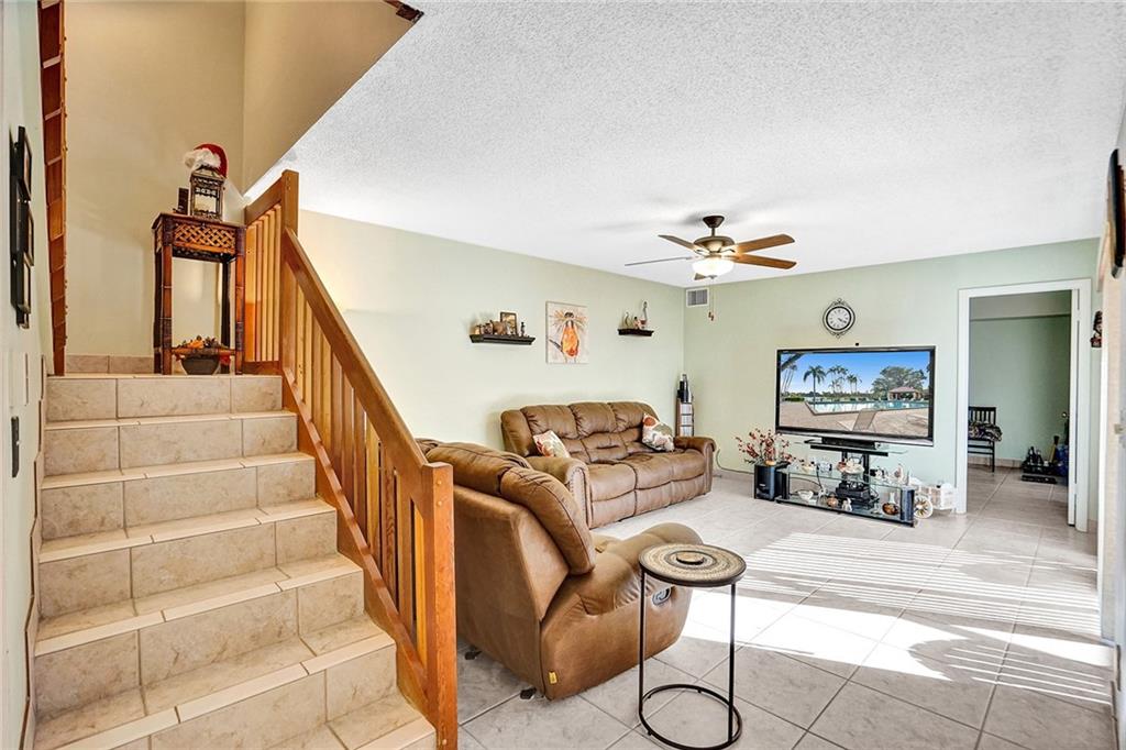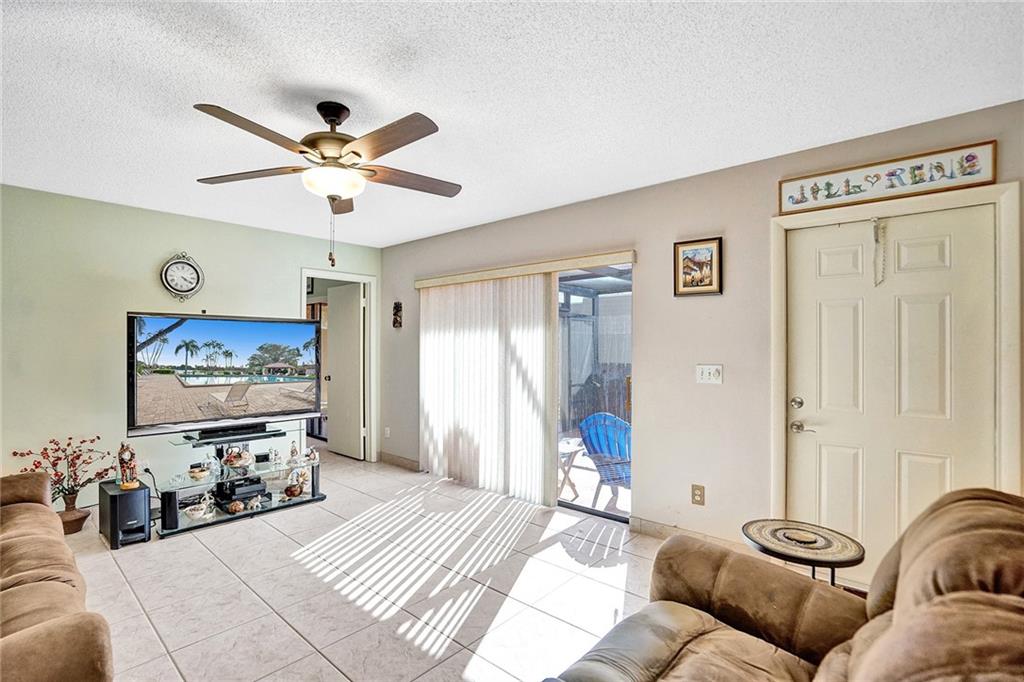 Welcome home to your beautiful, move-in ready 3 bedroom 2.5 bath townhouse! Walk right in to your large, private screened-in patio, great for entertaining! The first floor features an open floor plan kitchen, a large sit in living room, one bedroom, and a half bathroom that was renovated 5 years ago. All three spaces include slider door access to the newly resurfaced patio. The second floor features a beautiful lake view master bedroom, a full bathroom that was updated a year ago including newer washer and dryer, and the 3rd bedroom. All three bedrooms feature carpet. Tile can be found throughout the remainder of the home. A/C is 2 years old. Water Heater is 15 years old.