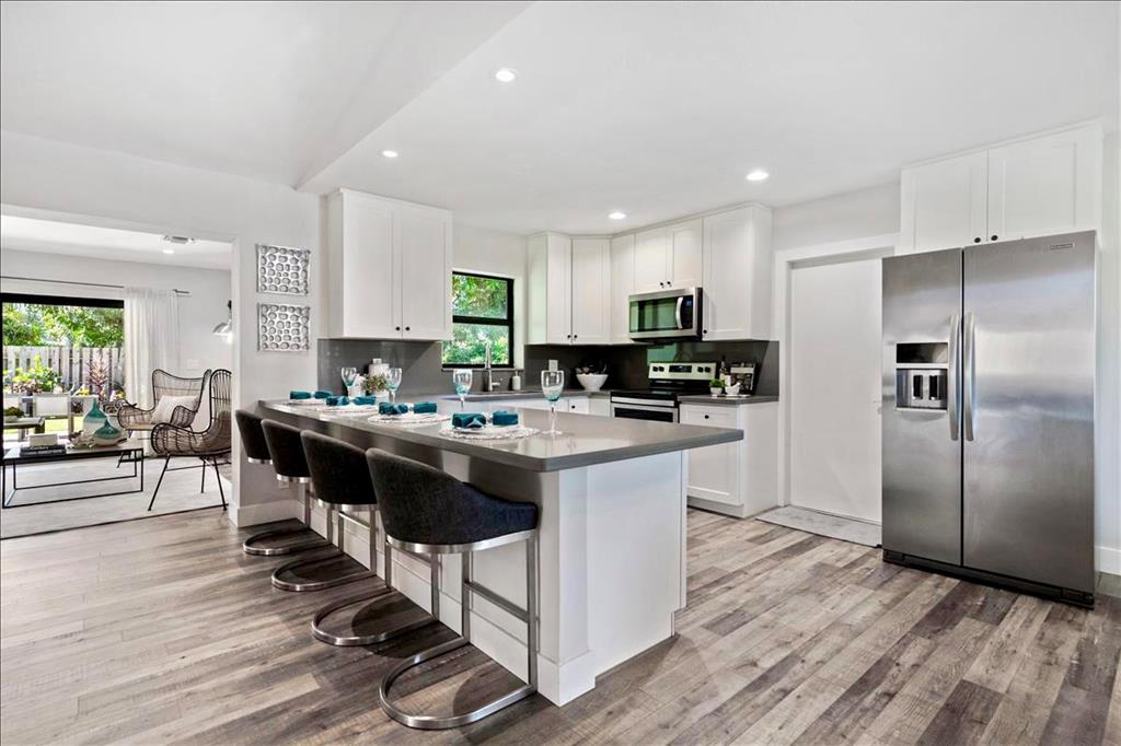 Fantastic 3 bedroom 2 bath gem fully refurbished by experienced local GC. Establish yourself in the next forward-facing Boca community, Villa Rica. This premium like-new home is ready to go and waiting for you. All new designer furnishings available. Bring your suitcase and settle in. Wide open floor plan makes entertaining easy and fun. Split Primary bedroom suite allows for more privacy adjacent to the family room. All new and beautiful floors throughout.The updated kitchen offers Quartz countertops, stainless steel appliances, an enormous island for eating, entertaining, and cooking or prepping. Plenty of counter and cabinet space. New roof 2021, 2 new split A/C systems, upgraded electrical panels, new high rated ''Impact Resistant'' hurricane windows throughout. New LED high h