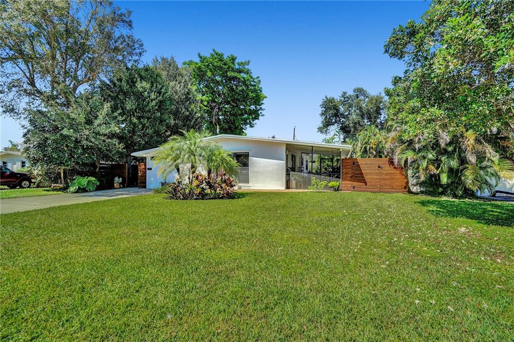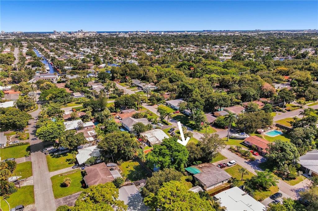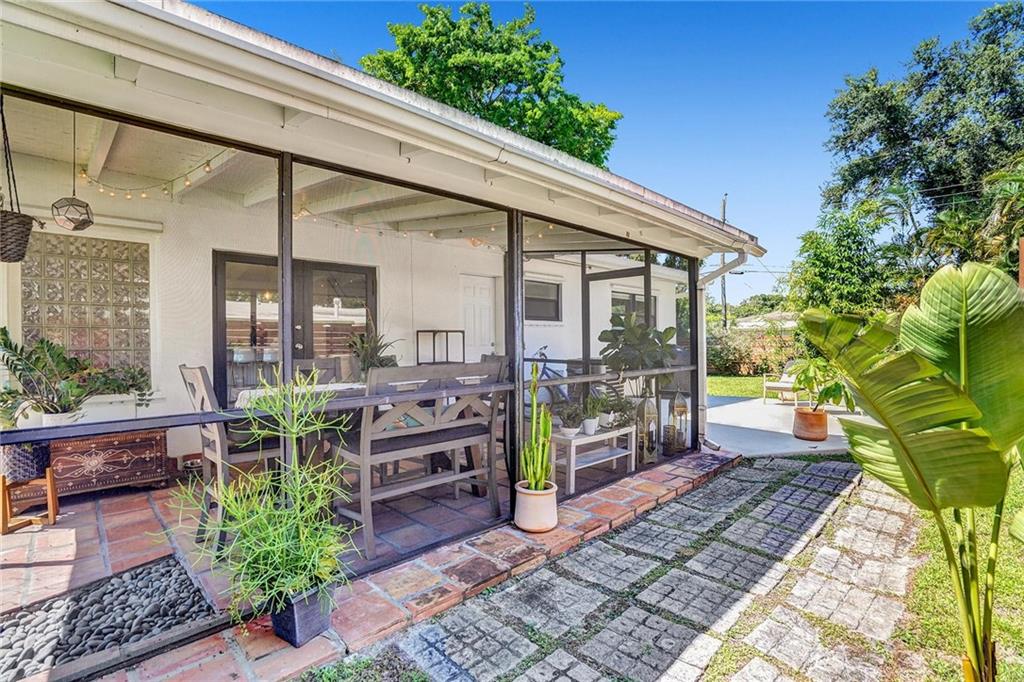 Mid Century Home with Modern Updates throughout. Filled with Natural Light, 2 bedrooms 1 bath plus a flex space for home office or 3rd bedroom w/a large storage area. Custom Blinds, French Doors, Vaulted Ceilings Custom Accent wall in the Living Room. Screened Porch overlooking large yard w/ room for a pool & expansion. Separate Utility/ Laundry Room. New Modern 6ft Privacy Fencing,2018 Electric Panels, 2016 Roof. Open Kitchen w/ Counter Seating & a Pantry. Updated fixtures & Lighting throughout. Nest Thermostat, full alarm system & outdoor security lighting. Shady Banks offers 2 parks with Volleyball, Tennis Courts Walking Paths and a Riverfront Preserve to Paddle Board/Kayak. Surrounded by the New River, with one way in/out this is the hidden gem neighborhood in Ft Lauderdale. A MUST SEE