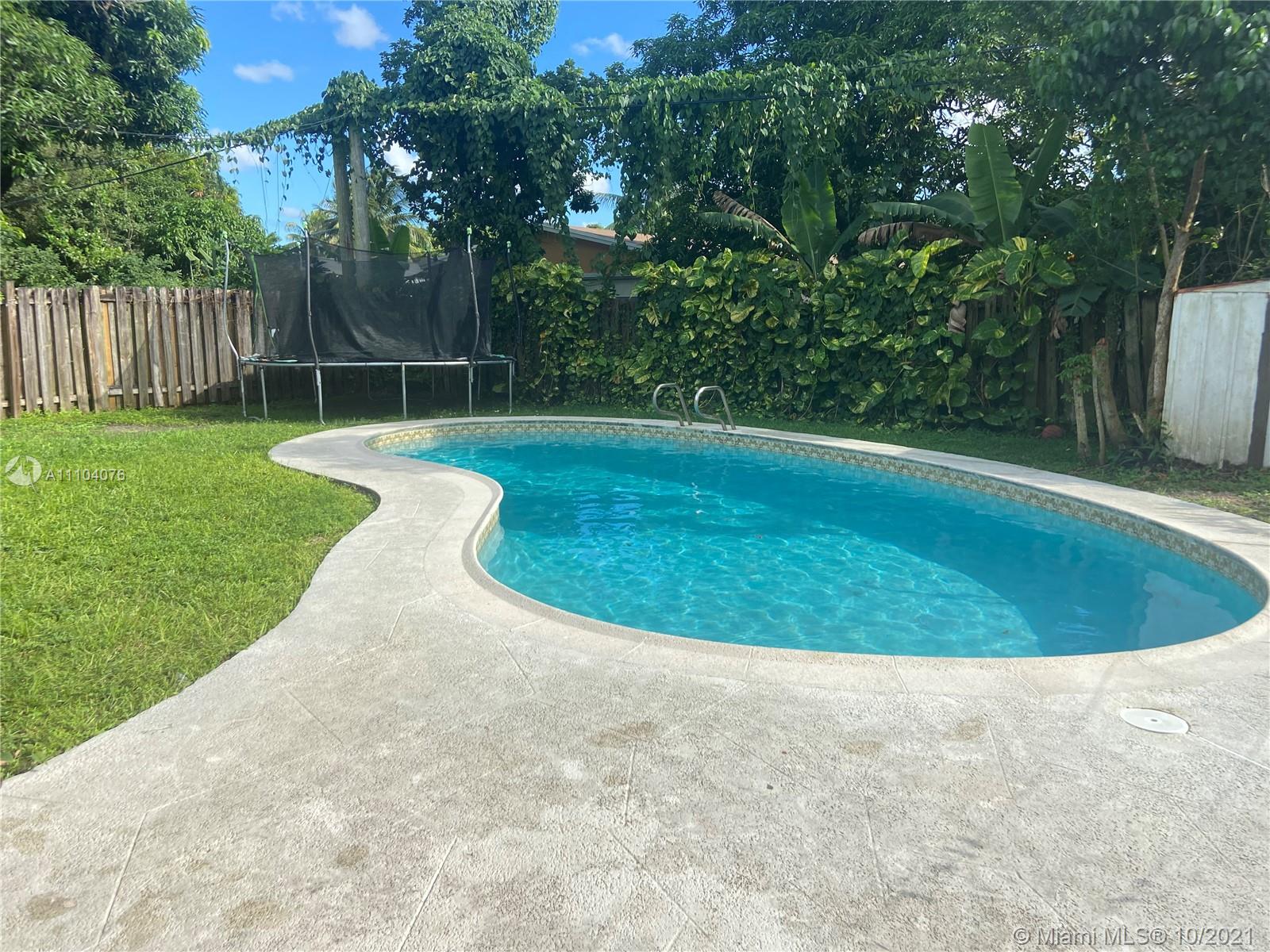MUST SEE! Move-in ready, single-family home with NO HOA in Sunrise. New A/C, New cabinets, new paint, recently remodeled floors, bathroom, and kitchen. Lovely 3 bedroom 1 bathroom. Cool off in this pool home with a large backyard. Kitchen & bathrooms were recently remodeled to include new dark cherry wood cabinets, granite countertops, & Stainless Steel appliances. The home is supplied by natural gas & features a Gas Stove & Gas Water Heater. Utility room w/newer Washer and Dryer hook-up available. Large backyard fenced in w/a private pool. Security system & shed included. Centrally located near hwys, shopping, dining, and more! 15 mins from Sawgrass Mills Mall, and 20 mins from the beach. Underground utilities helps with no blackouts during hurricanes or storms. This property won't last!