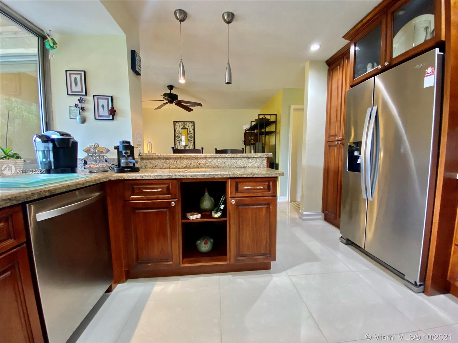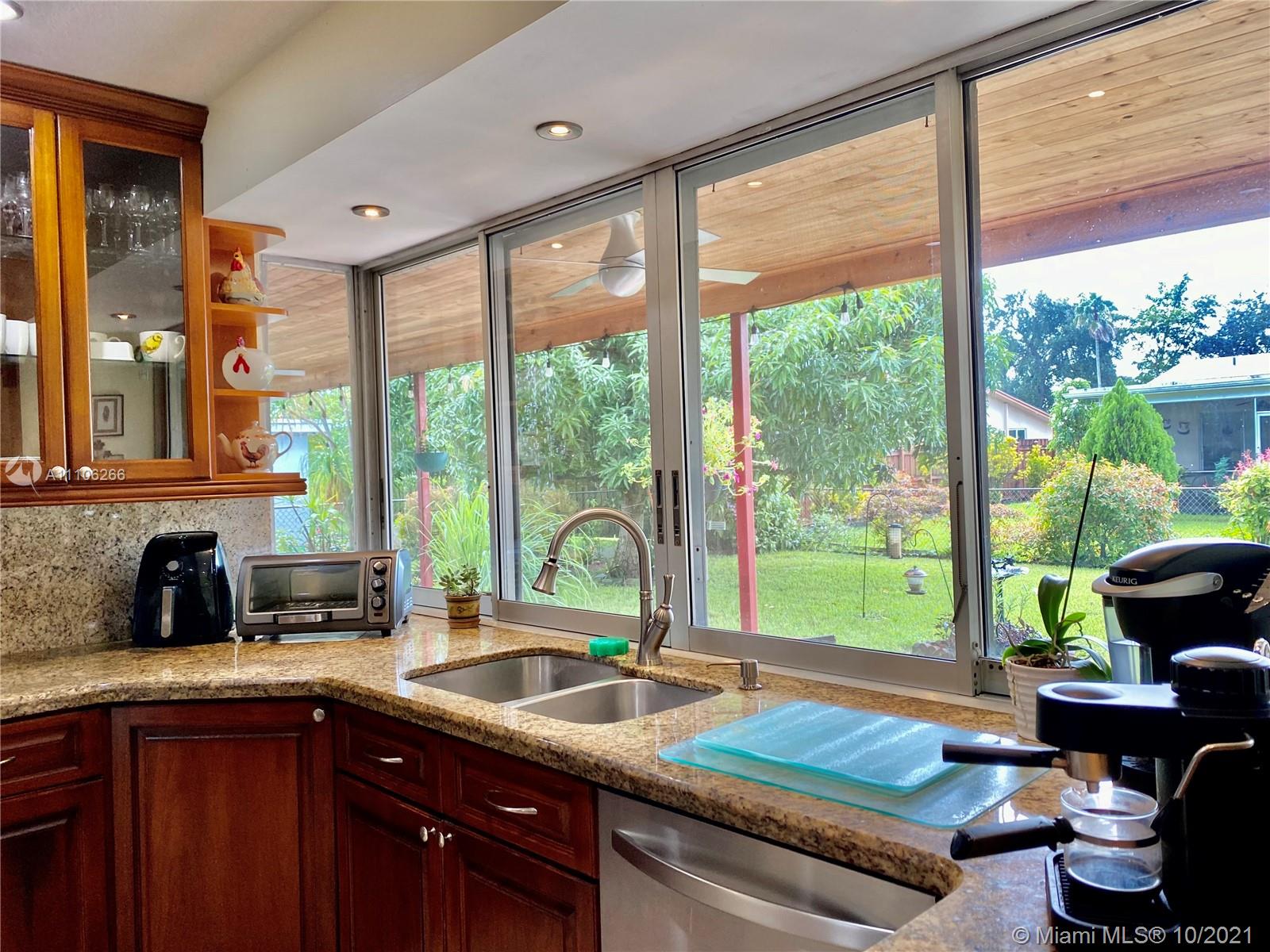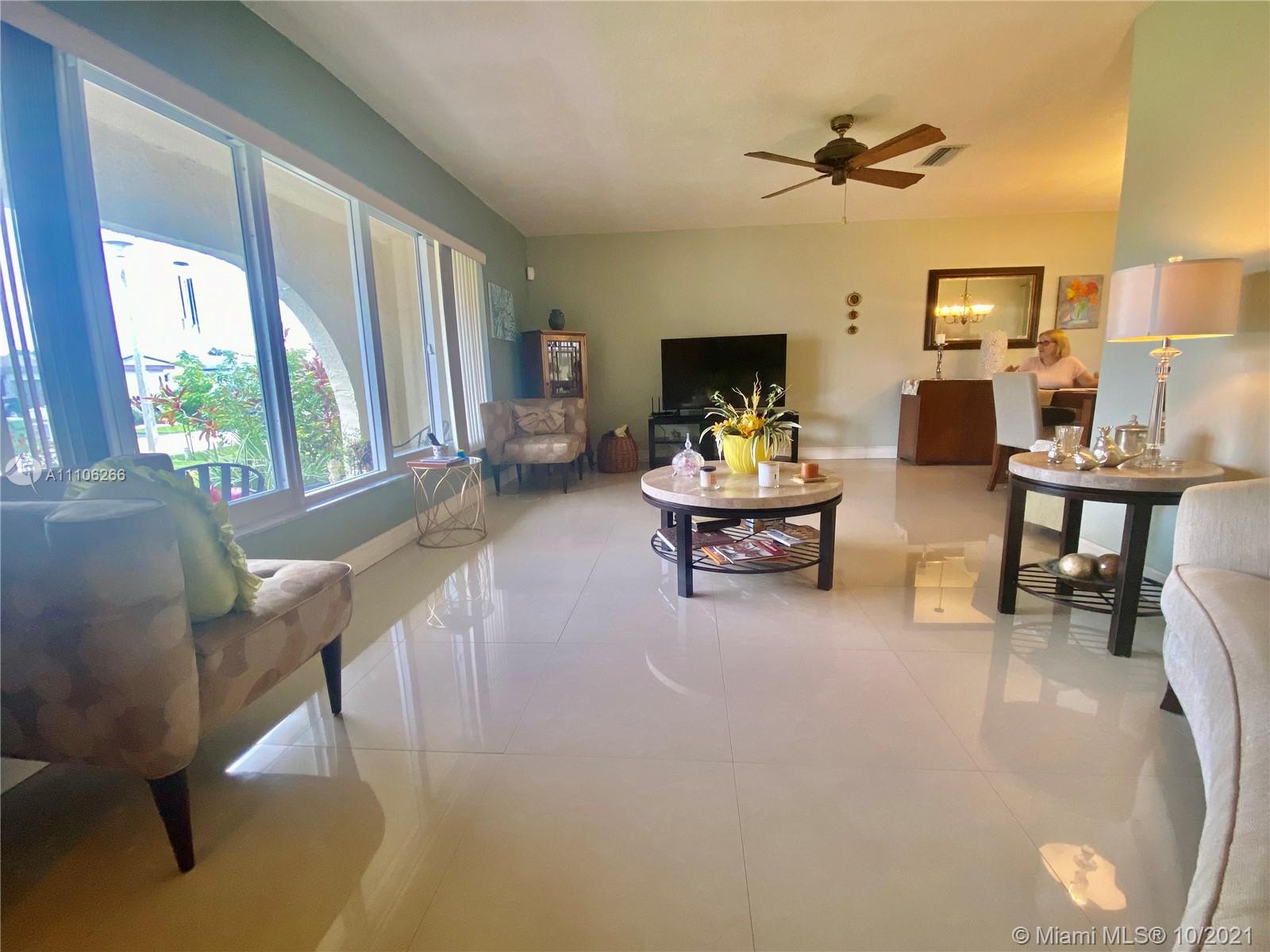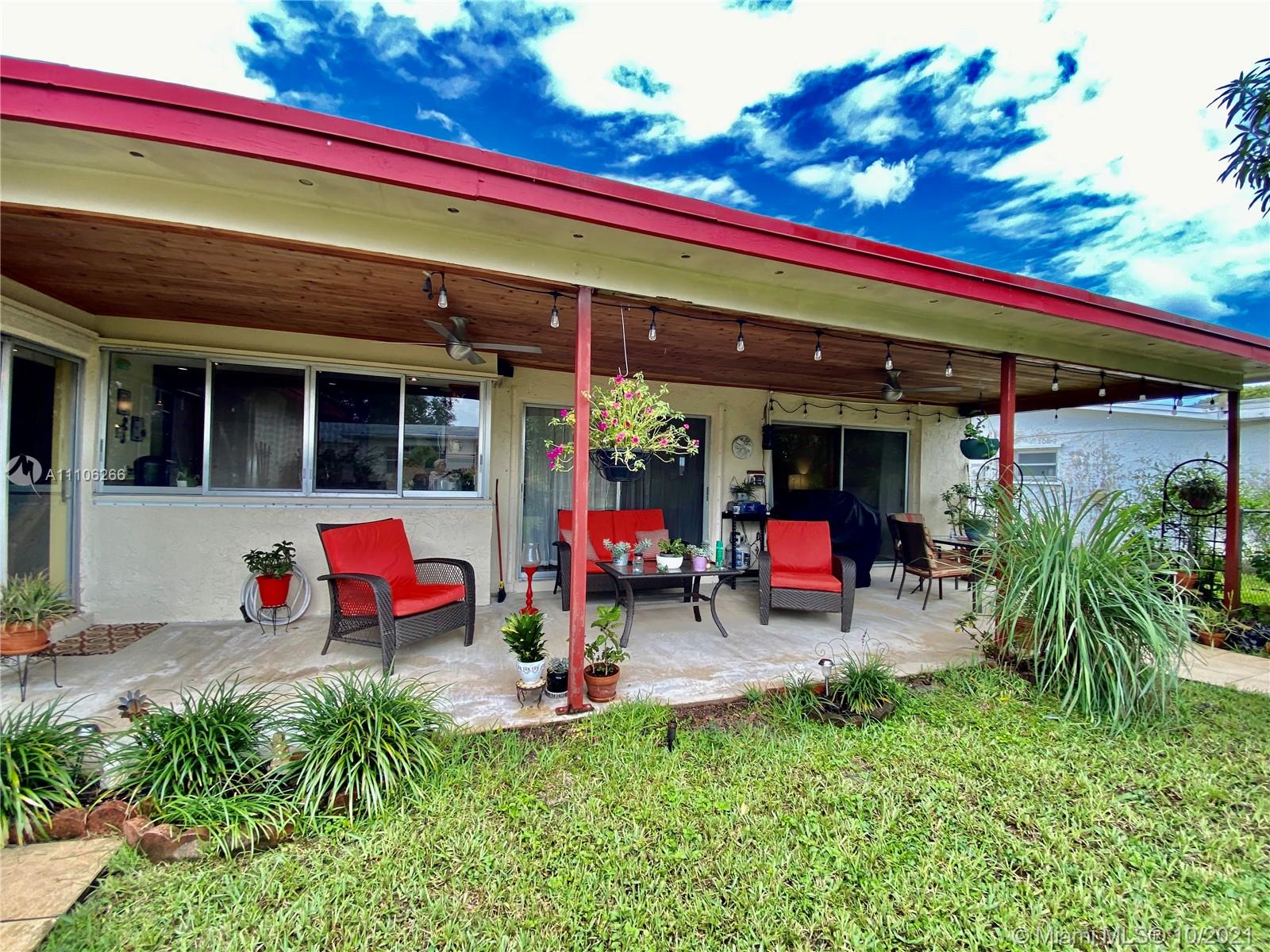 Lovely 4 Bedroom, split plan, 2 Bathroom House, located at a very desirable location in Pembroke Pines. The master bedroom is fully equipped with a walk in Closet and private bathroom, additionally, impact windows and ceramic floor. The home comes with a beautiful fenced patio with fruit trees, mango,pineapple, bananas. Also bromelias, and jasmines flowers for decoration, The Kitchen is finished with wood cabinets, granite and backsplash, and Stain steel appliances, Not to mention plenty of impact windows, and glass doors that allows lots of light , and two car garage, family room. covered patio, < no home owner association dues, new AC and water heater, and you must SEE IT!! The home is elevated and does not required flood insurance.