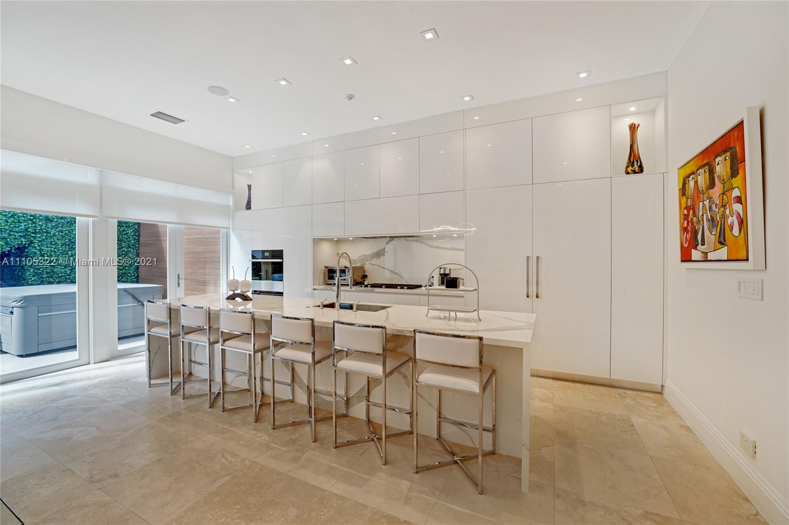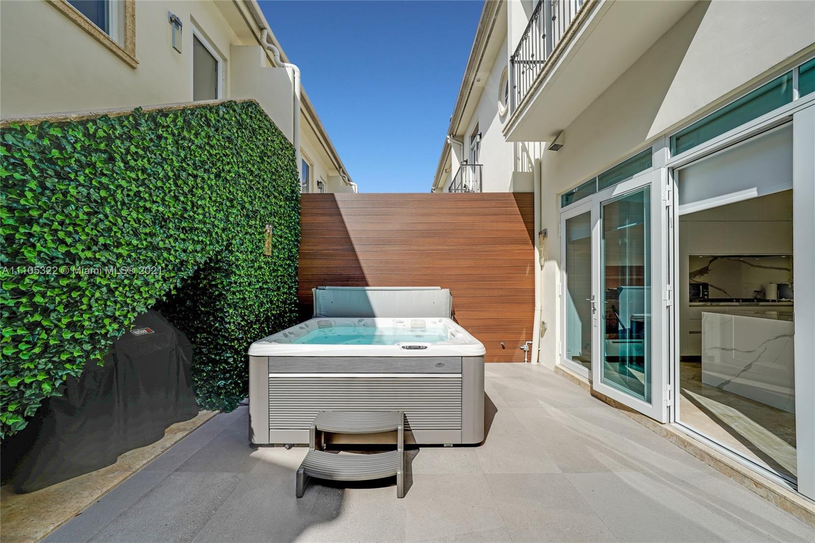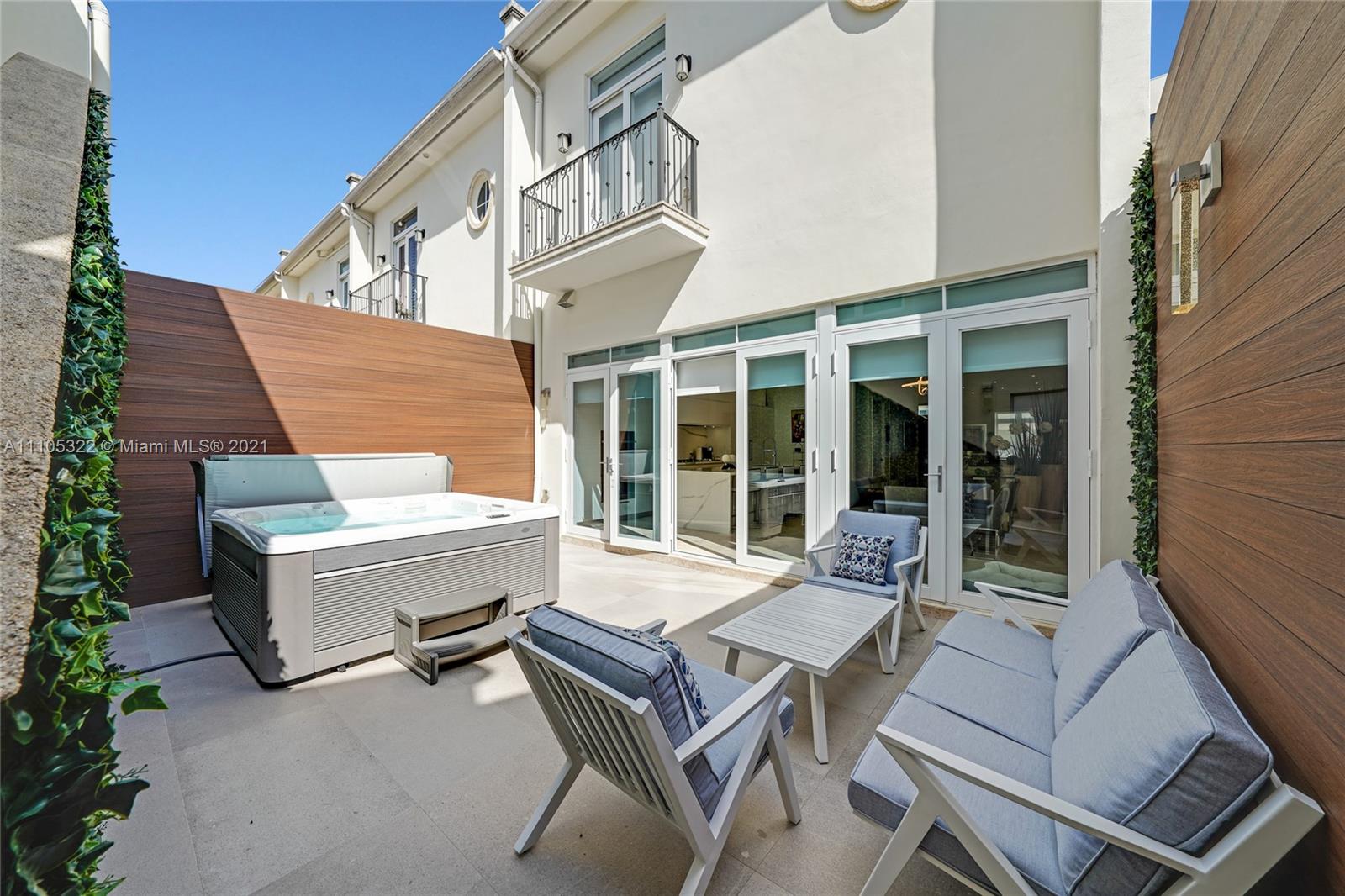 Rarely available and redesigned corner unit 4 bed, 4.5 bath townhome is located just minutes away from Downtown Coral Gables. At the entrance a custom bar with an 80-bottle SubZero wine fridge and freezer with an ice maker awaits. The impressive interior features include a recently refreshed open kitchen concept equipped with Calacatta Ceramic countertops, JennAir appliances, a gas range stove top, and more! Take advantage of the sunny South Florida weather year round in the enclosed courtyard with renovated floors, and a hot tub spa. Entertainers dream enjoy the split media/game room equipped with 3 mounted flat screen tv's, wet bar and a full bathroom. Plenty of storage space in its 2 car garage with added shelving and a full laundry area. Make this unique unit your home!