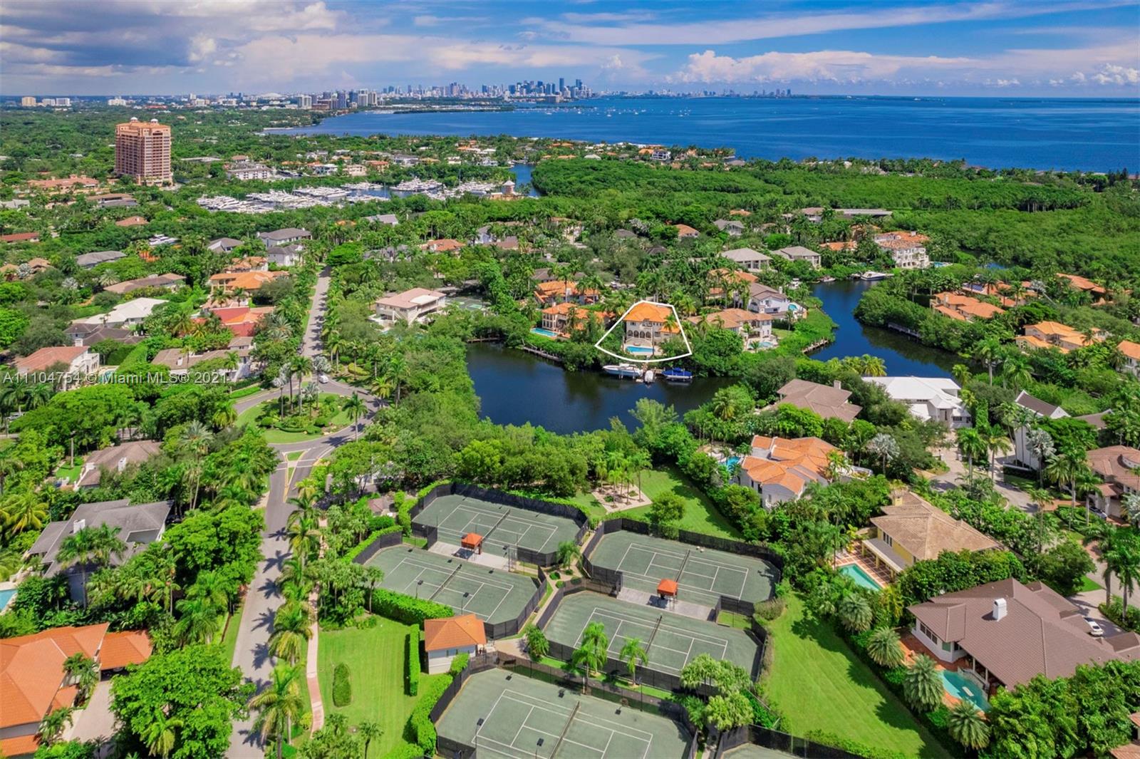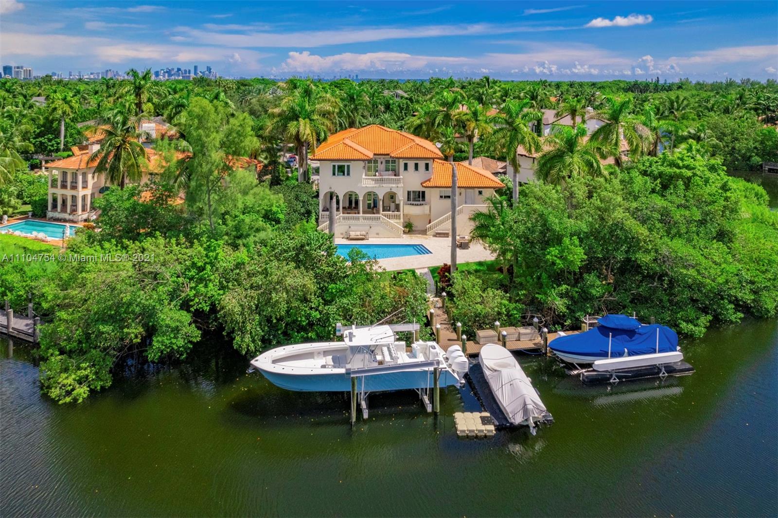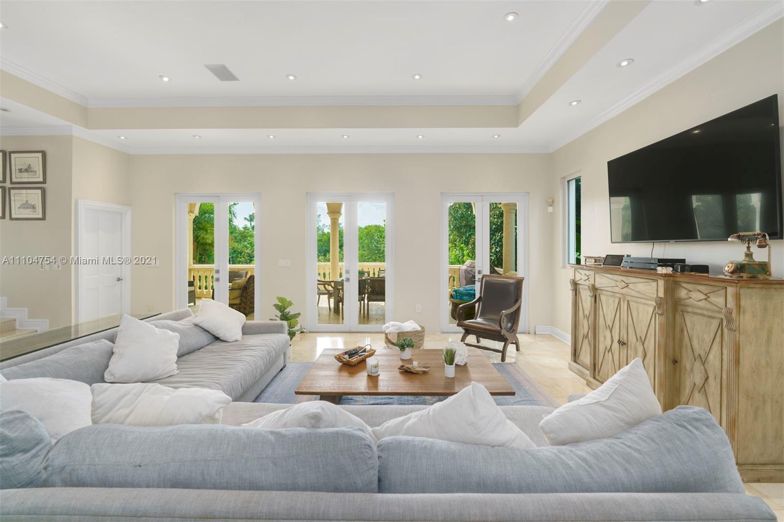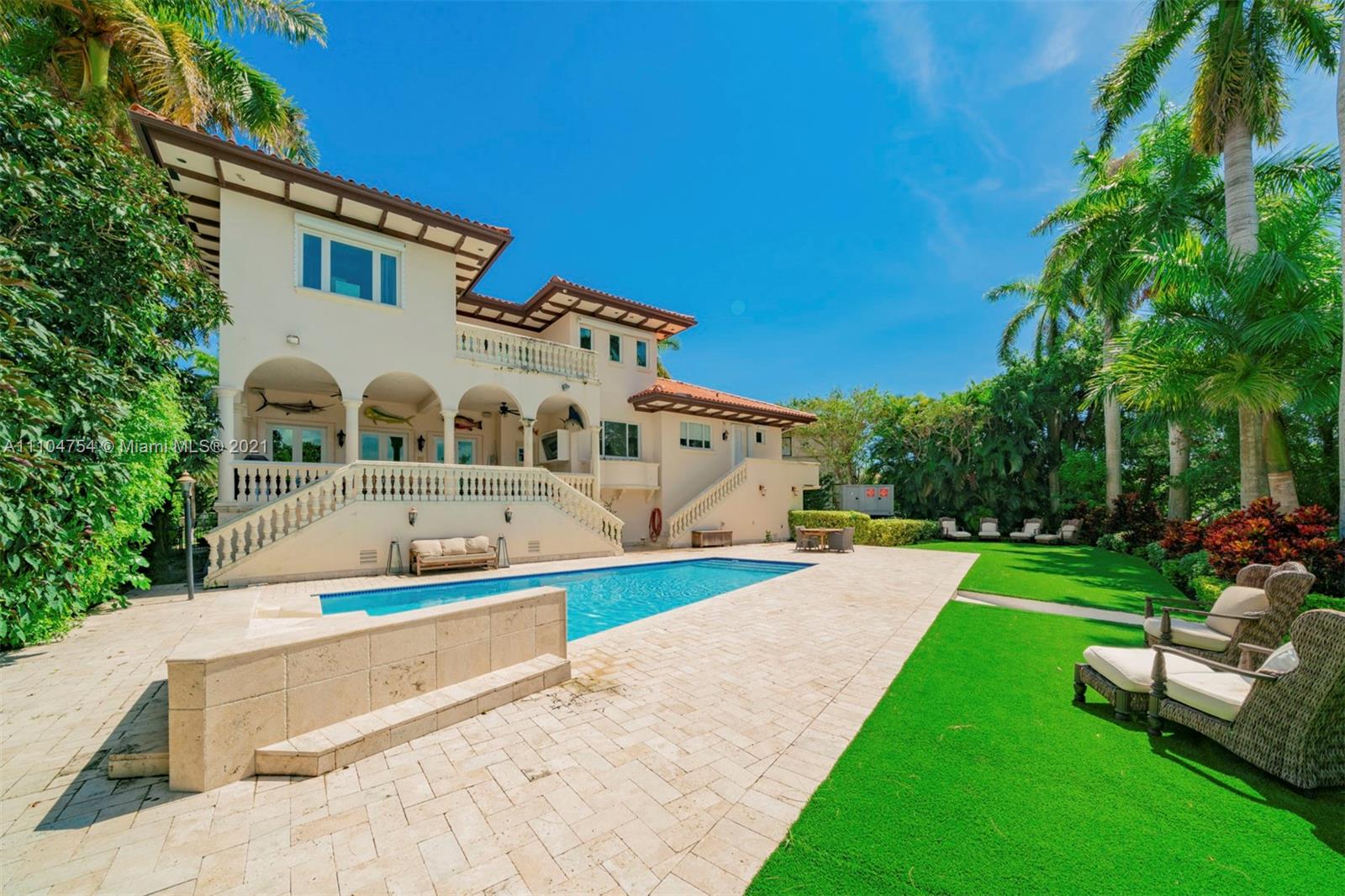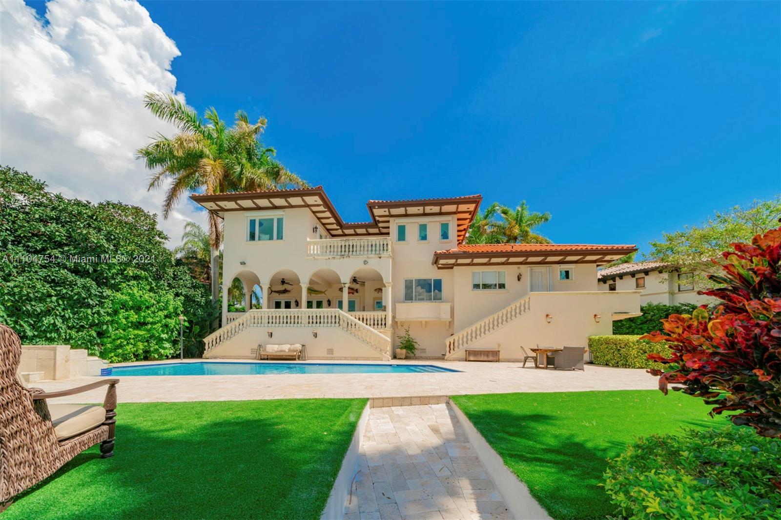 Beautiful 5,818 Sq.Ft waterfront residence with 5 bedrooms and 5 1/2 baths in the coveted Cocoplum gated community. Combining Mediterranean revival style with Spanish and Italian elements, this waterfront home is nestled on a tree-lined cul-de-sac with meticulous landscaping, tall palm trees, a classic entryway and spacious driveway. The elegant floor plan features marble floors, stone pillars and light-filled living spaces ideal for entertaining and comfortable living. The gourmet kitchen has top-of-the-line appliances, center island and a breakfast area. The grounds behind the house feature a covered terrace, sparkling pool and a private new 60 Ft. dock. A media room, 2-car garage, generator, laundry and staff room complete this tranquil retreat, close to schools, restaurants and shops.