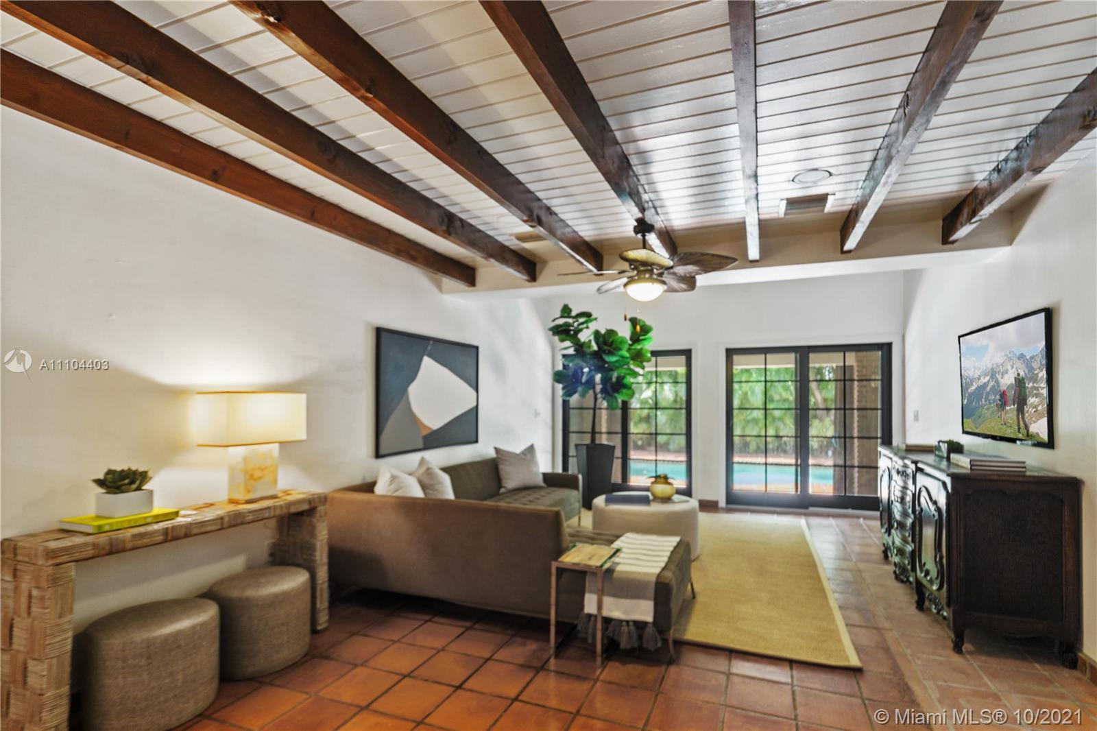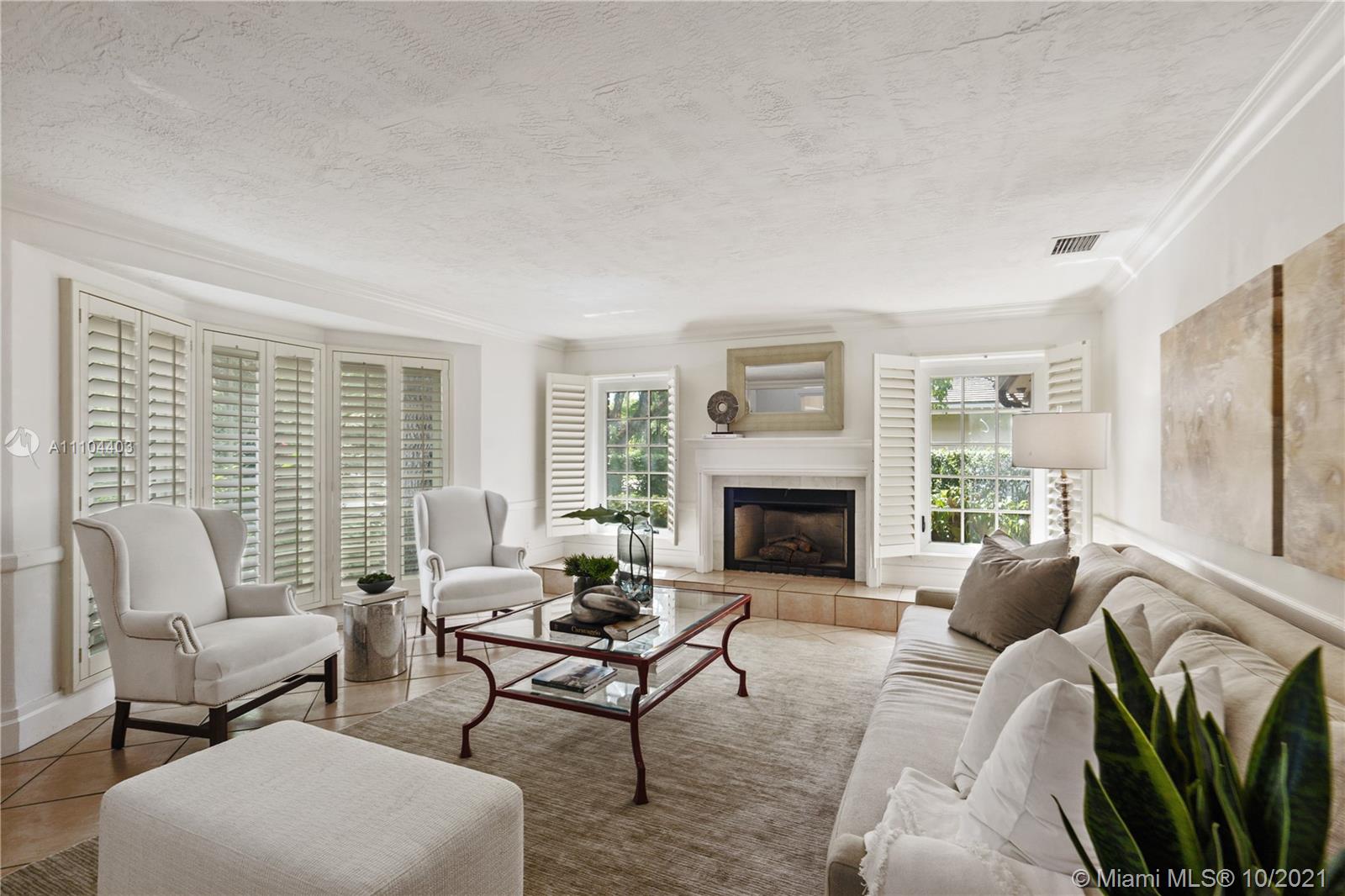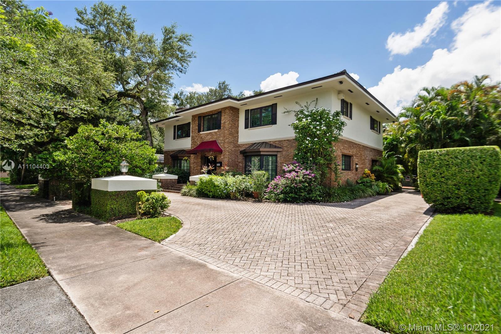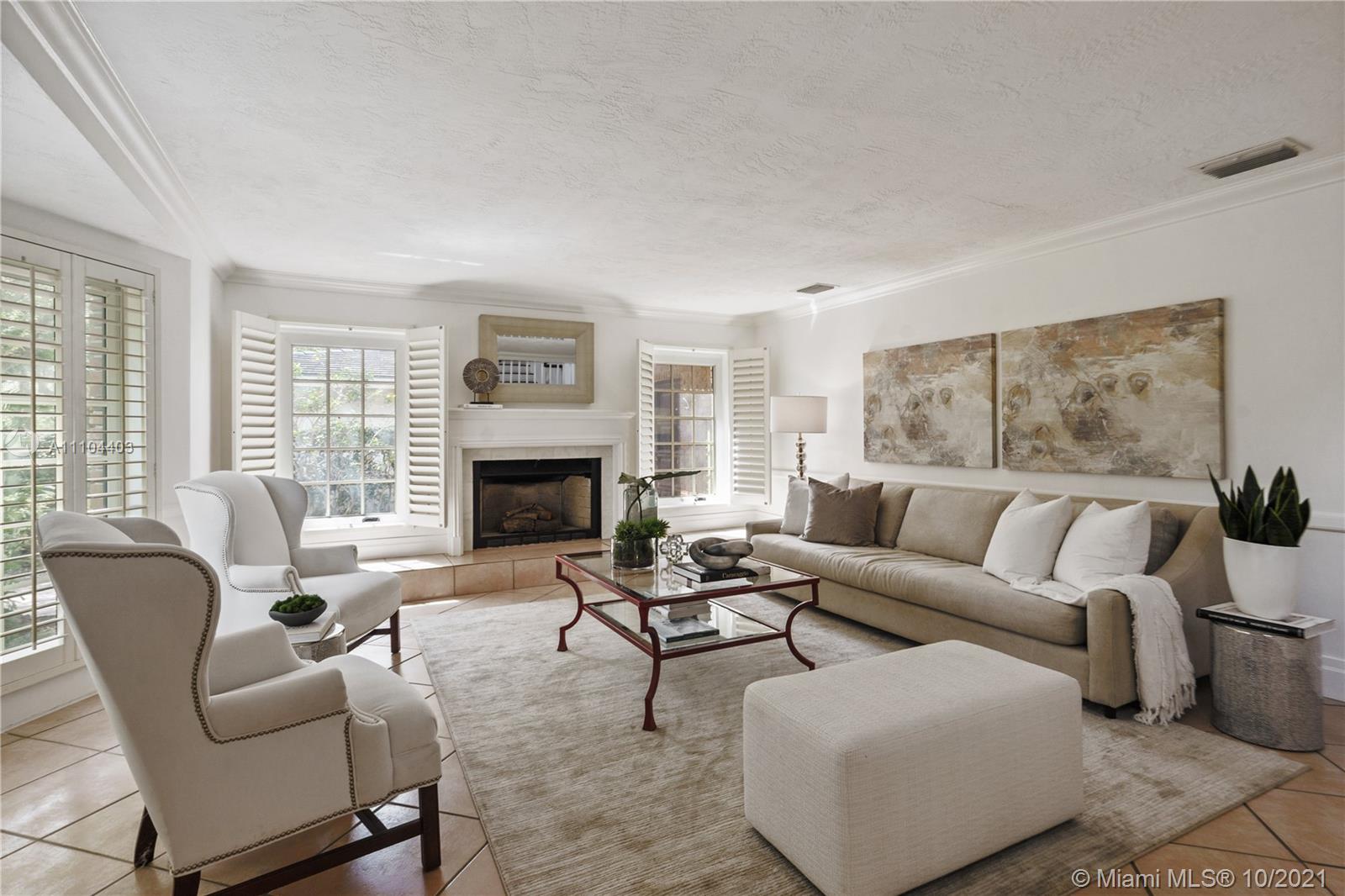 This beautiful colonial brick home offers 4 bedrooms and 4.5 bathrooms. The 4,008 SF home offers a spacious living room with a cozy fire place, a family room overlooking the pool, a bright Florida room with soaring beamed ceilings, a formal dining room and a large kitchen with beamed ceilings and French doors opening up to the garden. Additional features are updated bathrooms, impacts windows, plantation shutters and a designated laundry room. This home sits on a 11,000 SF lot, offering a covered terrace and a heated pool with Jacuzzi. Located on prestigious Alhambra Circle, close to the Biltmore Hotel Golf Courses and Miami’s Top Rated Private Schools