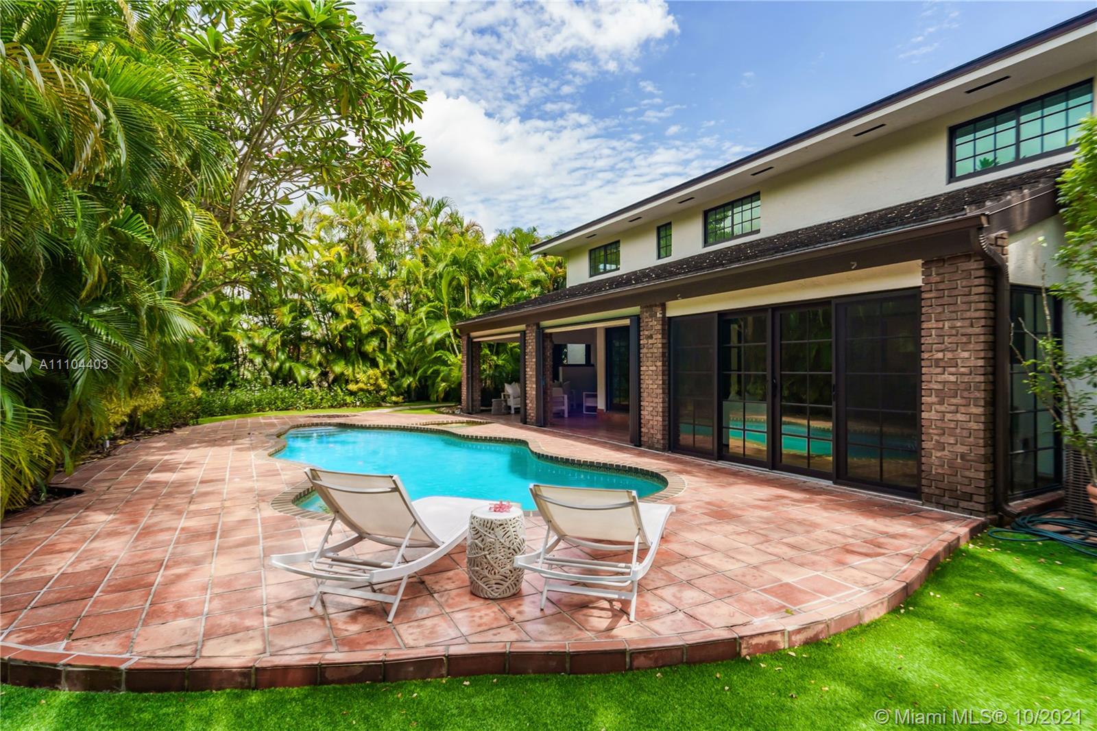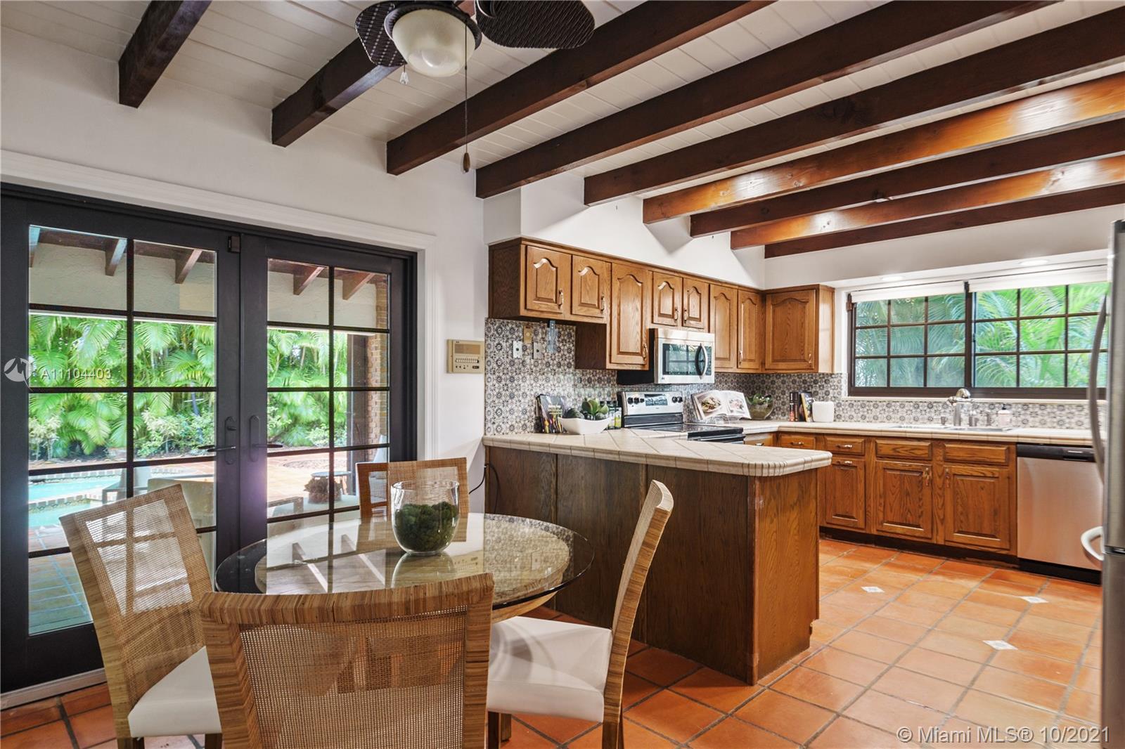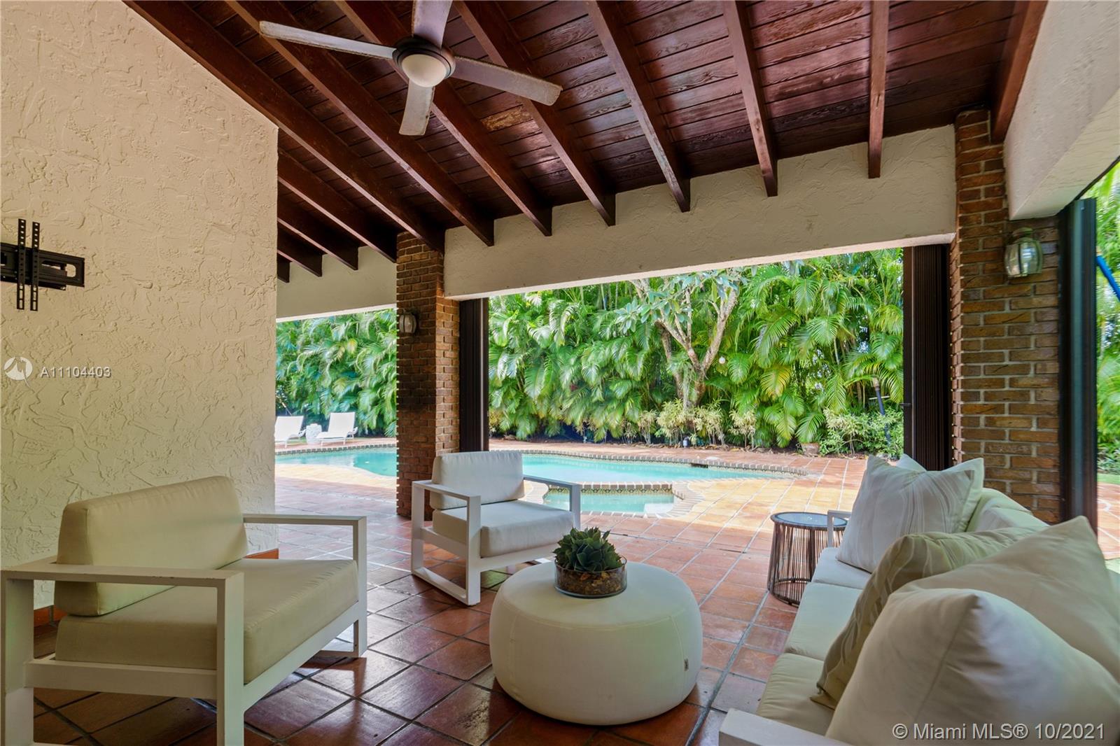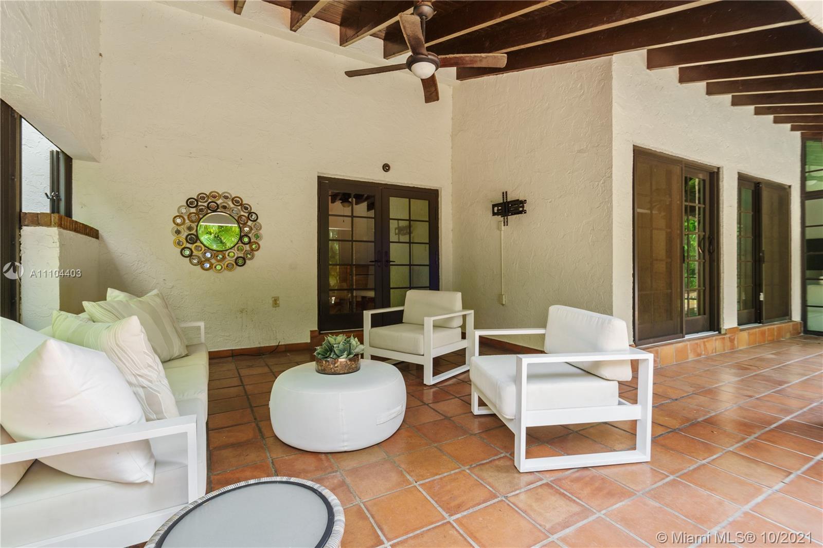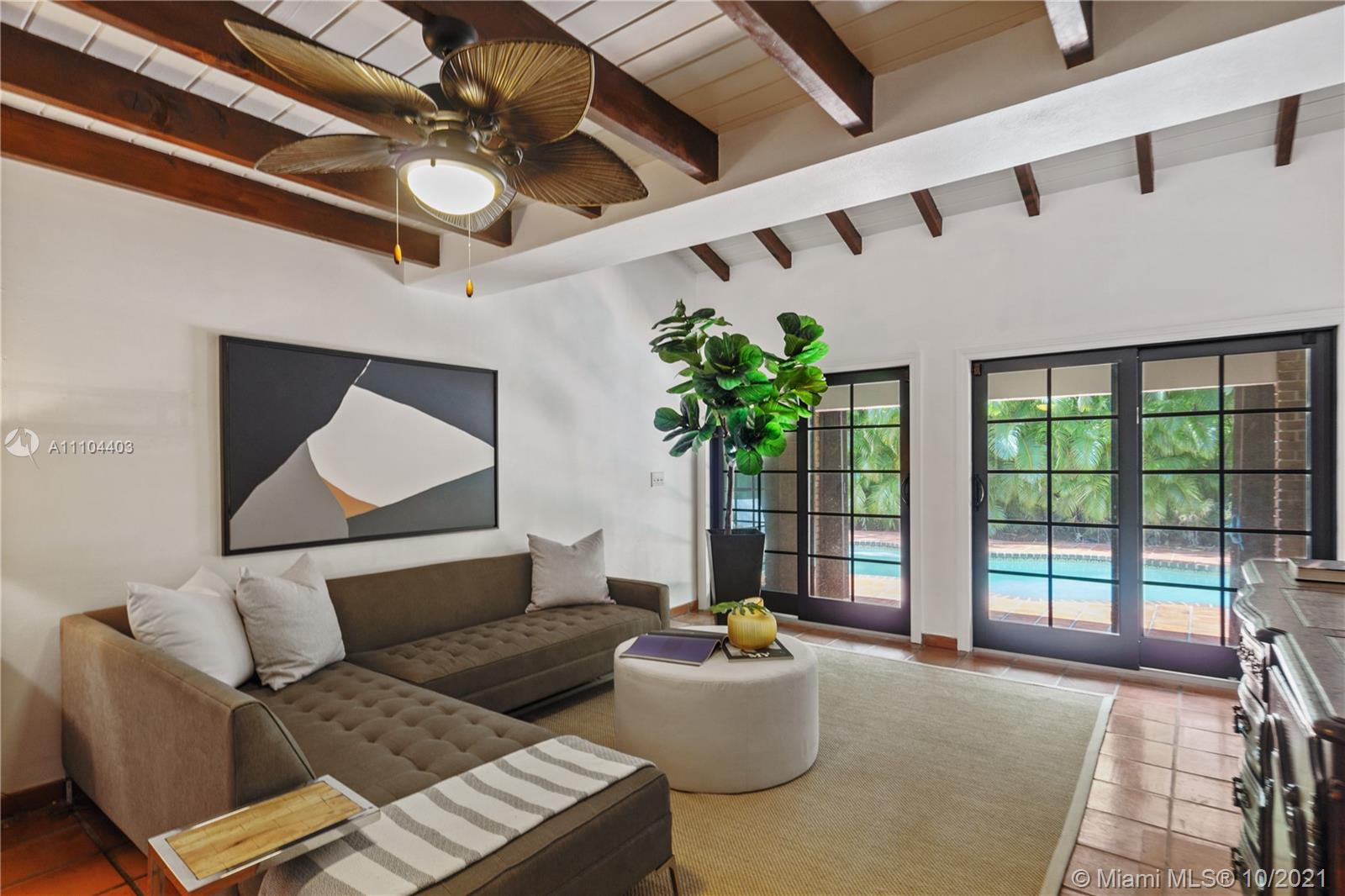 This beautiful colonial brick home offers 4 bedrooms and 4.5 bathrooms. The 4,008 SF home offers a spacious living room with a cozy fire place, a family room overlooking the pool, a bright Florida room with soaring beamed ceilings, a formal dining room and a large kitchen with beamed ceilings and French doors opening up to the garden. Additional features are updated bathrooms, impacts windows, plantation shutters and a designated laundry room. This home sits on a 11,000 SF lot, offering a covered terrace and a heated pool with Jacuzzi. Located on prestigious Alhambra Circle, close to the Biltmore Hotel Golf Courses and Miami’s Top Rated Private Schools