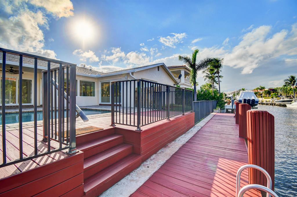 Lovely waterfront pool with dock in east Boca Raton with ocean access and no fixed bridges. This is a 4 bedroom + den and 2.5 bathroom house is bright and airy with an open floor plan, coffered ceilings in the living area. Upgrades include hurricane impact windows , SS appliances , Granite, newer water heater, carpet in 2 bedrooms . Garage door system replaced , exterior painted in 2020 . Bathrooms are original. Caribbean keys is a non gated community with A rated schools .