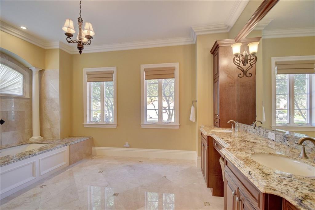 No expense spared! Beautifully landscaped custom-built 2007.Six bedrooms, circular brick drive,3 car garage, secluded pool. Soaring ceilings, fireplace, butler's pantry, island kitchen with top quality appliances & granite counters overlooking family room. Master down w/dual baths-cabana bath to pool. Curved marble stairway to 3 bedrooms, custom theater, fabulous mahogany panel office. All bedrooms w/ensuite baths. Andersen impact windows/french doors, 25 KW generator. Elevator ready. All in a gated community. Walk to St. Andrews,Omni & SRHS. Country Club membership OPTIONAL, not required