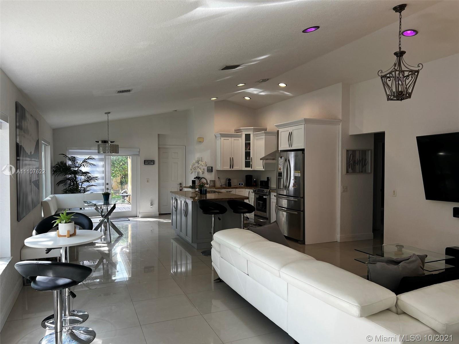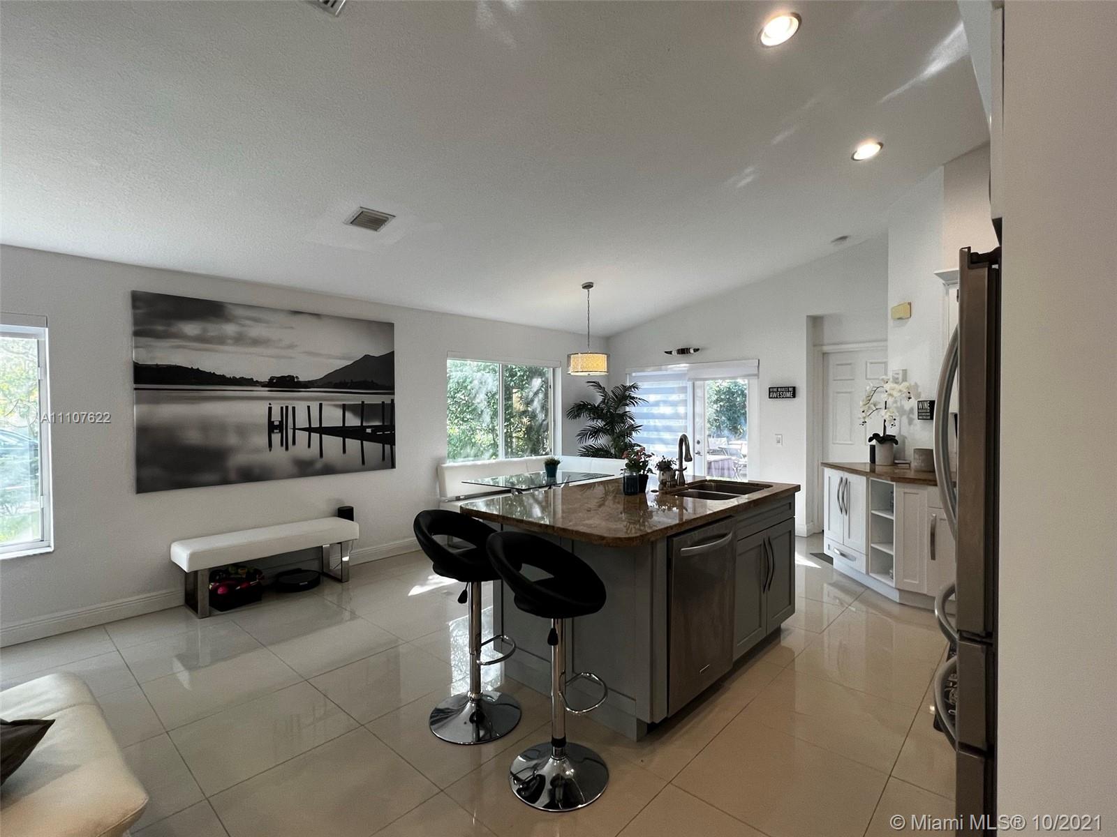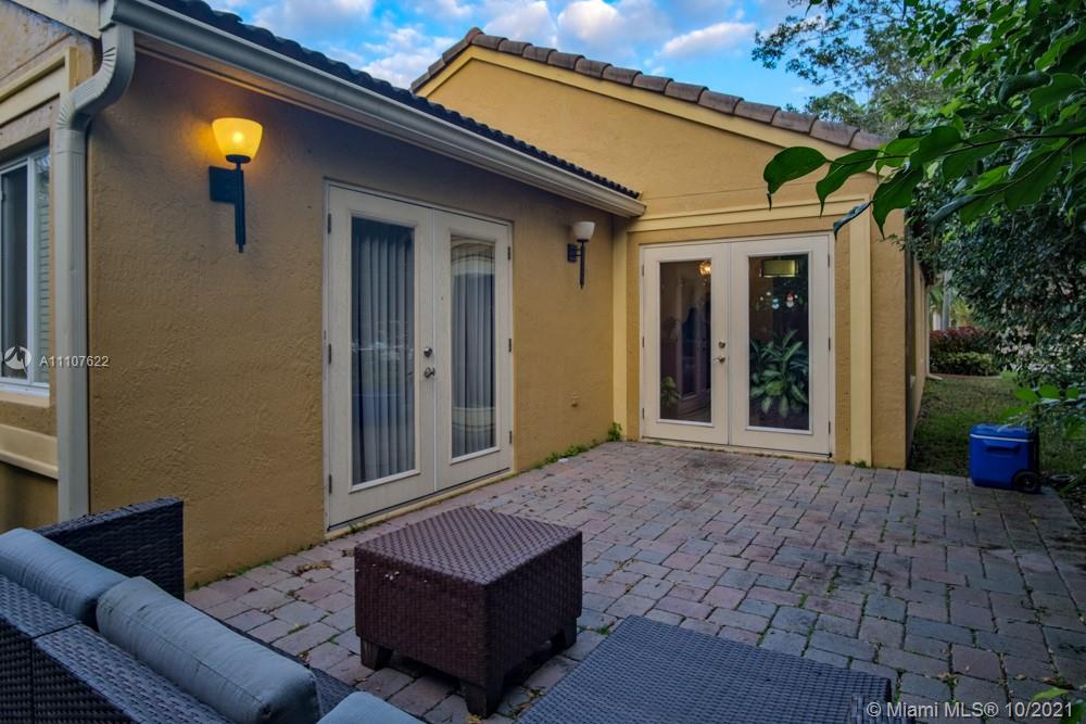 Upgraded 3 bedroom, 2 bath corner unit home in Savanna, Weston. Open kitchen with a large sitting island, stainless steel appliances, wood cabinets, and granite countertops. Large porcelain tiles in the living room and bathroom, wood laminate in bedrooms. Master and guest bath are upgraded, French doors open to a private patio. Weston A+ schools, Manatee Bay, Falcon Cove, and Cypress Bay.