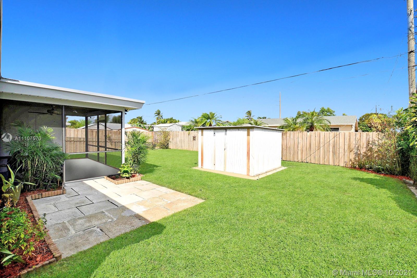 LOVELY 3 BED 2 BATH SINGLE FAMILY HOME HAS WELCOMING CURB APPEAL AND FRESH NEW PAINT. AN AWESOME OVERSIZED CIRCULAR DRIVEWAY EASILY ACCOMMODATES MANY CARS PLUS CARPORT. ENJOY LIGHT AND BRIGHT LIVING SPACES INSIDE, NEUTRAL TILE THROUGHOUT, AND A SPLIT FLOOR PLAN FOR PRIVACY. THE KITCHEN OFFERS REAL WOOD CABINETS AND STAINLESS STEEL APPLIANCES. A COMFORTABLE PRIMARY SUITE HAS LOVELY PLANK STYLE FLOORING AND EASILY ACCOMMODATES A KING SIZE BED. ENSUITE BATH IS UPDATED WITH NEUTRAL FIXTURES. SCREENED-IN PATIO IS PERFECT FOR OUTDOOR DINING. SPACIOUS FENCED YARD HAS ROOM FOR A POOL. EXTRAS INCLUDE A DEDICATED LAUNDRY ROOM AND A SHED FOR EXTRA STORAGE. CONVENIENT CENTRAL HOLLYWOOD LOCATION IS CLOSE TO RESTAURANTS, SHOPS, THE HARD ROCK CASINO, AND IS JUST A SHORT DRIVE TO THE BEACH. NO HOA