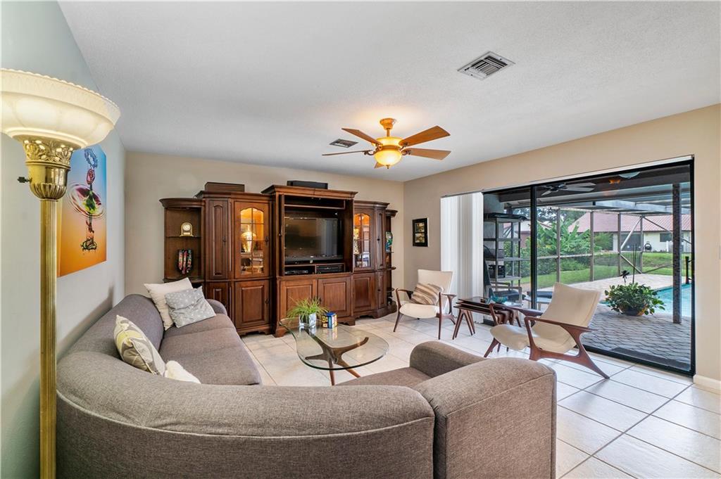 LOCATION, LOCATION, LOCATION! WOW A GEM! 3-2 pool home on water! This immaculate, light and bright, exquisite, updated home has real hard wood floors in bedrooms, hurricane impact windows, accordions on patio sliders, den can be converted into 4th bedroom, Mahogany etched den doors, remodeled over-sized kitchen with granite counters and LED high hats, abundance of kitchen cabinets with pull outs, freshly painted interior 2021, painted exterior 2020, custom closets in all bedrooms, total master bedroom and bath upgraded, heated pool overlooking waterway, extended paver patio, sprinkler system, 2 car garage, side walks, low HOA! Too many upgrades to mention!!! This home will not last, bring your fussiest buyers, they will not be disappointed! Move in condition!