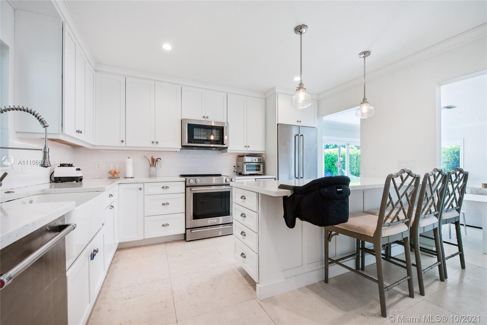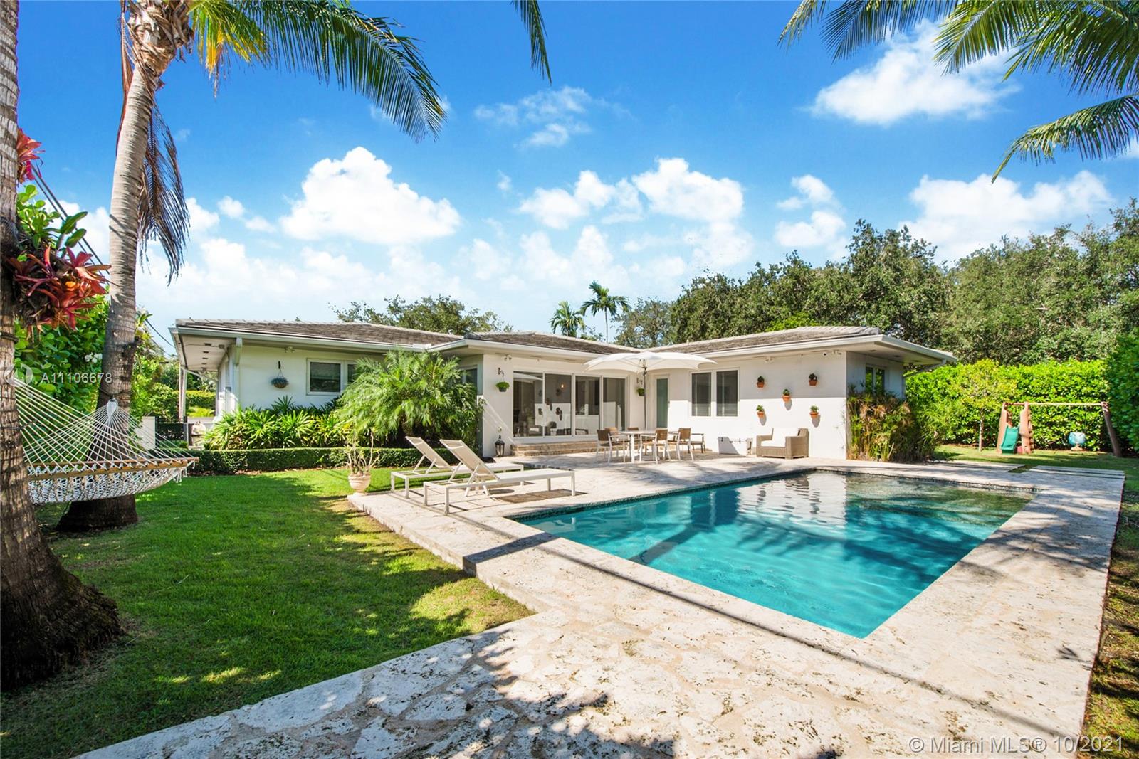 Recently renovated in good taste one story home on a 10,948 sq ft beautifully landscaped corner lot, Not in flood zone in a great Coral Gables location. The home features flat tile roof, impact windows/doors, wood/quartz eat in kitchen with stainless steel appliances, bathrooms with marble/designer tiles, an air conditioned bonus room in the one car garage, private patio for entertainment with mosquito misting system. The family great room is bright with views of the pool area and of the living room area. Aprox 2,397 sq ft of A/C living and entertainment area for EZ living. ONLY cash offers or prequalified buyer with no financing contingency. Seller request a lease back to January 7th 2022. Brokers must come with their buyer.