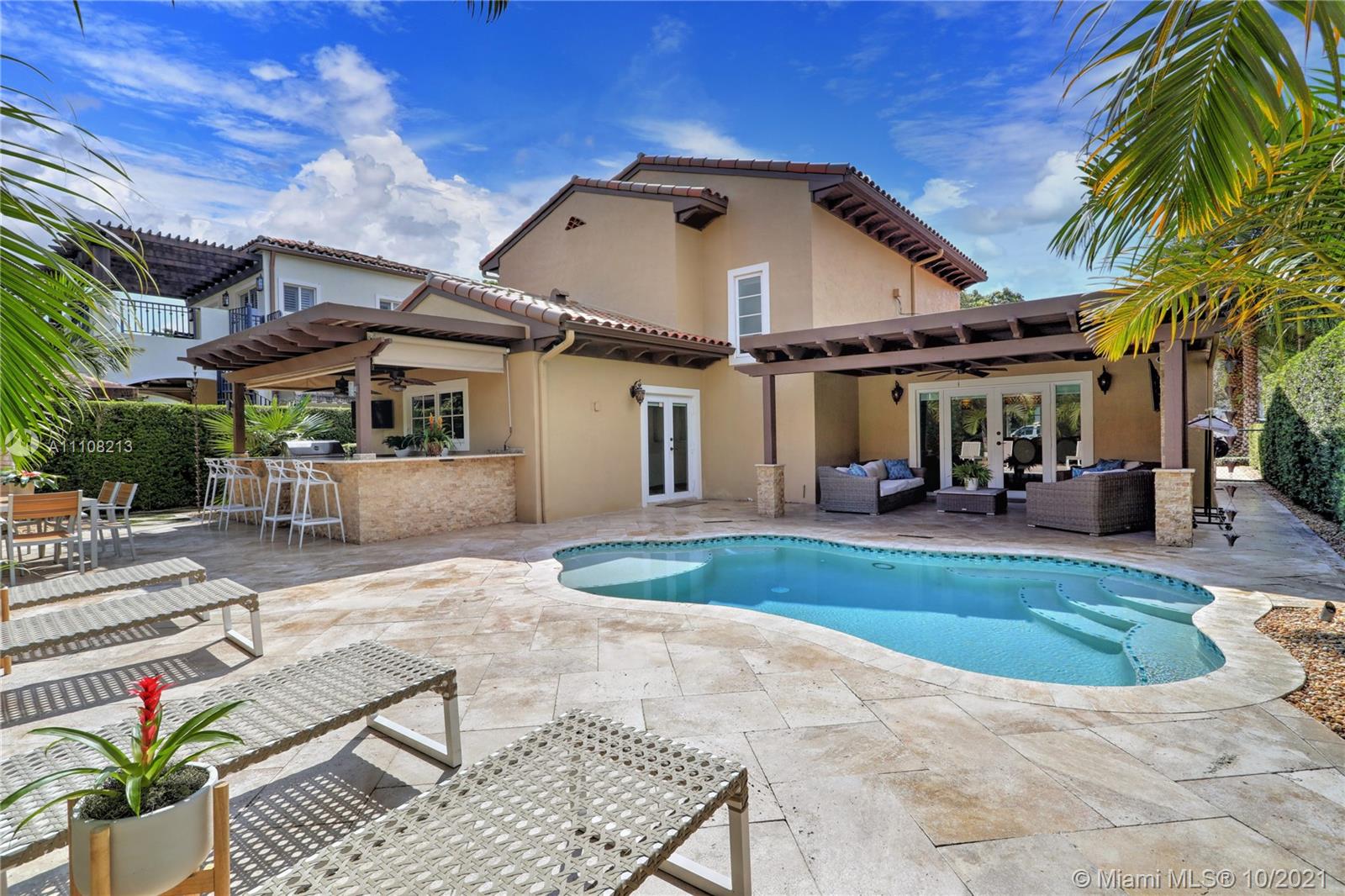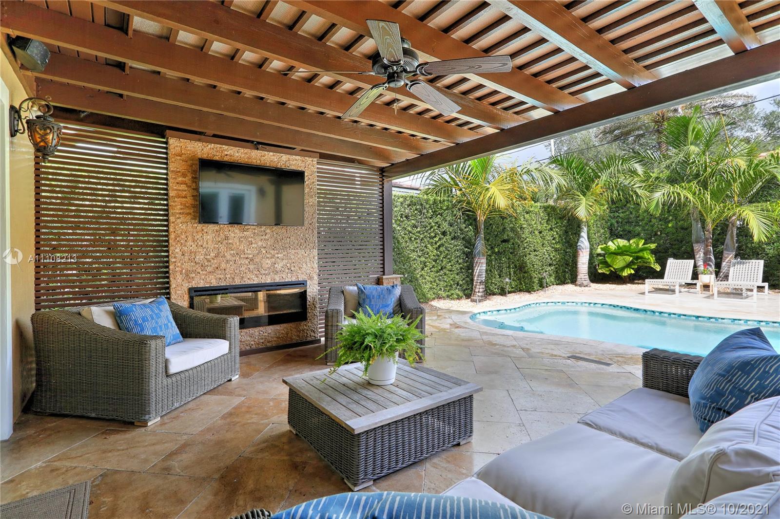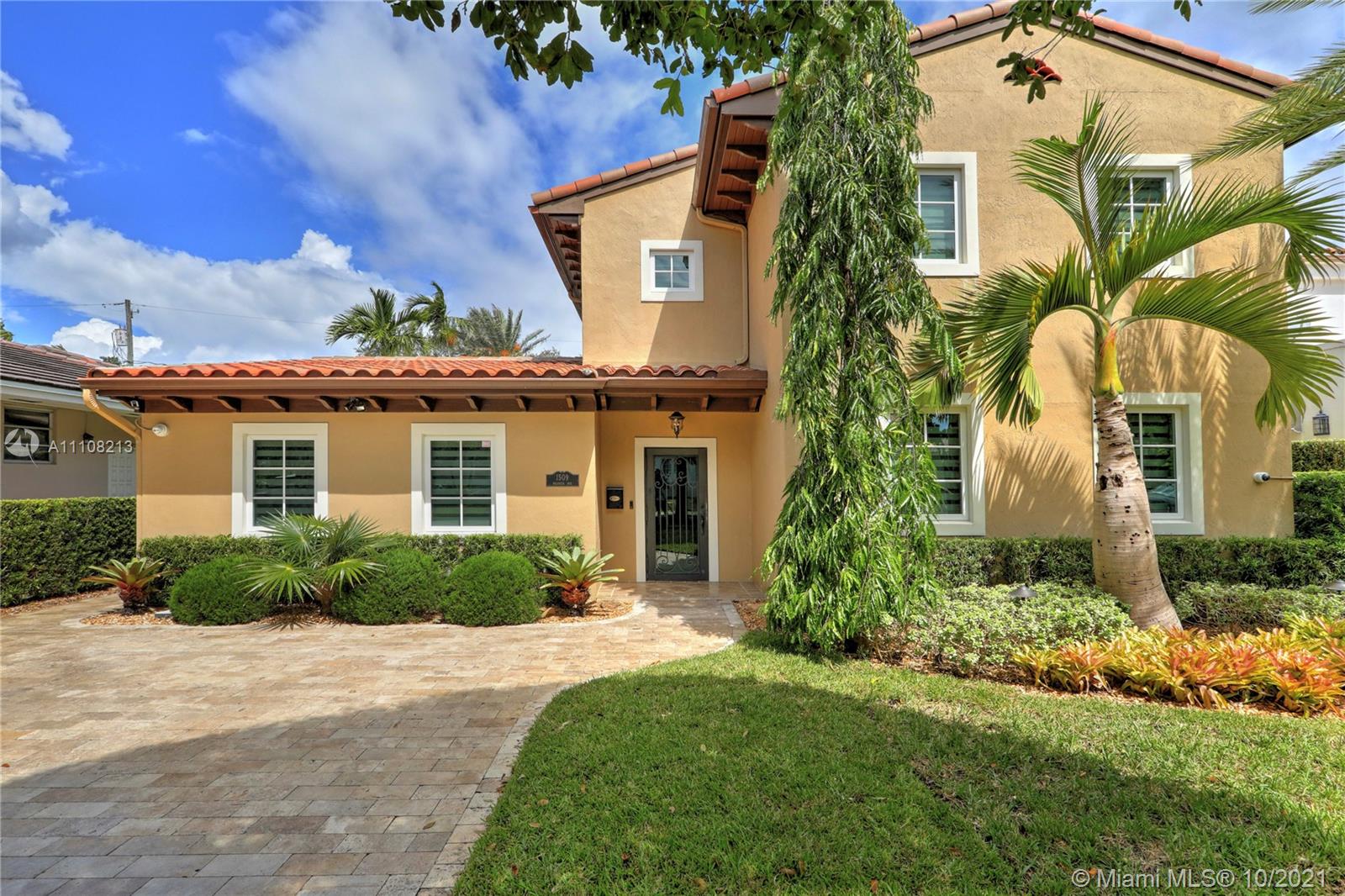 Elegant, Spanish-style home perfect for entertaining & comfortable living. Extensively renovated in 2009 and every detail was meticulously selected. Highlights include high ceilings & light-filled living spaces, formal living & dining rooms, gourmet kitchen w/ island connected to the beautiful family room with glass doors opening to the pool area, 2 BD with a Jack & Jill BR downstairs, 2-en suite BD upstairs. The pool patio is surrounded by privacy hedges offers lovely summer kitchen & covered pergola with fireplace. Additional features marble floors throughout staircase & downstairs, wood floors upstairs, W/D upstairs, new plumbing, electric & septic tank, hurricane impact doors & windows. Ideally located near parks, UM, The Biltmore Hotel and the Riviera Golf Course. A true gem!