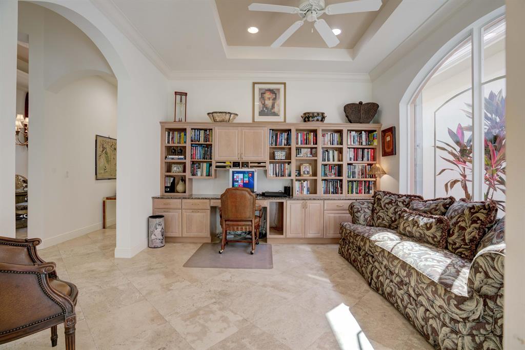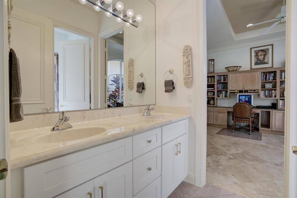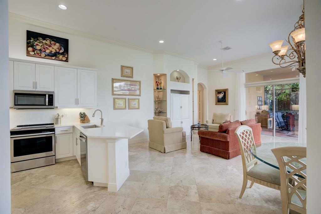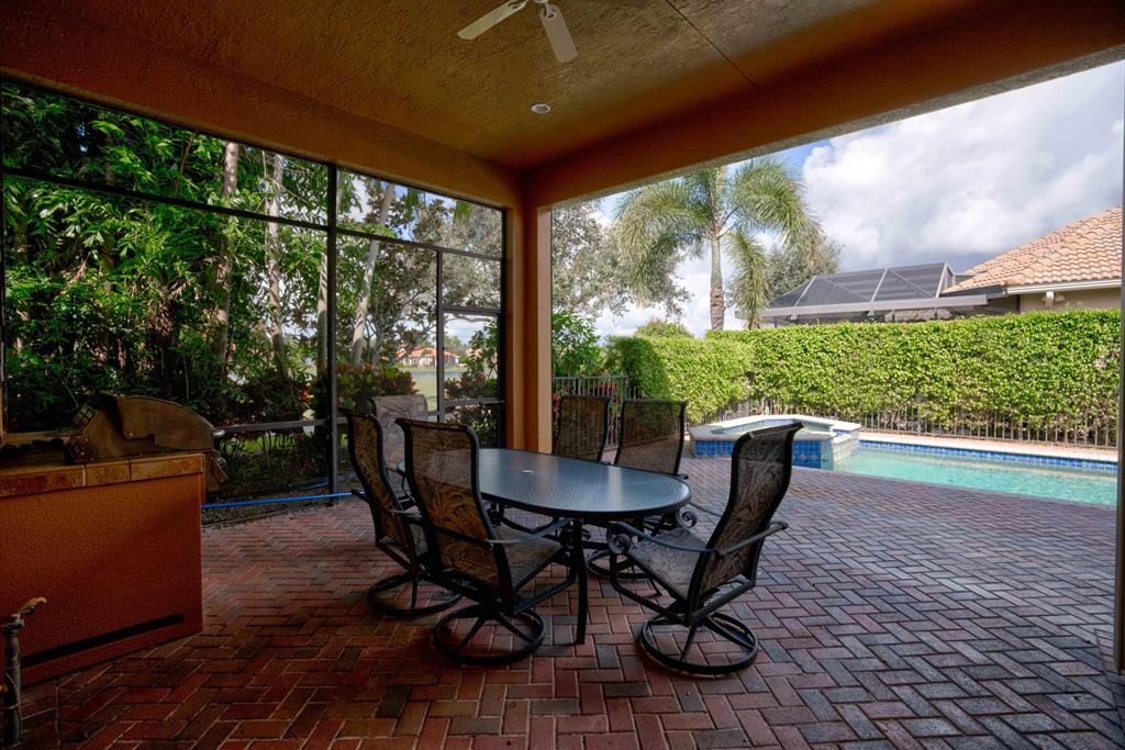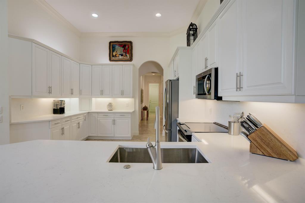 Brand new fabulous kitchen with quartz counter tops and full back splash! Brand new SS appliances compliments the stainless handles on all the cabinets. 3 bedrooms, with walk in closets 4 full bathrooms. Cabana full bath leads to the patio with summer kitchen and phantom screen enclosure, pool and spa areas. There is a media room with custom book case + office/4th bedroom. Two newer A/C. Accordion hurricane shutters. 2 car garage +golf cart garage. HOA $755/quarter, which includes landscaping maintenance front & back, exterior painting every 7 years & power washing of roof and driveway. POA 870/quarter which includes high speed internet & cable. Club membership required. Minimum social membership $50000. Assessment of $159/month through 6/23 for all club improvements.