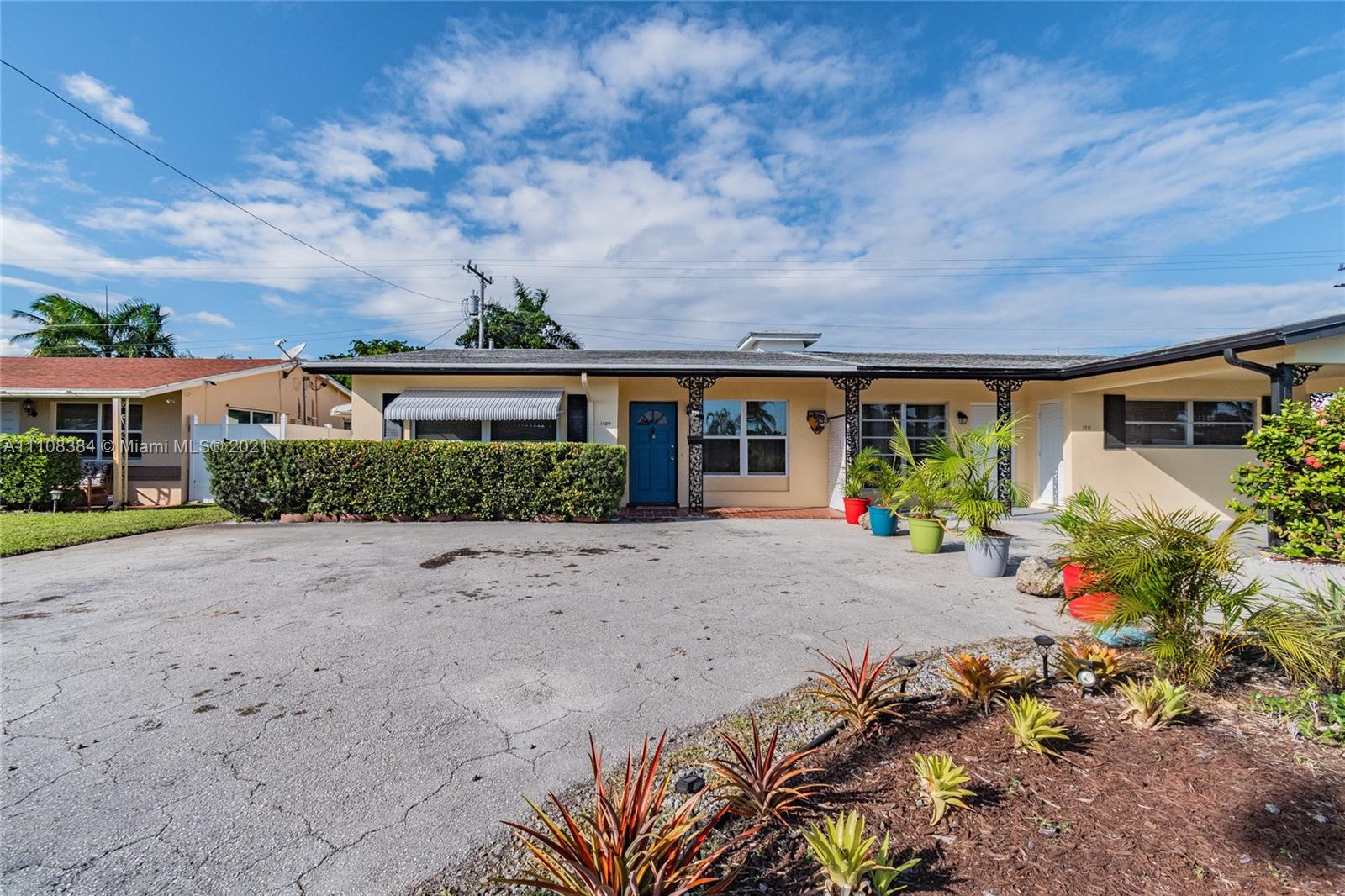 2 bedrooms 2 baths Twin Home in desirable Coral Ridge Isles, family room + large laundry/storage room, tile throughout, no homeowners association, master bedroom has separate door to front, ideal for rental, fenced backyard can be your lash garden for relaxing & entertainment, awnings for shading and storm protection, roof is replaced in 2013, new thermal windows installed in 2020, new backyard door 2020, brand new air conditioner just installed with 10 years warranty to the new owner, ready for your touch-ups, friendly neighborhood, close to shopping & dining, US1 and a bike ride to the famous beach of Lauderdale By The Sea, only 2.2 miles to I-95. AS-IS. Twin Home is two houses on two properties, sharing a common wall.
