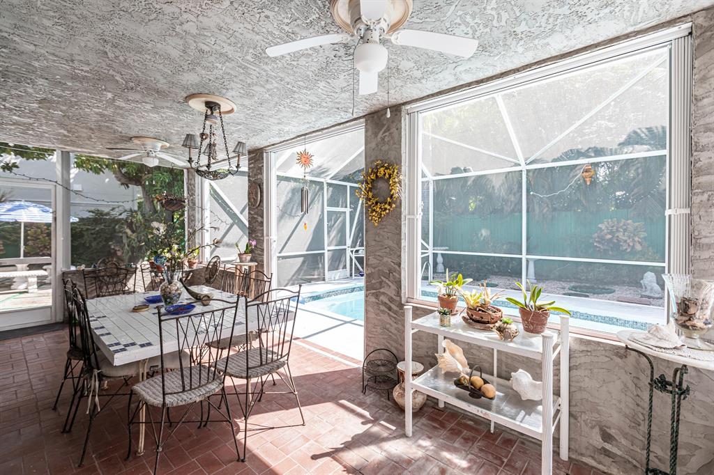 Located steps from the intracoastal waterway, this well cared for home features 3 bedrooms, 2 baths, generous closets, tile throughout, faux finishes, stainless steel appliances, built-in nook, kitchen desk and shelving, Pella windows, hurricane shutters, generator hookup, custom driveway, screened pool, covered patio, well fed sprinkler system and plenty of fruit trees in the yard. Chandeliers do not convey.