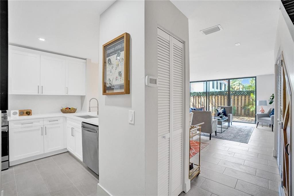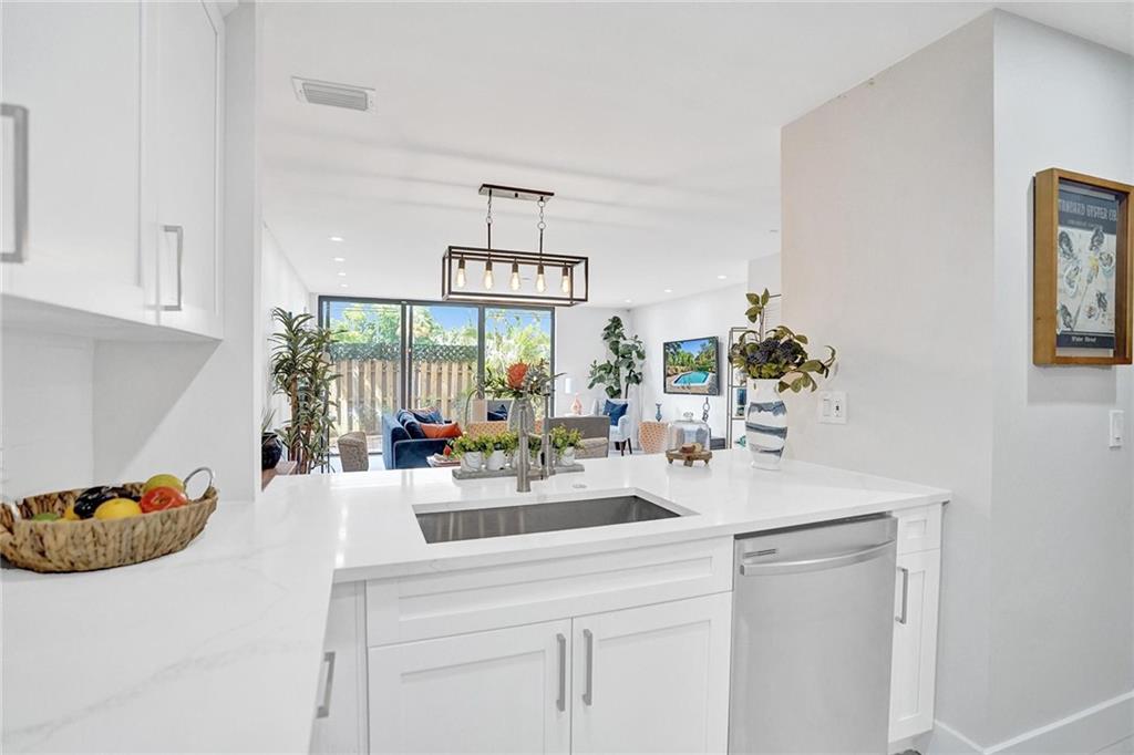 Spectacular and completely renovated 2 bed, 2.5 bath, corner-unit townhome located in East Ft. Lauderdale! Large and spacious open floor plan with an extensive wrap-around back yard, perfect for entertaining. This turn key townhouse consists of a brand new, freshly remodeled kitchen, bedrooms and bathrooms, a plethora of natural light and direct access to the pool area. Other new features include: All Samsung stainless steel appliances, Carrera quartz countertops with custom white maple wood cabinetry, new water heater, custom kitchen nook, walk-in closets, French doors and 2 deeded parking spaces. The location is perfect, as you can walk to local shops, restaurants, bars and much more. Walk/Bike to the beach and many other entertainment venues! *Showings at Open House this Saturday*