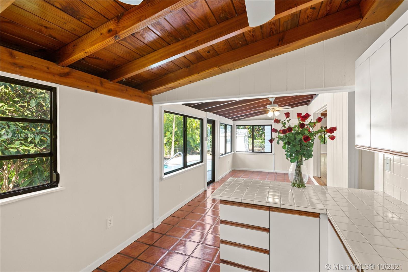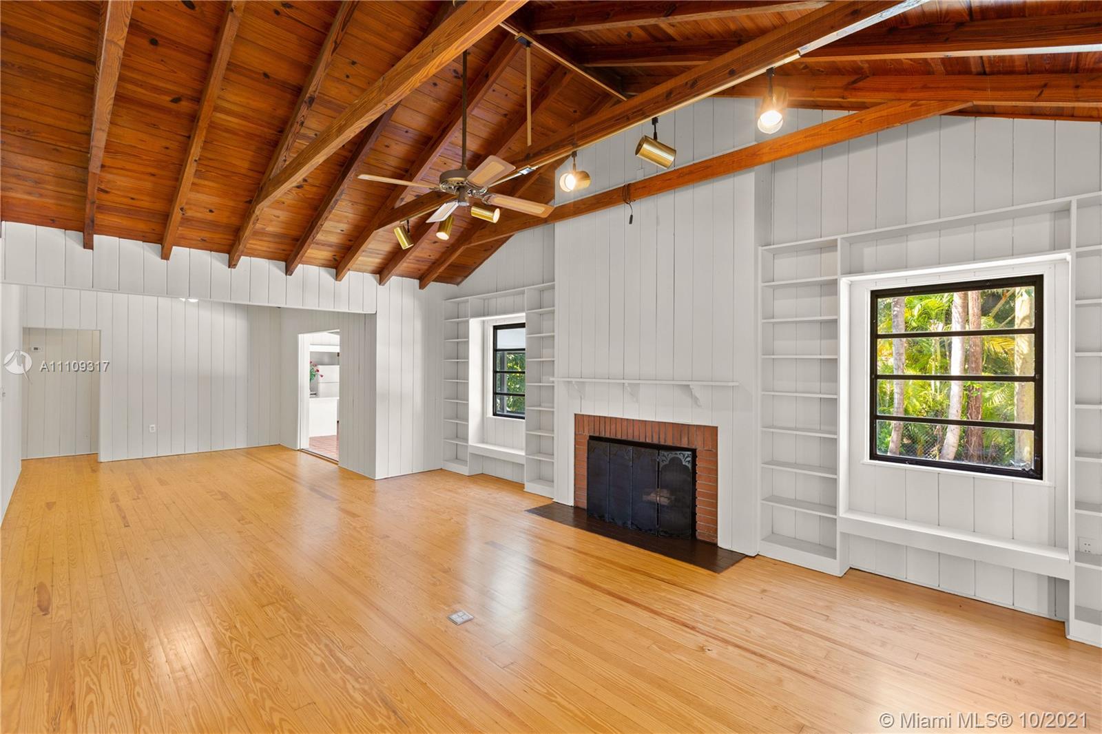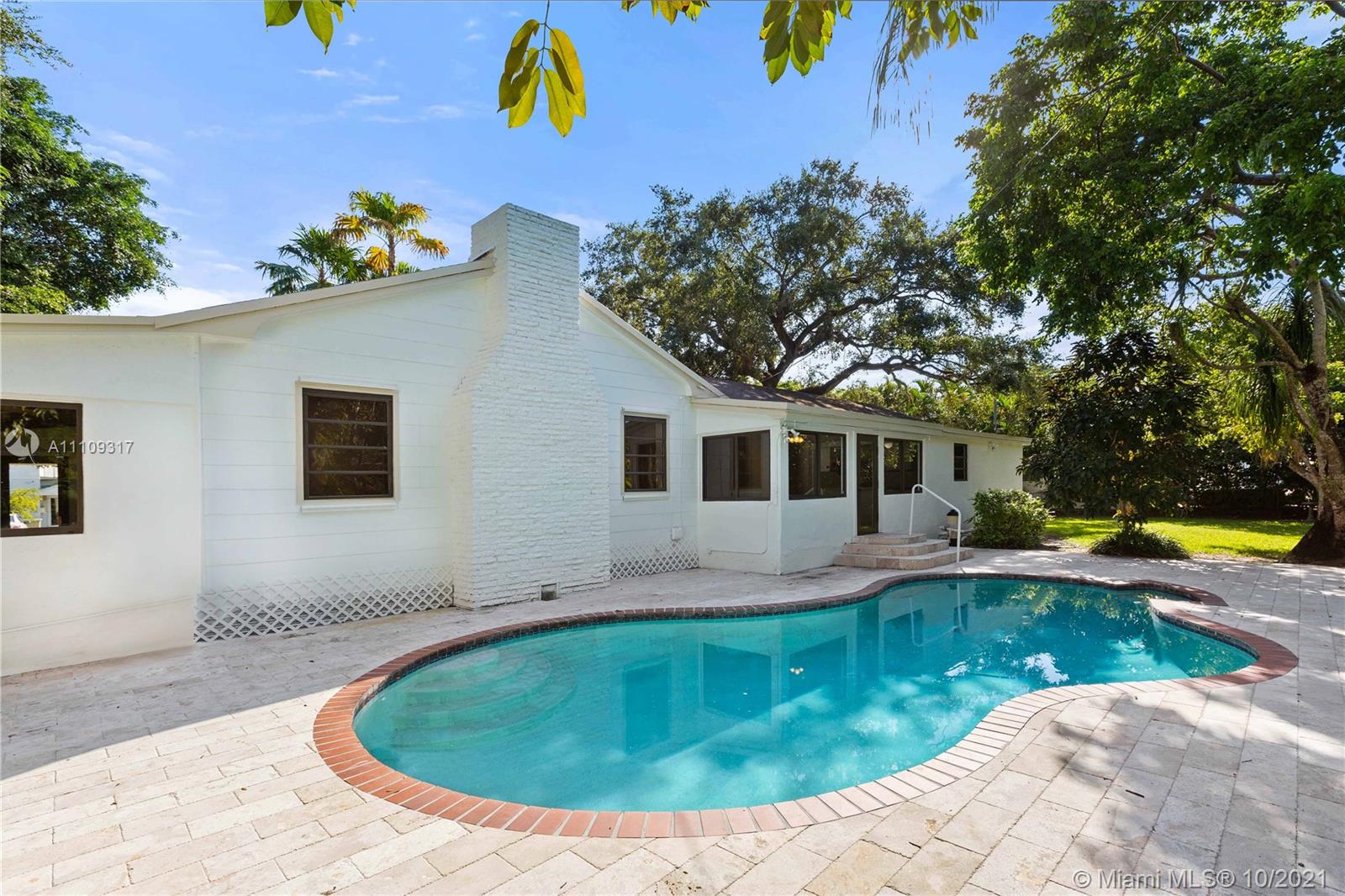 Classic South Florida Gem in the heart of Coral Gables. Nestled in a wide 15,000 sq.ft. lot, this beautiful 5-bedroom, 3-bath home with exposed beams, wood burning fireplace and Dade County Pine floors and about partially clad with impact windows and doors is spacious and full of natural light. Sparkling pool and full of space. Walk to Sunset Elementary or Riviera Elementary, Publix, the park and downtown South Miami. A great location for a great price.