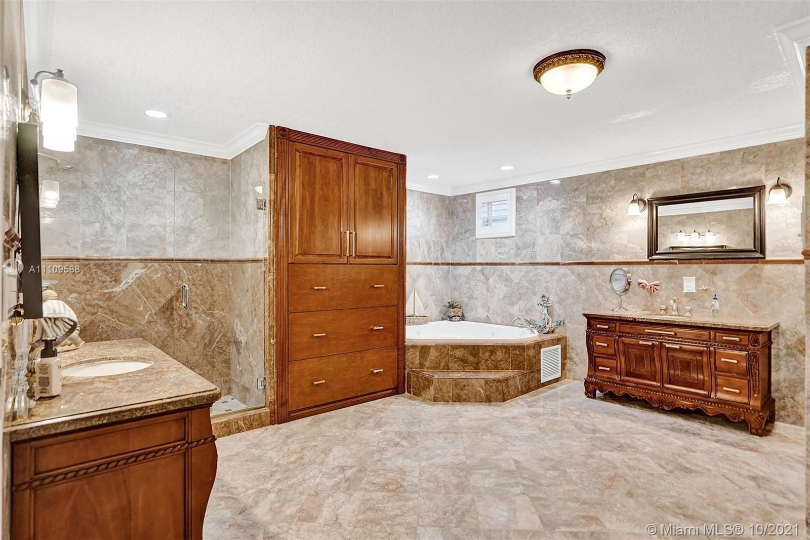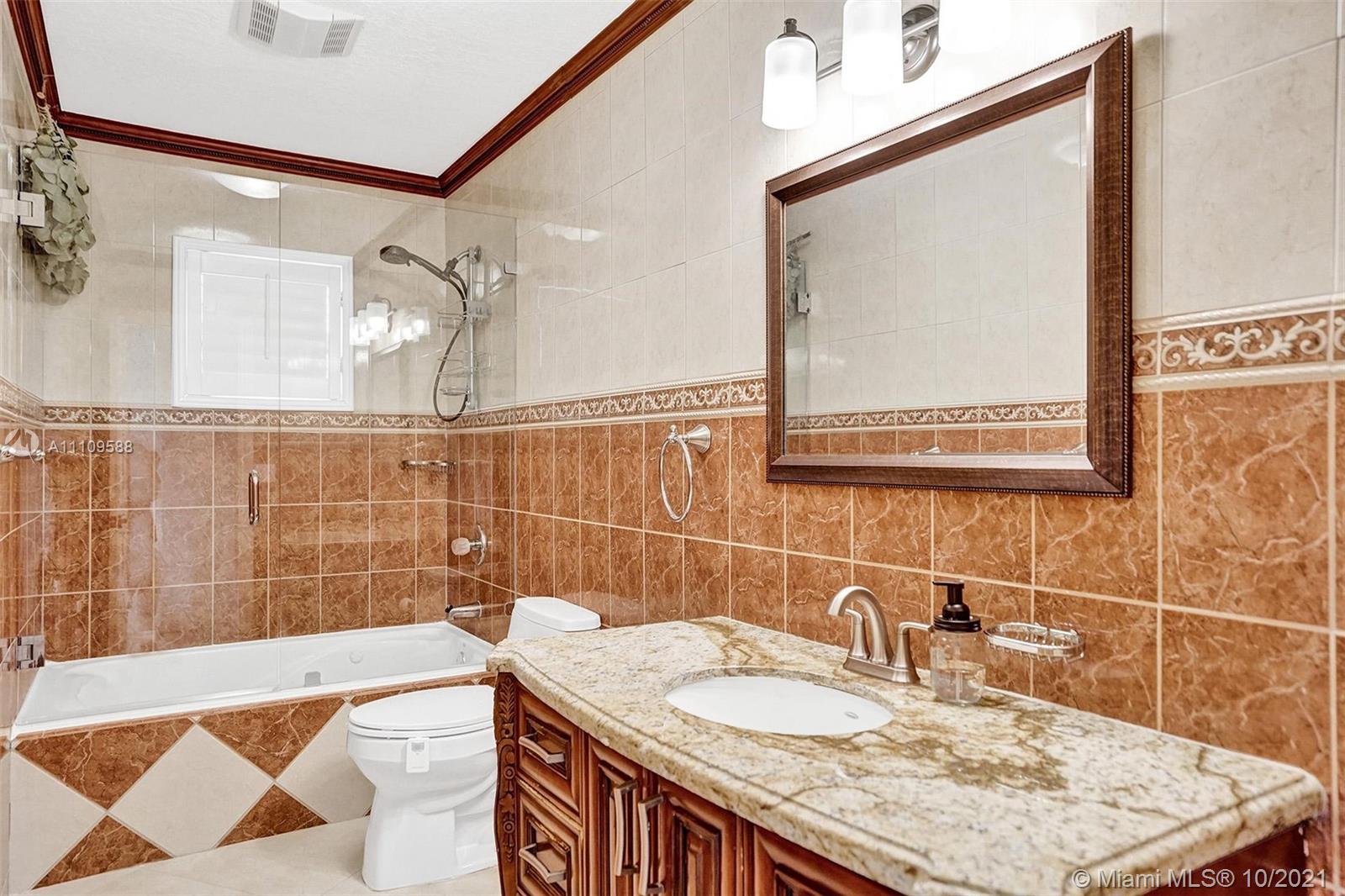 This elegant estate is located in one of Doral’s most desirable communities, the Vanderbilt subdivision a family oriented neighborhood with no homeowners association to deal with. This home welcomes you with great curb appeal, a grand circular driveway, and a glamorous entrance featuring the spacious living areas with high ceilings that will leave you breathless. Other home features include a copper roof, marble floors, plantation shutters, an updated kitchen, two master suites, grand master bathroom, plenty of closet space, a cabana bathroom, a laundry room, French doors, & two gazebos, also with copper roofs. With over 4,200 ft.² of living area and almost 10,000 ft.² of outdoor entertainment you, your family, and friends will have many memories to create.
