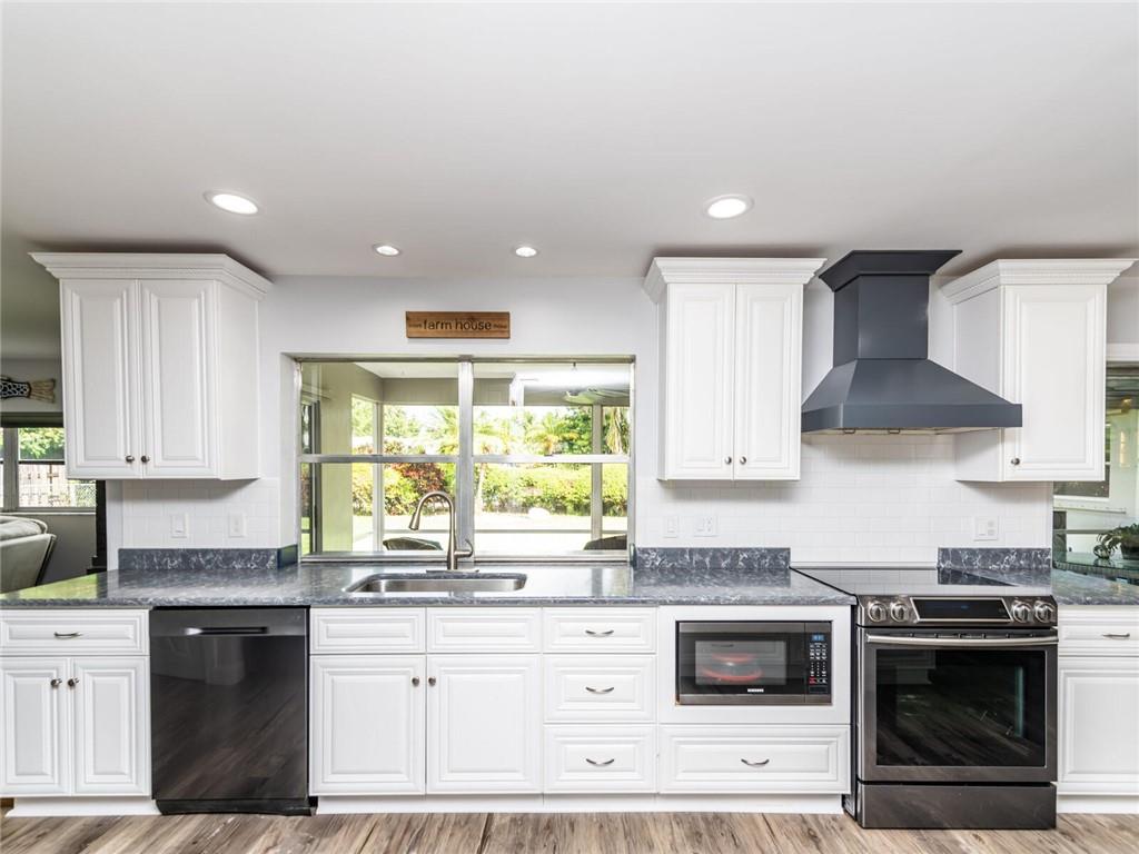 Welcome to this modern gem in Royal Palm Estates. 4/2, with a 12,000 sqft lot, a 2 car garage, & an oversized fenced-in backyard. Open floor includes fully renovated kitchen w/custom upgrades. Updates include: newer roof & AC, new rigid-core plank flooring main areas, massive 6 ft island w/quartz countertops, custom wine/coffee bar w/LED lights & wine refrigerator. Newer Samsung black stainless steel appliances, Samsung washer/dryer, modern recessed can lighting, custom built-in TV/entertainment wall & shelves w/surround sound, crown molding, custom home office w/library & french doors, custom built walk-in master closet w/LED lighting, new tile on screened in patio, new driveway & fence. Great safe location in Plantation neighborhood w/schools, parks, shopping all within 5 minutes away.