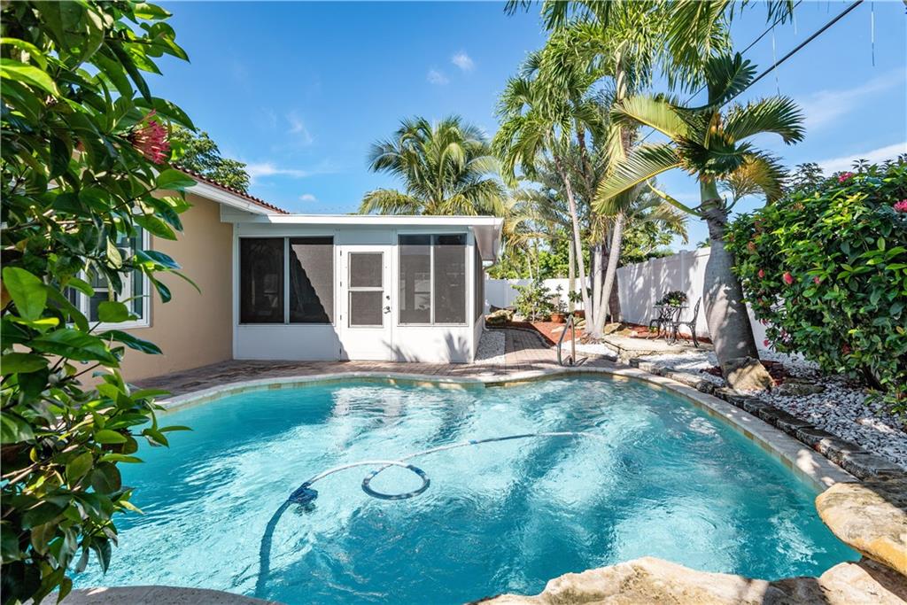 You must see this newly updated 3BED/2BA pool home w/ single car garage and new glassed in back porch. The backyard features fruit trees, salt water free-form pool with water fountain, all new pool equipment and multiple seating areas all surrounded by new pvc fencing for privacy. Upgraded sprinkler system, outdoor lighting and all hurricane impact windows & doors. Inside new A/C system(2020), tankless hotwater(2016), new tile flooring throughout, new Samsung kitchen appliances (including gas stove), new LED recessed lighting and state of the art security system. Primary bath w/ steam shower. Laundry room/pantry is inside the home (not in the garage). This well maintained home is also equipped with a generator, storage shed & natural gas. Both interior and exterior were recently painted.