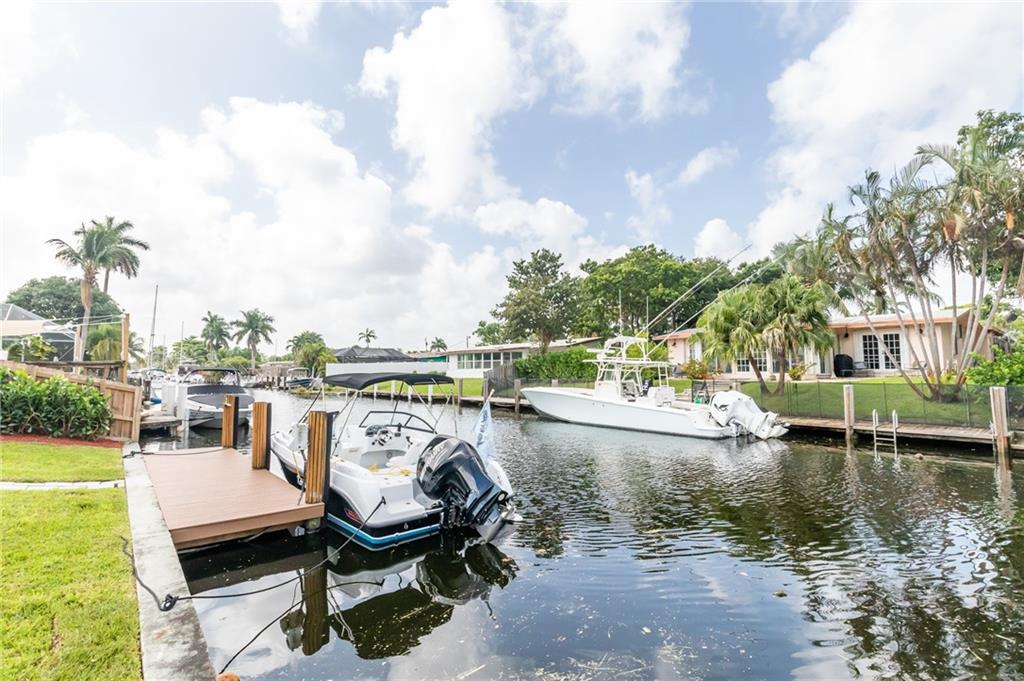 4/2 in Lauderdale Isles completely updated and remodeled in 2017 all with permits including carport and Florida room conversion, HVAC, Plumbing, Electric, Impact Windows/Door. 2020 New Fence, New half moon driveway , New porch and pergola, Built in bar, New Seawall footer and new dock. Open split floorplan with beautiful Terrazo floors. Water views as soon as you step in the door, all glass living room overlooking your backyard and water views. Power and Water at the dock. Affordable boaters Deepwater / Ocean Access in Lauderdale isles with convenient commuter access to Turnpike, 595, I95. Convenient boat ramp just one street down for easy access to pull boat if needed. NO HOA.