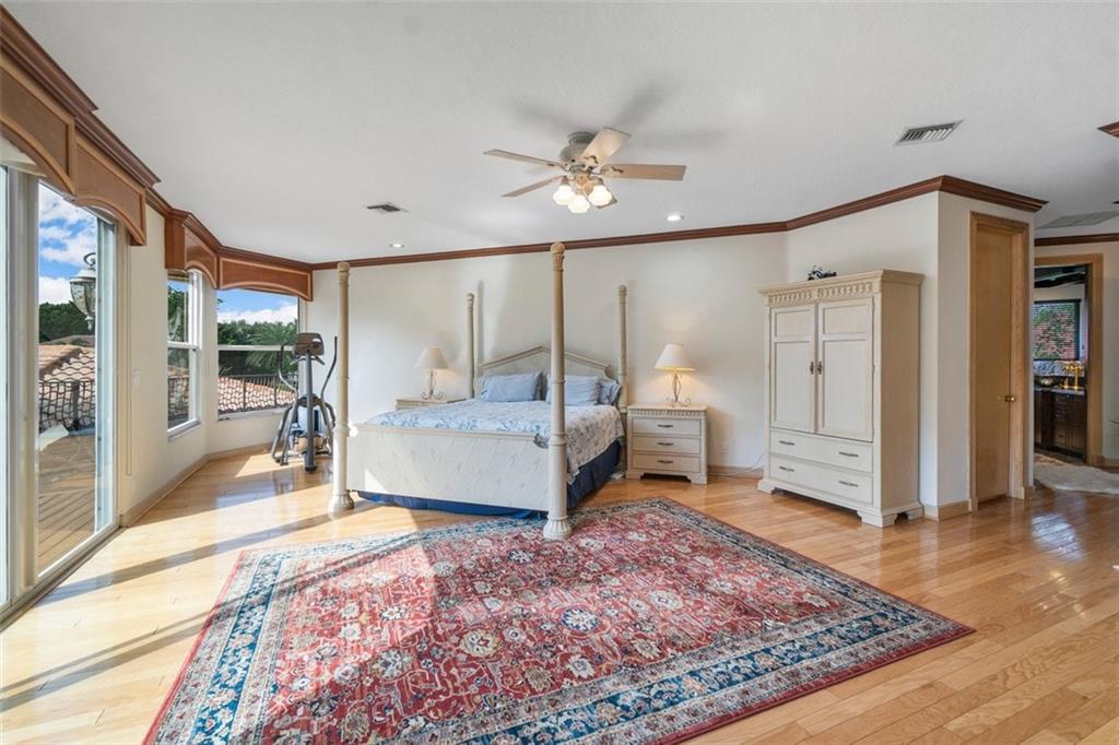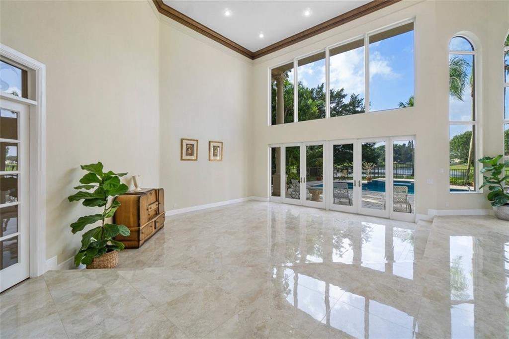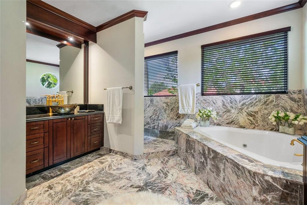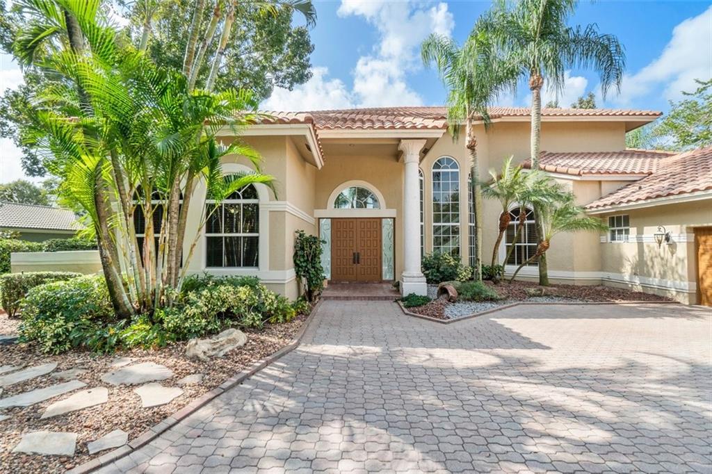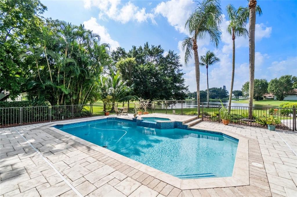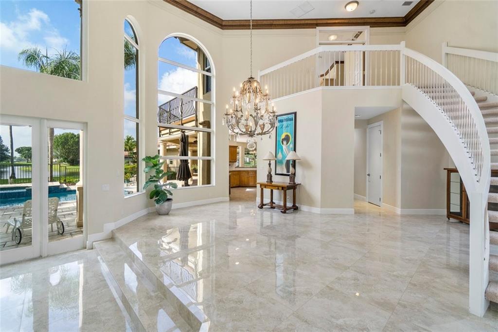 A breathtaking floating staircase, soaring 2 story ceilings & glorious lake views via walls of impact glass take center stage in this stunning estate home with a true guest house (not a studio). The open & gracious design allows for large living areas drenched in natural light, is perfect for large-scale gatherings & seamlessly flows to the impressive pool/spa area. The expansive kitchen/family room area features an island/fine wood cabinetry/top-of-the-line appliances/granite countertops & a fireplace. The beautiful Primary suite is impressive in size & has a sitting area/luxurious spa-like bathroom/new balcony. The separate guest house offers a large full kitchen/living room/large master suite/screened porch & peaceful water views. Perfect for a Multi-Generation household!