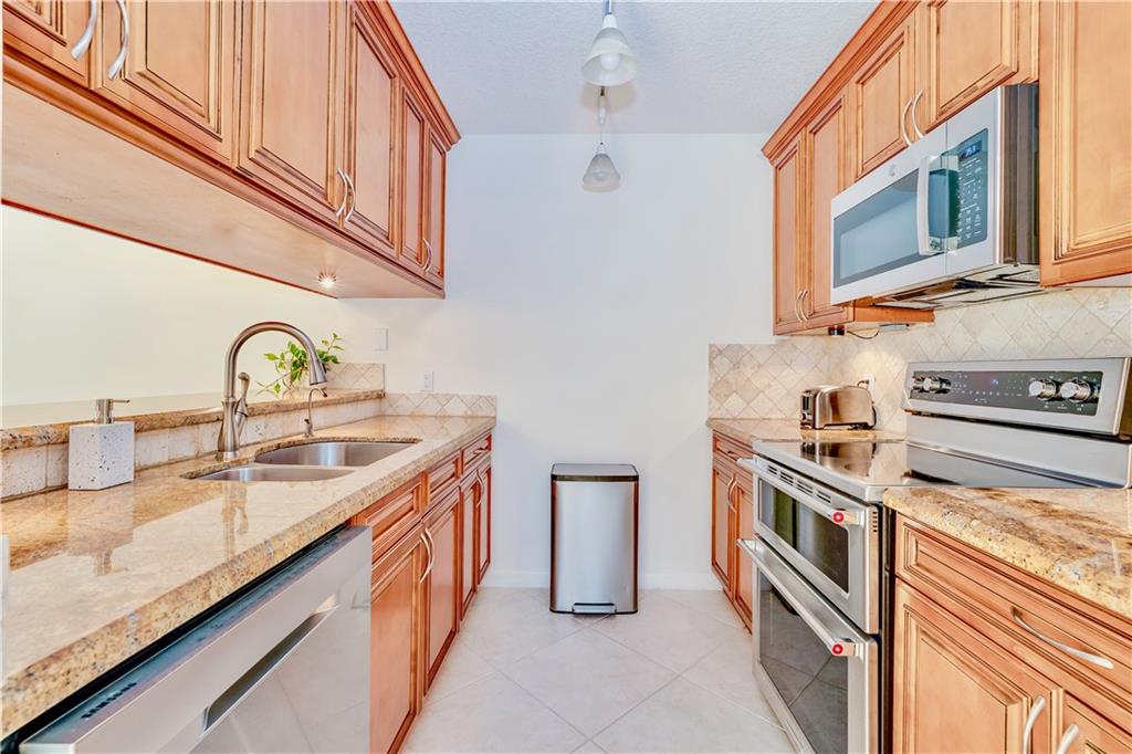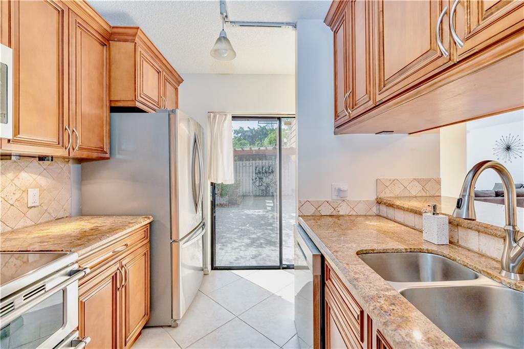 Best Views in the Neighborhood! This Updated Lake Front FEE-SIMPLE Townhome features: Spacious Bedrooms, Oversized Closets, Matching Cabinetry & Granite Throughout, Balconies with Lake & Garden Views, and Patio with Storage & Privacy Fence. New Kitchen Appliances & AC. Full Size Washer and Dryer. Locking Accordion Shutters. Conveniently Located in an Excellent School District and a Short Distance to Shopping and Entertainment. Low HOA Fee Includes: Membership to Pine Island Ridge Country Club with Residents Only Golf & Restaurants, Basic Cable, and Building Exterior.