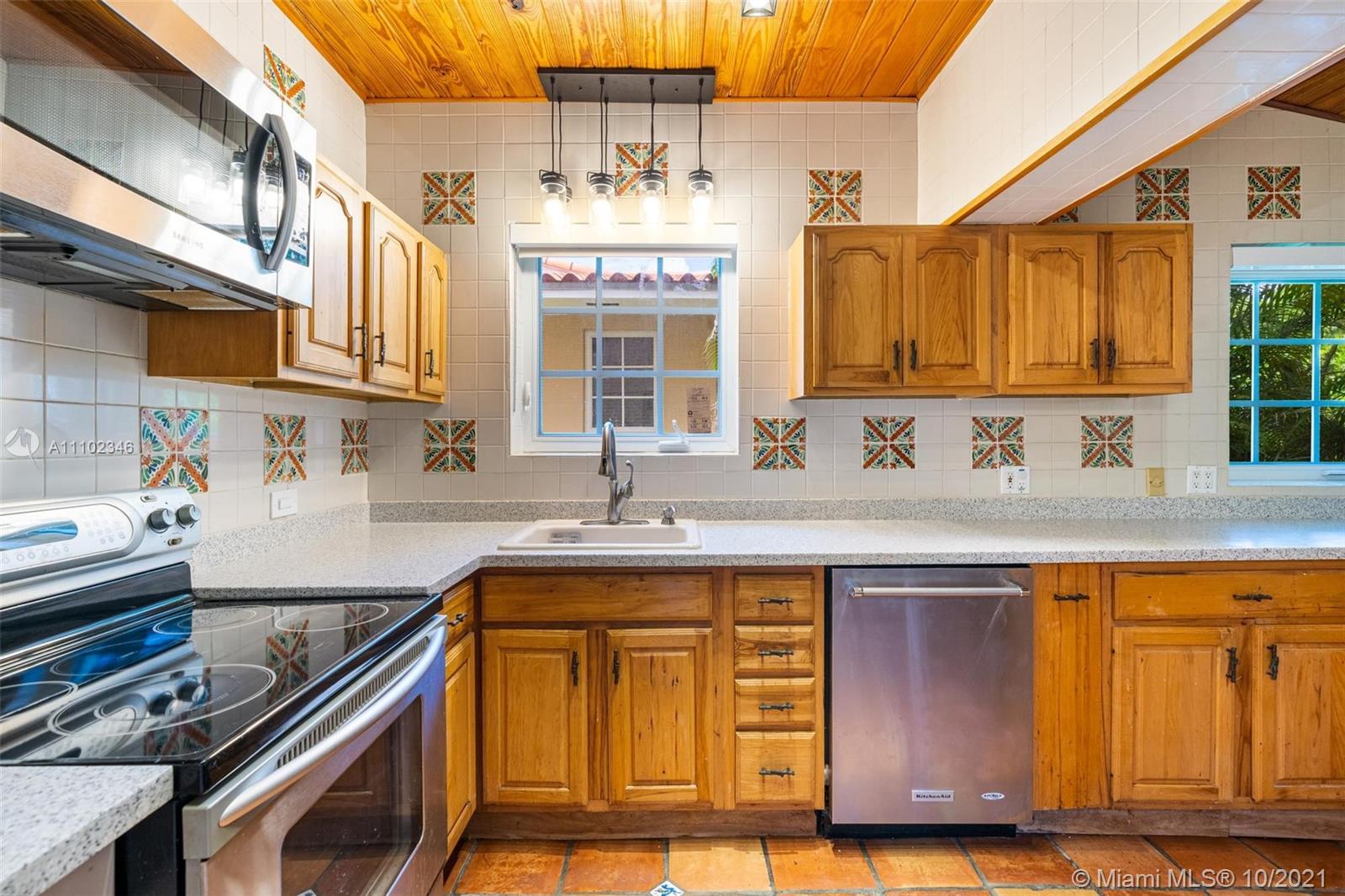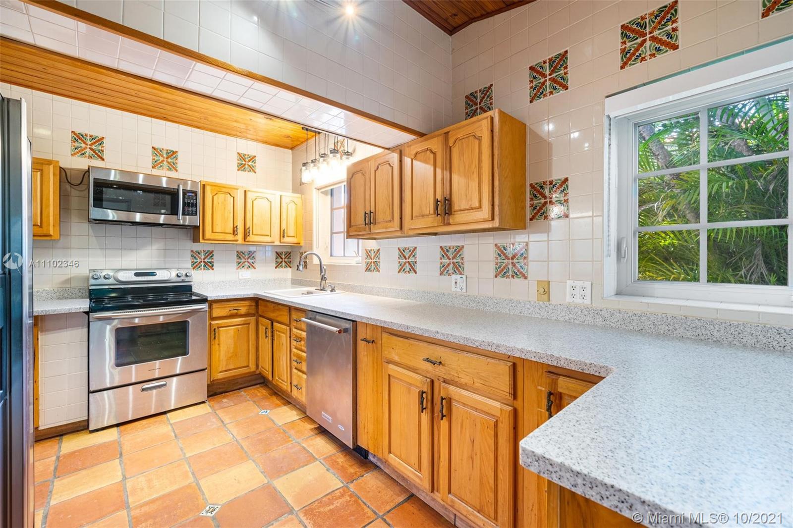 Classic two-story Coral Gables Spanish home that is located in the historic Crafts section. Follow the walkway up to the tiled entrance and step into the foyer via double wooden doors. The formal living room with fireplace flows into the dining room and kitchen with brand new countertops. Off the dining room are French doors that lead out to a tiled patio overlooking the spacious yard. Downstairs also has an office that connects to the family room with a full bath. The upstairs has 3 bedrooms and a fully remodeled bath. Impact windows and glass doors, new septic system, hardwood floors and attached one car garage. A friendly neighborhood with nearby trolley stops for easy access to miracle mile, the Metrorail and Merrick Park.