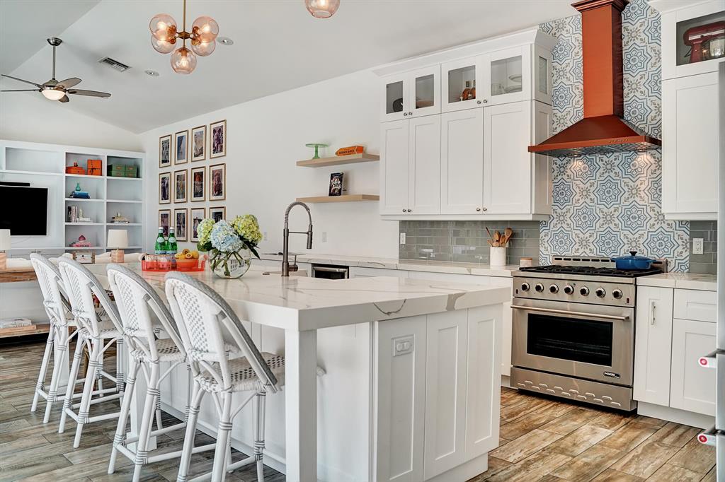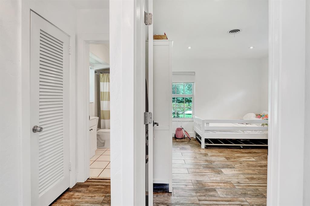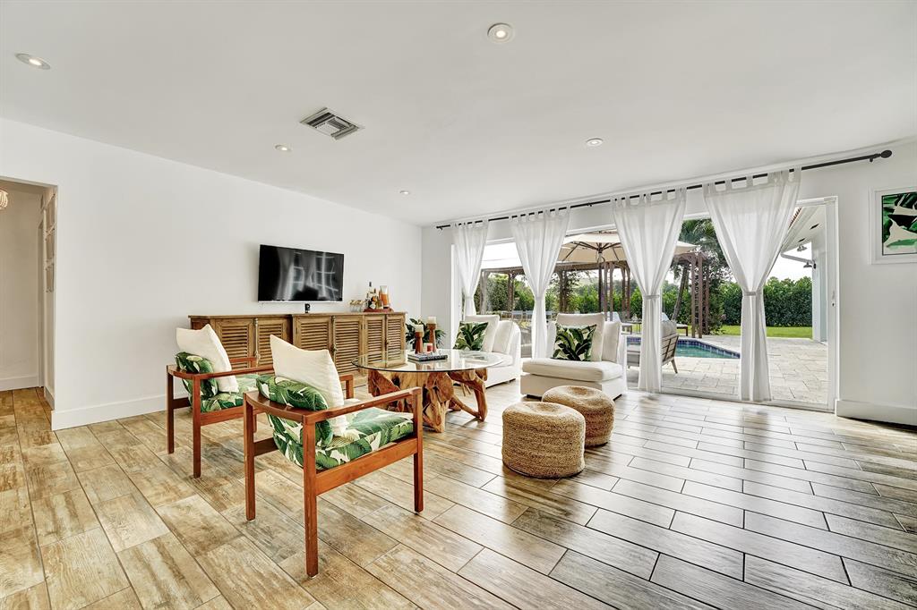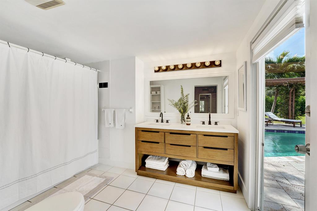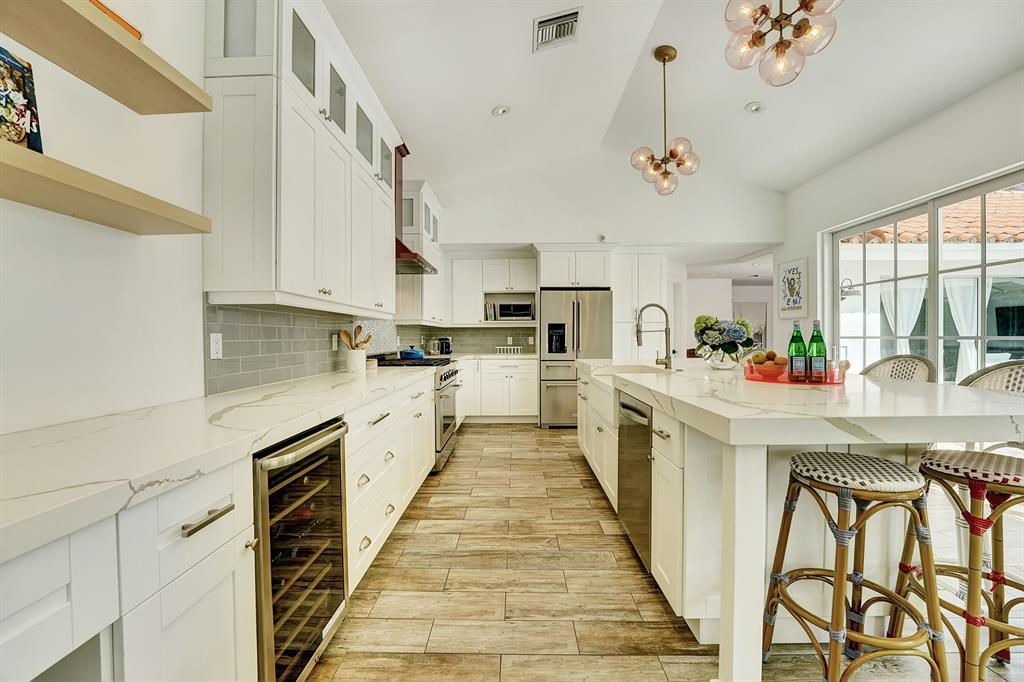 Nestled in the heart of Addison Mizner's East Boca Forest, perfectly positioned on a dead end street under a full tree canopy, ''Floresta Cottage'' exudes charm and represents quintessential Florida living. Featuring an oversized kitchen / family room addition that was completed in 2017, all living spaces wrap around the travertine marble pool deck, with three sets of sliding doors accessing multiple outdoor spaces, including a covered pergola for Al Fresco dining, a large grass area, and casual seating for sunset cocktails. Inside the 18' opening of impact glass sliders, you'll find a 10' calacatta gold island, a gas range, and family room with a 12' high cathedral ceiling. Integrated custom closets with barn doors add a personal touch to this Tranquil Coastal Cottage. Truly unique.....