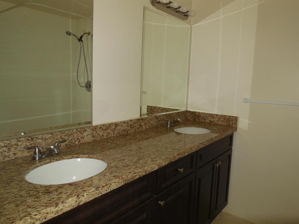 Village of Sandalwood Lakes South is a non gated community located in West Palm Beach. This townhouse with fenced open patio has two master bedrooms each with their own bathroom and powder room. Newer stainless steel appliances in kitchen with granite countertops. Tile throughout with laminate in family room and bedrooms. Newer full size washer and dryer. Open balcony with sliding doors from both bedrooms overlooks garden view. Accordion Hurricane Shutters. Community includes fitness center, play area, pools and tennis courts. Near major roads, shopping, highways, restaurants, beaches, parks. airport and more.