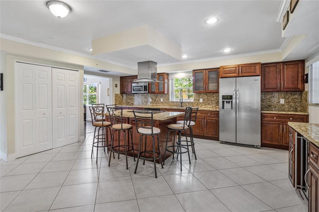 Fabulously & Beautifully Large home with a welcoming front courtyard. Sited on an expansive waterfront lot featuring an intensive variety of mature exotic fruit trees. Oversize living areas can accommodate a family who needs space. The Updated Island kitchen is impressive with its size & is perfect for large gatherings. Master Suite is a private retreat & offers a spa-like bathroom with a separate shower & whirlpool tub/balcony overlooking the grounds & pool area. Secondary bedrooms are on the first floor & are spacious. Huge screen porch with a full summer kitchen/newly resurfaced saltwater pool/large deck/tropical landscape & water frontage. Located in a quiet community in the heart of Coral Springs. Shopping, Dining, Schools & Places of Worship are within walking distance. NO HOA