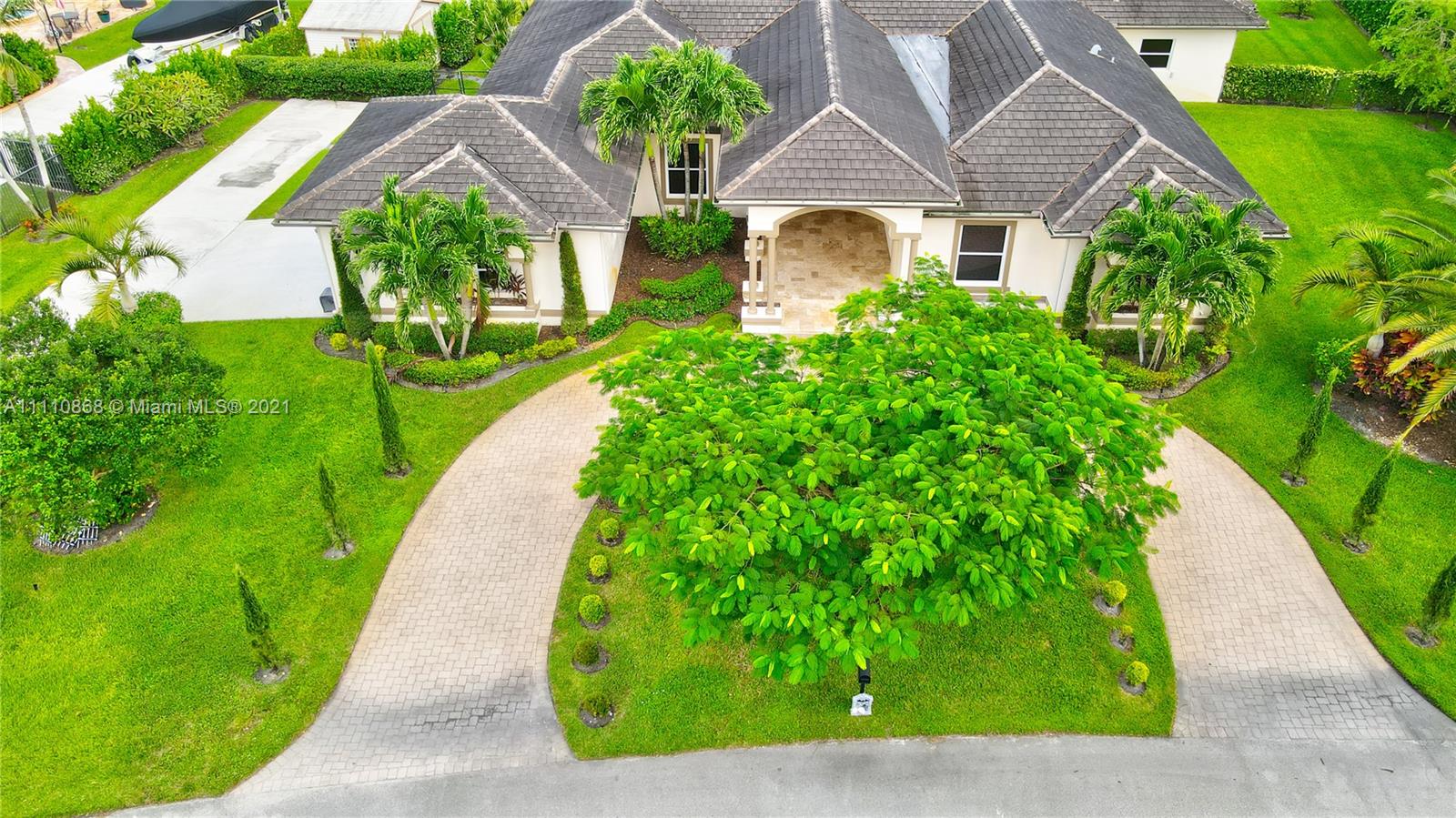 Luxurious custom built home features 4 bedrooms, one large master bedroom and 3 bedrooms, 3 full bathrooms & 2 half bathrooms, 2 living rooms, 1 dining room, 1 playroom, 1 office. Large spacious chefs kitchen (20x18) with the finest custom cabinetry, inbox appliances & open floor plan. Impact windows & doors with porcelain and tile flooring throughout. Entertain in oversized living areas with volume/vaulted ceilings or on the expansive patio featuring a resort style heated pool with jacuzzi, with outdoor kitchen with sink, gas BBQ and dishwasher. Large Garage can contain two large car/van. Two Outdoor garden storage, complete this beautiful house. No HOA, no restriction for your boat, RV. Smart home with music speakers and light control with app. Kids playground area.