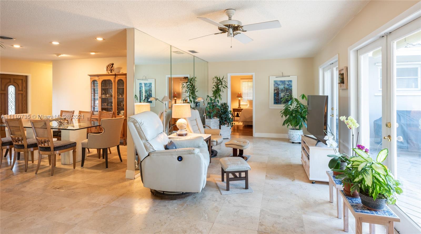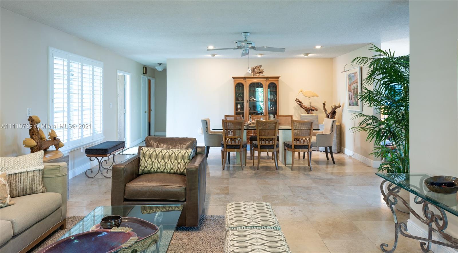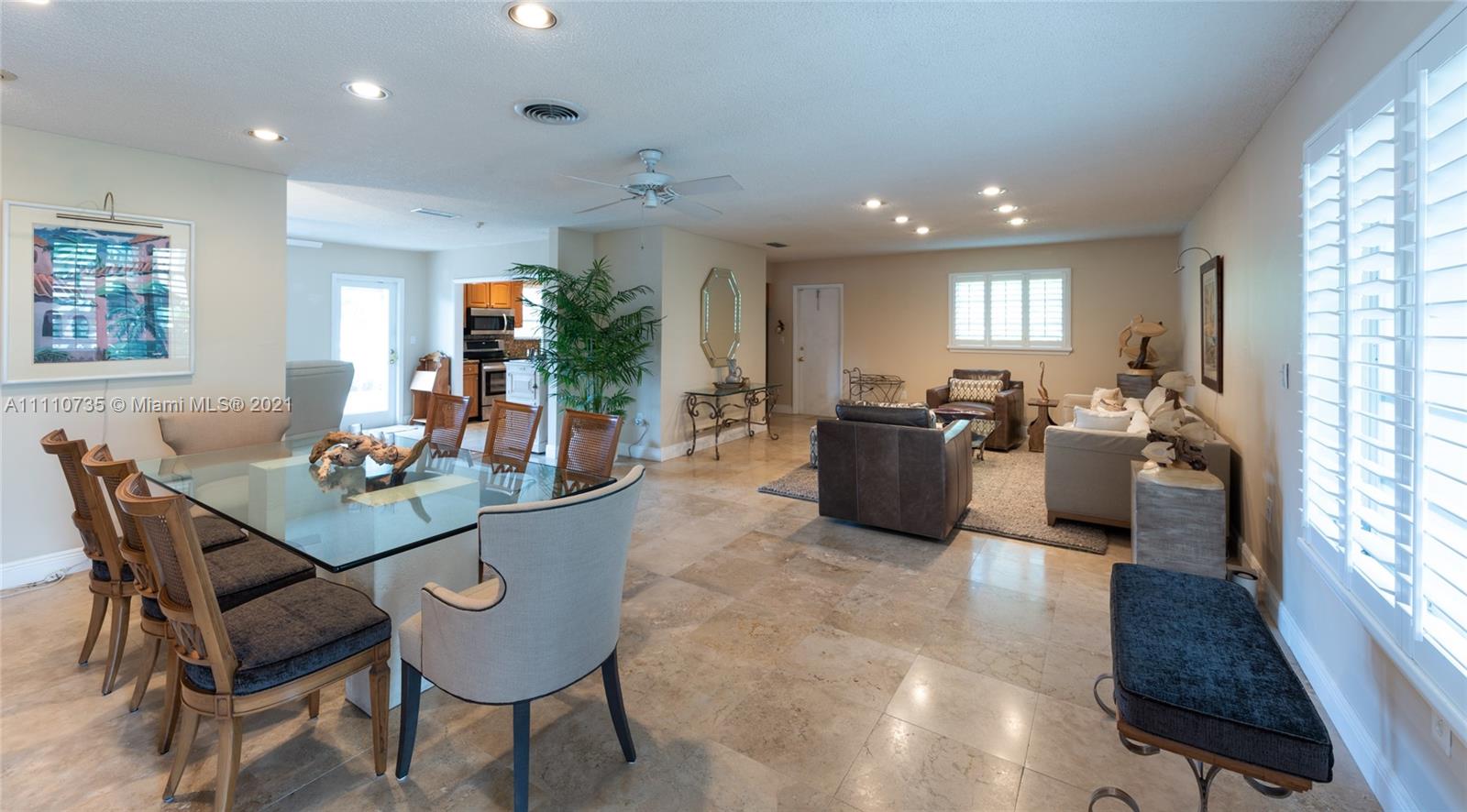 Beautiful light, bright, and airy 3-bedroom 2-bath waterfront home with backyard southwest exposure in gated Sans Souci Estates. Open floor plan and French doors ideal for indoor/outdoor living. Marble floors in living area and wood floors in bedrooms. Eat-in kitchen with granite countertops, wood cabinets, and stainless-steel appliances. Outdoors is a Floridian paradise with gazebo, wood deck and lush tropical foliage overlooking the tranquil waterfront with bay breezes. Private dock and davit on 75 feet of protected deep canalfront with ocean access and no fixed bridges.