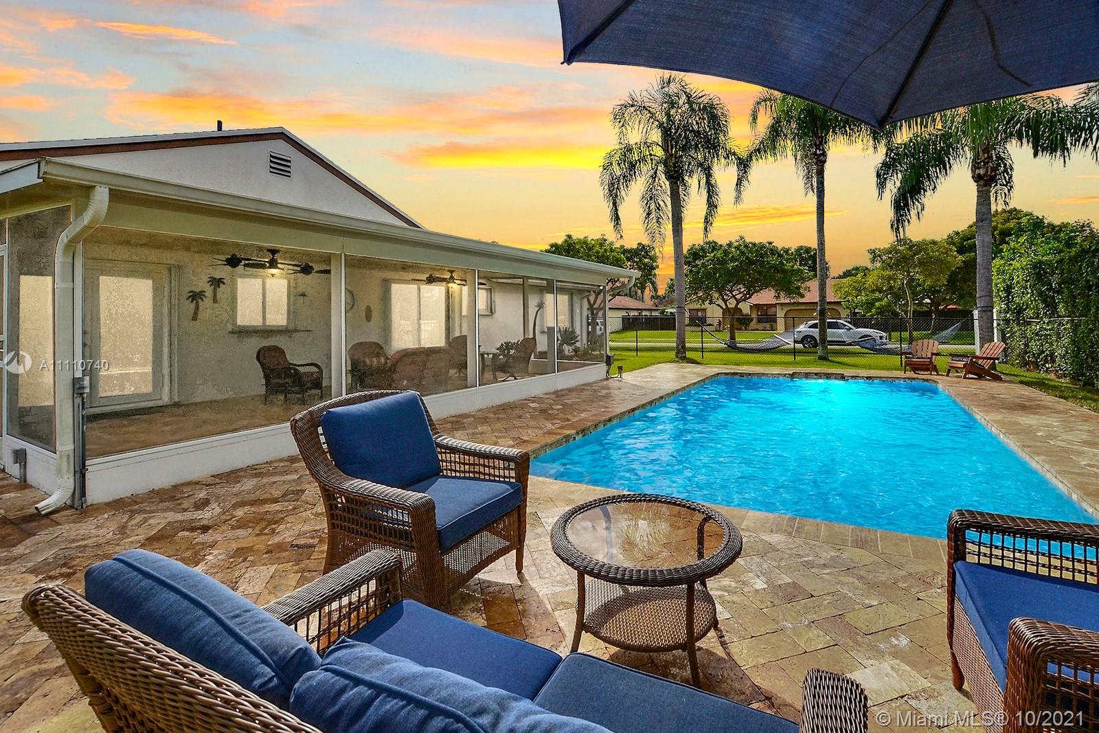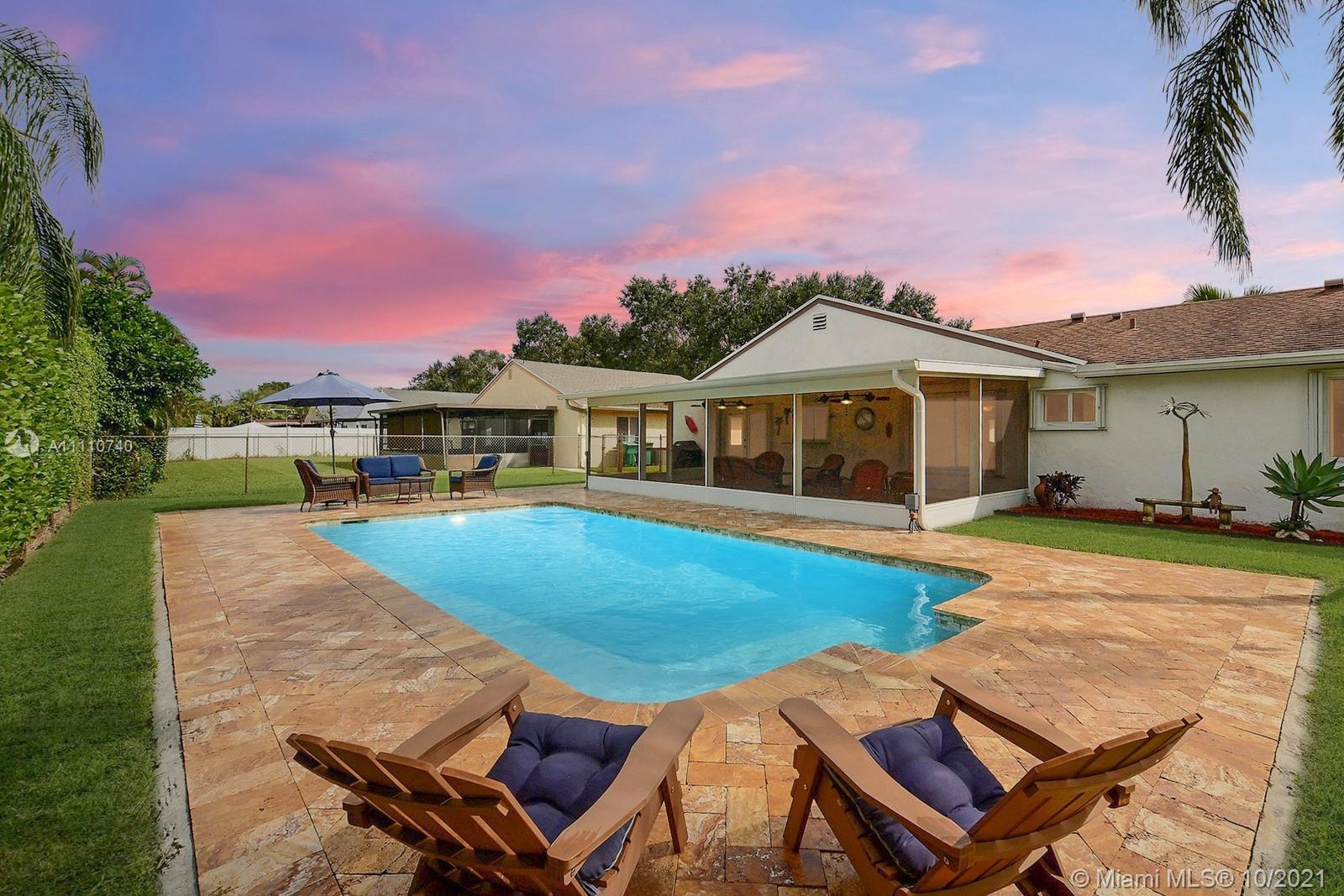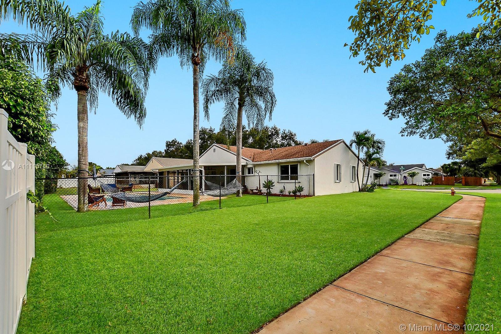 NESTLED IN THE HIGHLY SOUGHT-AFTER FLAMINGO GARDENS COMMUNITY OF COOPER CITY, AWESOME 3 BED & 2 BATH POOL HOME IS SITUATED ON A PREMIUM OVERSIZED CORNER LOT. LONG PAVER DRIVEWAY & TASTEFUL LANDSCAPING CREATE WELCOMING CURB APPEAL. LIGHT & BRIGHT LIVING AREAS DELIGHT THROUGHOUT. LOVELY KITCHEN HAS GRANITE COUNTERS, WINE RACK, TUMBLED MARBLE BACKSPLASH & VIEW OF THE POOL & PATIO. SPACIOUS PRIMARY SUITE HAS AN INVITING ENSUITE BATH. UPDATED SECOND BATH. SCREENED PATIO COMPLETE W/ A TRAVERTINE PAVER FLOOR IS PERFECT FOR DINING & ENTERTAINING POOLSIDE. LARGE YARD GOES BEYOND THE FENCE WITH PLENTY OF ROOM TO ROAM AND PLAY. DEDICATED LAUNDRY ROOM AND 2 CAR GARAGE. LOCATED CLOSE TO SHOPS & RESTAURANTS AND IN WALKING DISTANCE TO BILL LIPS SPORTS COMPLEX. ZONED FOR DESIRABLE COOPER CITY SCHOOLS.