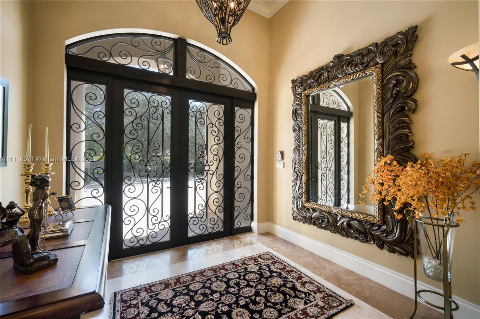 This charming Mediterranean home is paradise among the palm trees. Constructed in one level, this home enjoys abundant natural light and a layout designed for easy luxury living. The great courtyard gated entry and sophisticated backyard bring year round delight. The floor plan encompasses 5 spacious bedrooms plus an office or 6th bedroom and 4 luxurious bathrooms. All bedrooms have en-suite facilities. Generous proportioned kitchen, formal areas, family room with fireplace are just some of the great features of this home. Most incredible grand master bedroom suite. Highlights include travertine and wood floors, soaring high ceilings, impact glass, quality fittings and fixtures, beautiful heated pool and spa and a finished two car garage. Be prepared to fall in love at first sight.