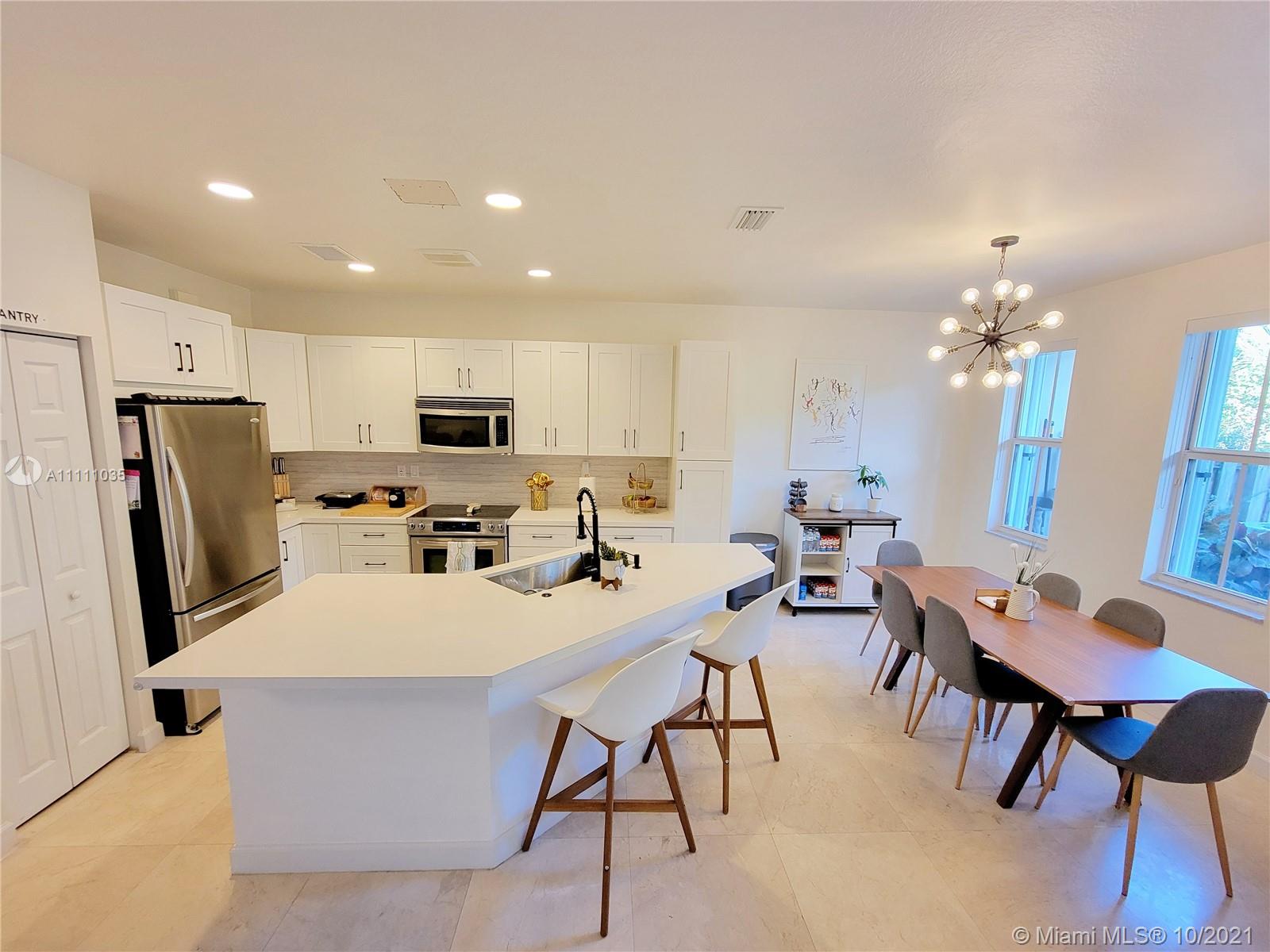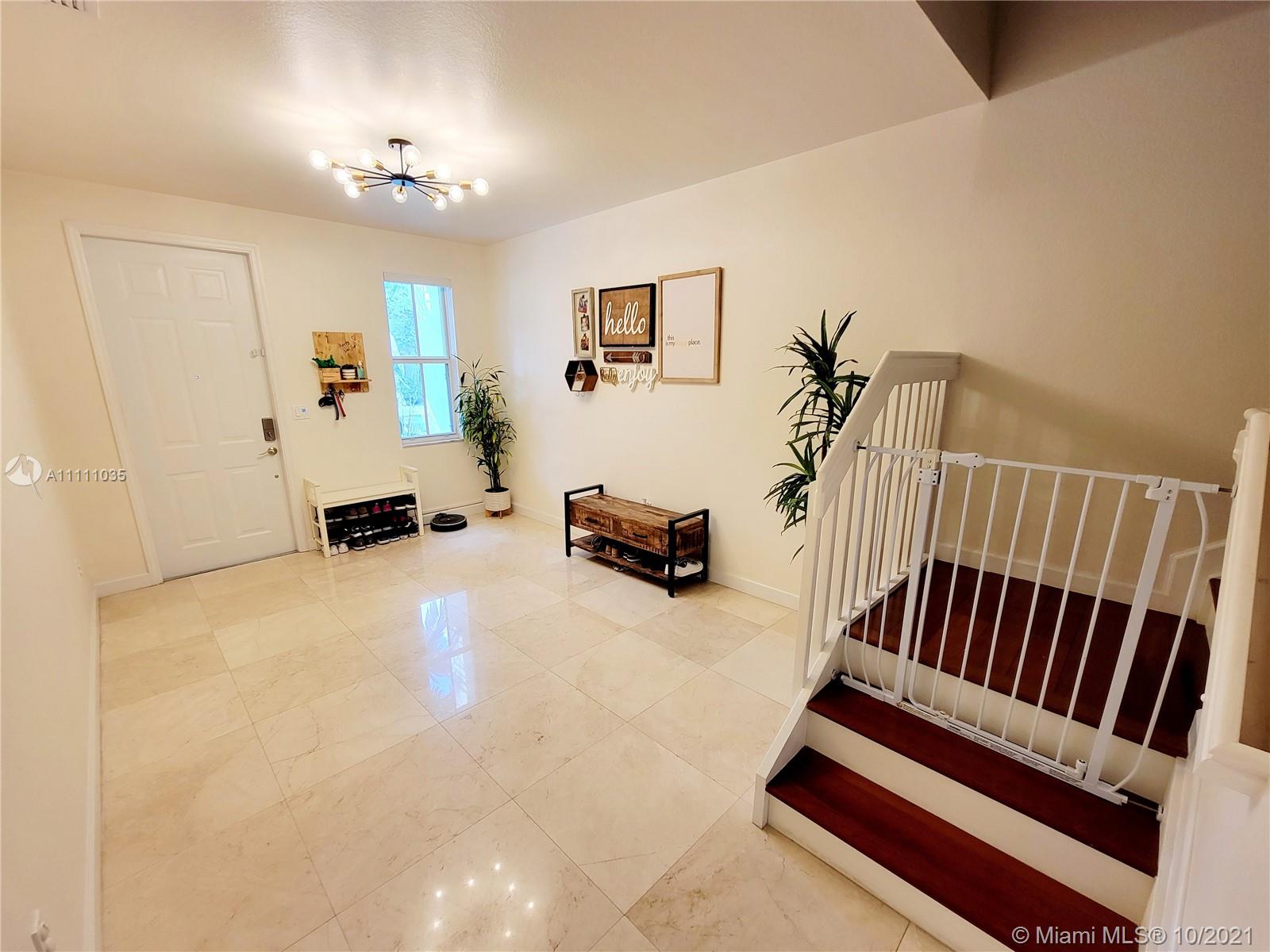 Splendid Townhouse in The Reserve at Doral East. 2 stories, 3 bedrooms, 2 full bathrooms, 1 half bath. beautiful and renovated open kitchen, garage whit wood floor, wonderful patio marble floor. Modern style with luxury finishes. Marble on the first floor and bathrooms, wood on the second floor. Upgraded AC, filtration system AC (UV light), Whole surge protector for the whole house, no neighbors in the back. House facing North / South. Gated community with security 24/7. Resort-style clubhouse, swimming pool, fitness center, and kids playground. The clubhouse is a walking distance.