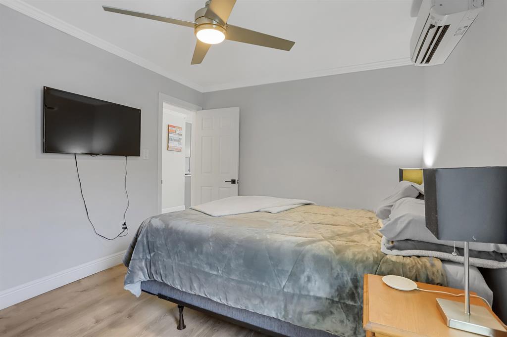 Charming, completely updated no HOA home in the heart of West Palm Beach! As you approach you will notice the lush landscaping and inviting front porch. Come inside and enjoy spacious living areas with new laminate flooring & crown molding throughout along with a new kitchen that offers modern quartz counters, brand new appliances, updated light fixtures, contemporary cabinets, and an inviting white quartz kitchen island. Fully renovated bathroom with subway tile, new plumbing, and light fixtures. The bedrooms are spacious with large closets. You can also enjoy a lovely, enclosed Florida room that overlooks the backyard. This home offers many more upgrades including full hurricane impact windows, irrigation well, and fresh paint inside and out! Detached large garage with added shelves.