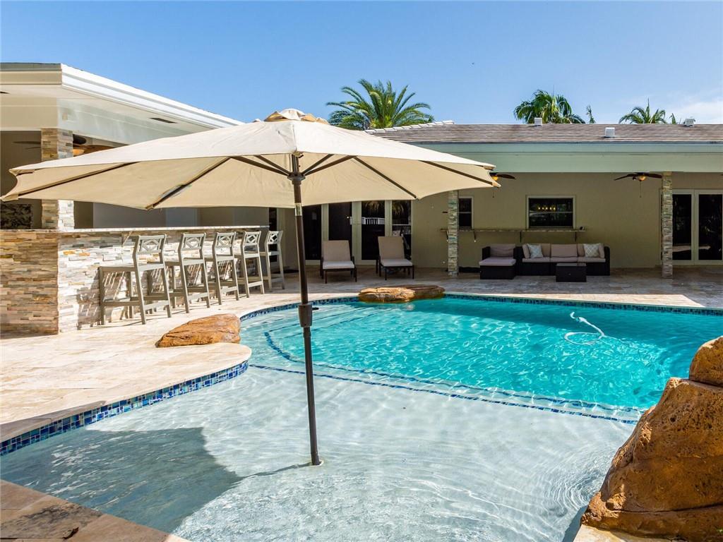 No expense spared in this unbelievable hidden gem! Freshly painted inside & out w/ over $300K of upgrades & renovations, newer roof, impact windows/doors, new flooring/doors, resort style pool area, summer kitchen, waterfall, fire pit, sun shelf in the pool shaded with umbrella, expansive private back yard with tropical landscaping & lighting!! The home sit's alone on the end of a cul-de-sac with no HOA. It is very spacious and cozy. All 3 full bathrooms have been redone to perfection!! It's immaculate!! Also equipped with CAT 5 wiring, cameras, & a fenced oversized yard! $285/yr membership to Bonaventure Town Center Required which includes a gym, pools, theater, basketball, tennis, bowling lanes and more. Hurry, this wont last in this market !!