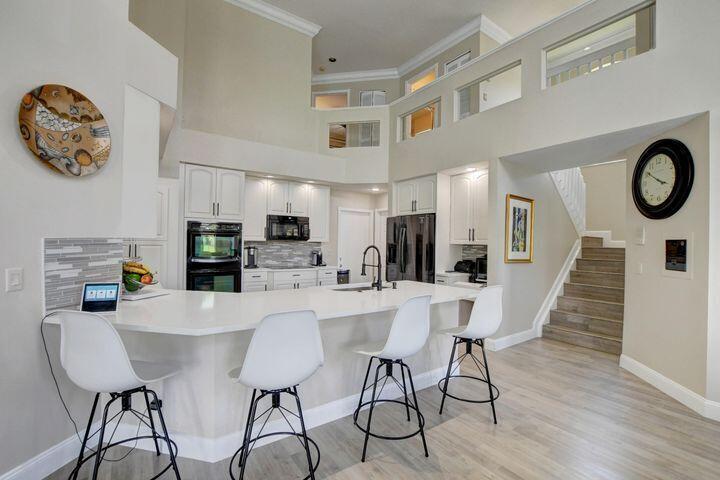 Renovated lake front Palm Beacher model rarely available in the highly desirable community of Boca Isles South. New roof which was just replaced June 2021, with a transferable warranty. The front entrance welcomes you into the grand living and dining rooms which boast 20 feet high. First floor master suite features a jacuzzi tub and separate walk-in shower. There is one additional guest bedroom and bathroom on the main floor, with the 3 additional bedrooms, and 1 additional bathroom upstairs. All of the bathrooms beautifully renovated.