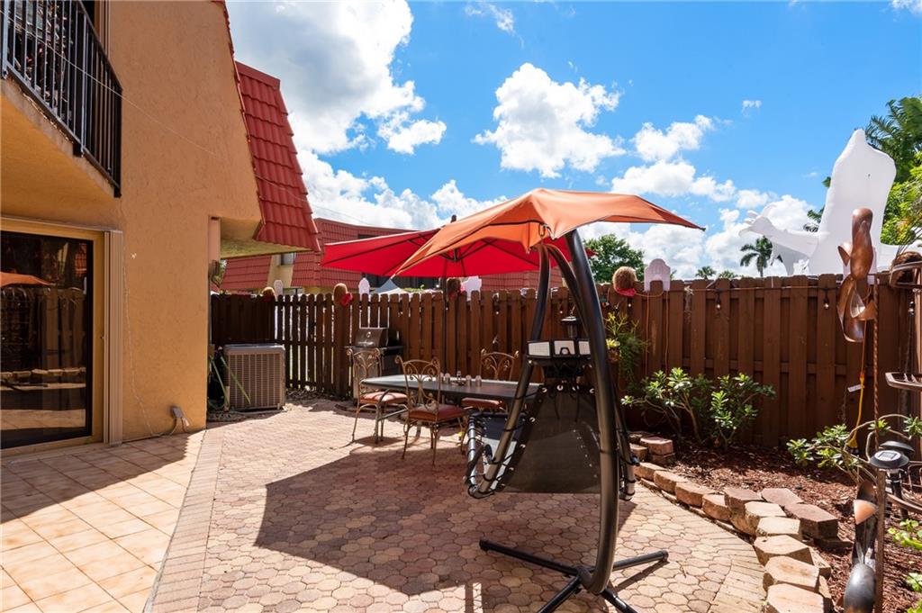 GREAT COURTYARD TOWNHOUSE WITH 2MASTER SUITES OVERLOOKING A BEAUTIFUL LAKE HAS A REMODELED KITCHEN WITH QUIET ULTRA HIGH GLOSS WHITE FLAT CABINETS TOPPED WITH MOLDINGS,SOFT CLOSE DOORS,SS APPLIANCES.GRANITE COUNTERTOP,NICE PANTRY. BOTH BDRMS OFFER ACCESS TO THE COVERED BALCONY THAT OVERLOOKS THE LAKE.GOOD SIZE CLOSETS AND EN SUITE BATHRMS.THE PRIMARY BATHRM FEATURES A JACUZZI TUB ON A TIMER, SHOWER, DOUBLE VANITY WITH QUARTZ TOP, A LAUNDRY SHOOT TO THE 1/2 BATHRM THAT NESTS FULL SIZE WASHER/DRYER DOWNSTAIR.THE GUEST BATH IS FINISHED WITH A QUARTZ TOP VANITY AND A GLASS DOORS ENCLOSED SHOWER.FRONT ENTRANCEDOOR HAVE BEEN REPLACED,AC REPLACED IN 2019.PLENTY OF WINDOWS ALLOWING FOR NATURAL LIGHT, ALL HAVE NEW ACCORDION SHUTTERS.FENCED FRONT PATIO ,GREAT FOR ENTERAINING AND A GOOD SIZE STORAGE