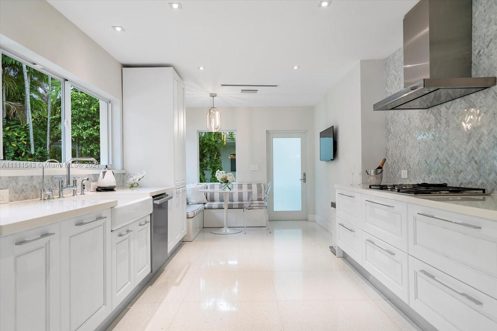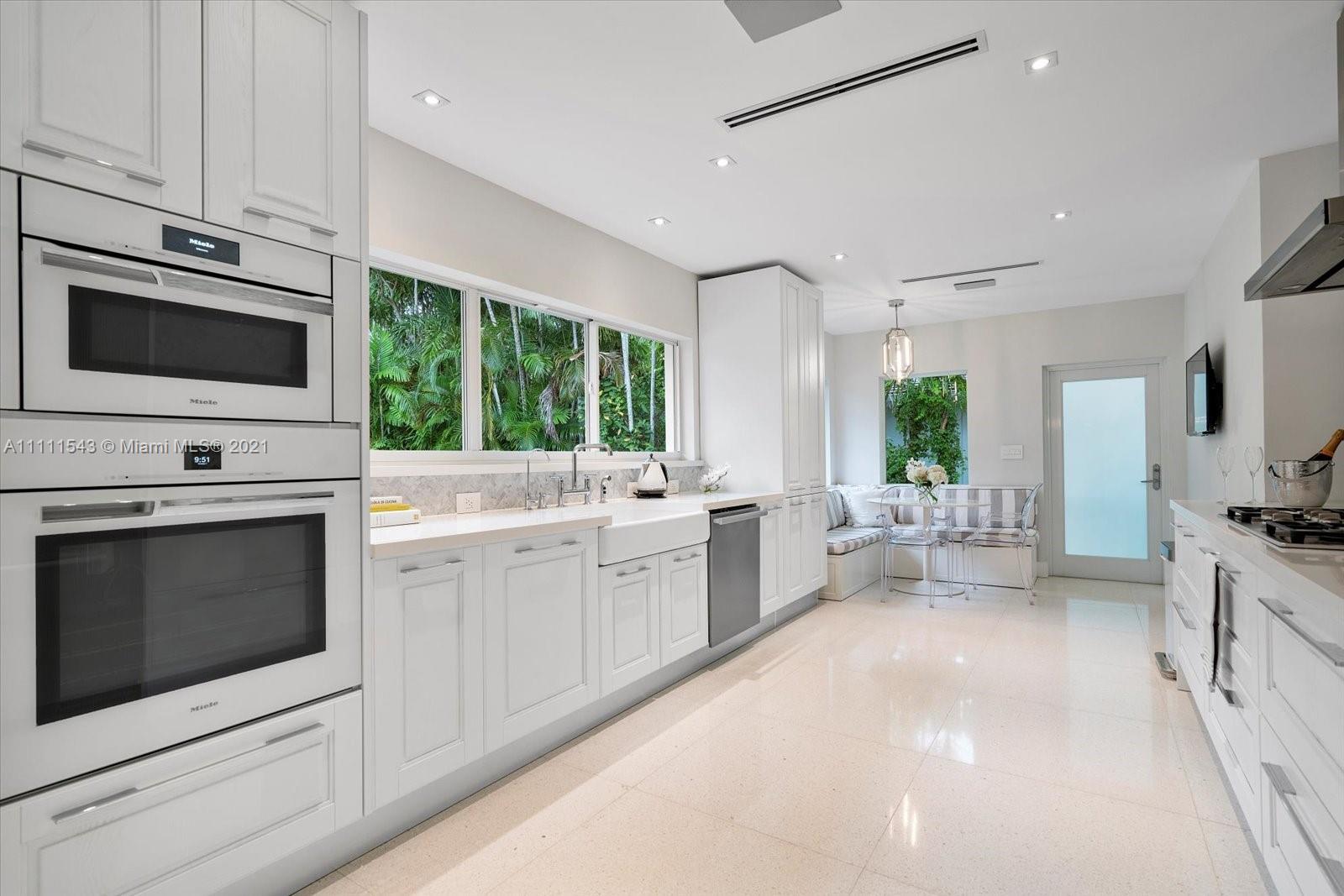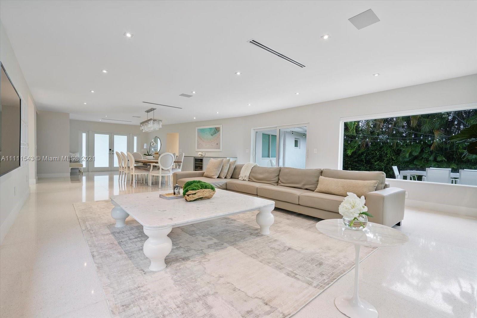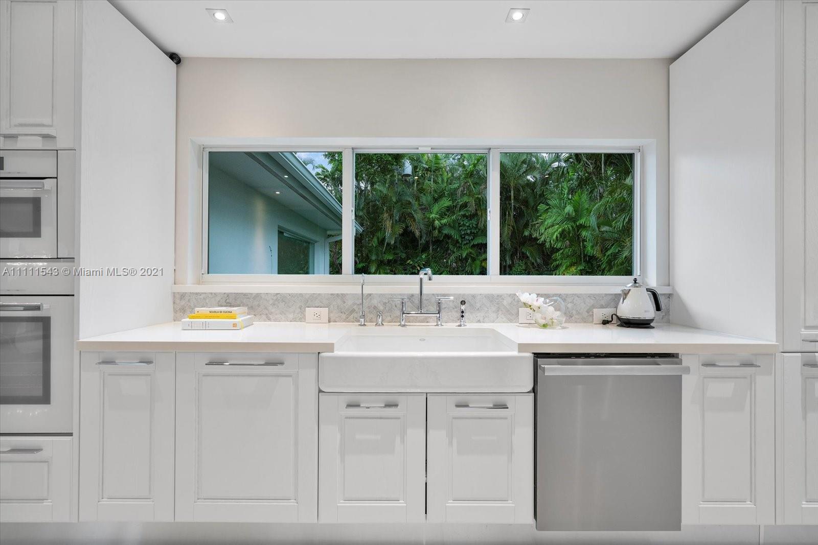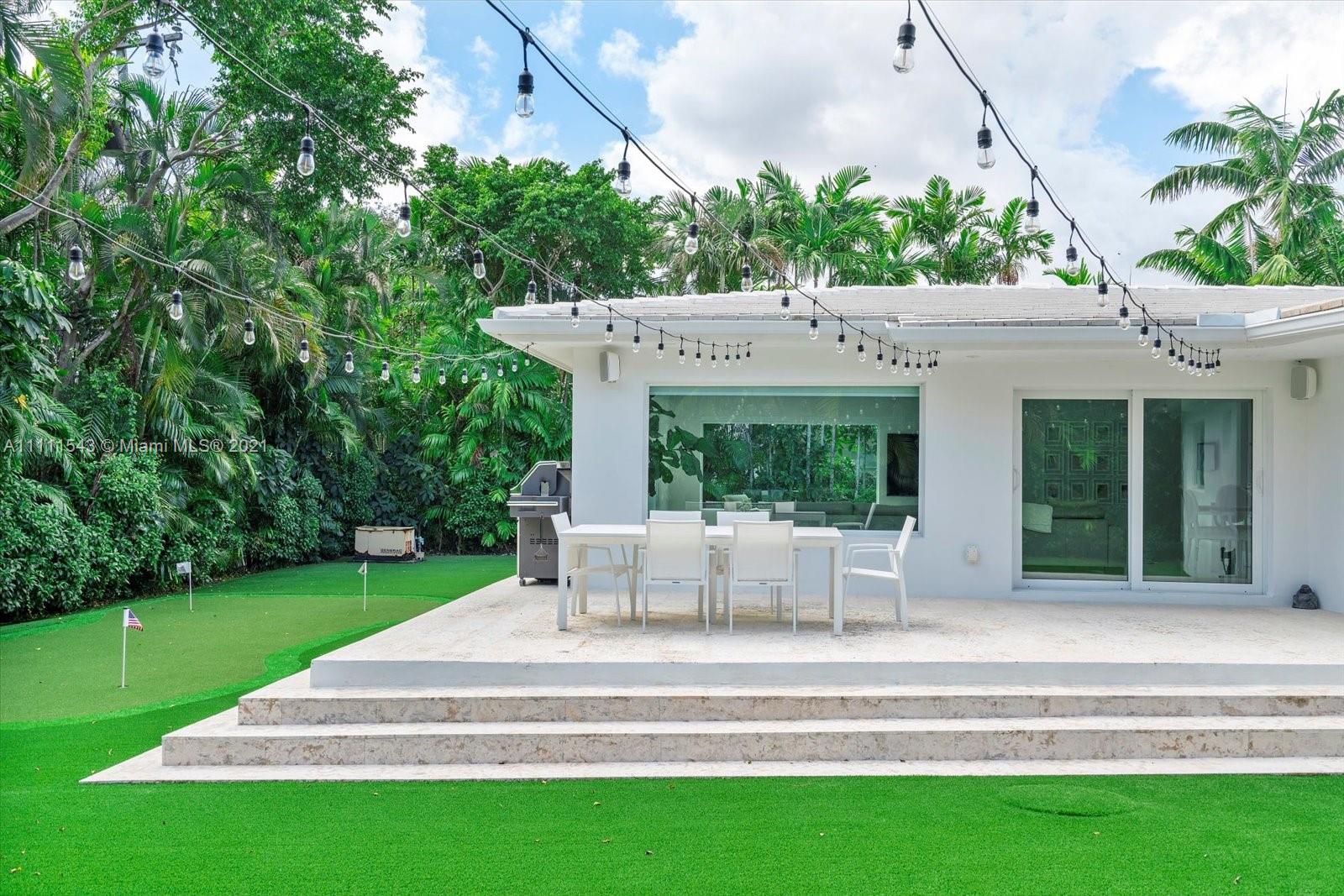 Miami Riches presents contemporary Miami Shores oasis meticulously remodeled East of Biscayne Blvd. Beautiful 4 bedroom and 3 full bathroom home on a 12,500 square foot lot. An open floor plan filled with light and oversized impact windows giving a panoramic view of expansive back yard paradise. Bring the outdoors in with large overlapping sliding doors that will take you to your personal putting green. Oversized Primary suite and a perfect floor plan with 3 bedrooms separate from the 4th ideal for guest room, office or service bedroom. Italian cabinets in the kitchen and top of the line Miele appliances throughout with breakfast nook. Every detail was thought of and elegantly finished from the built-in speakers to lighting.