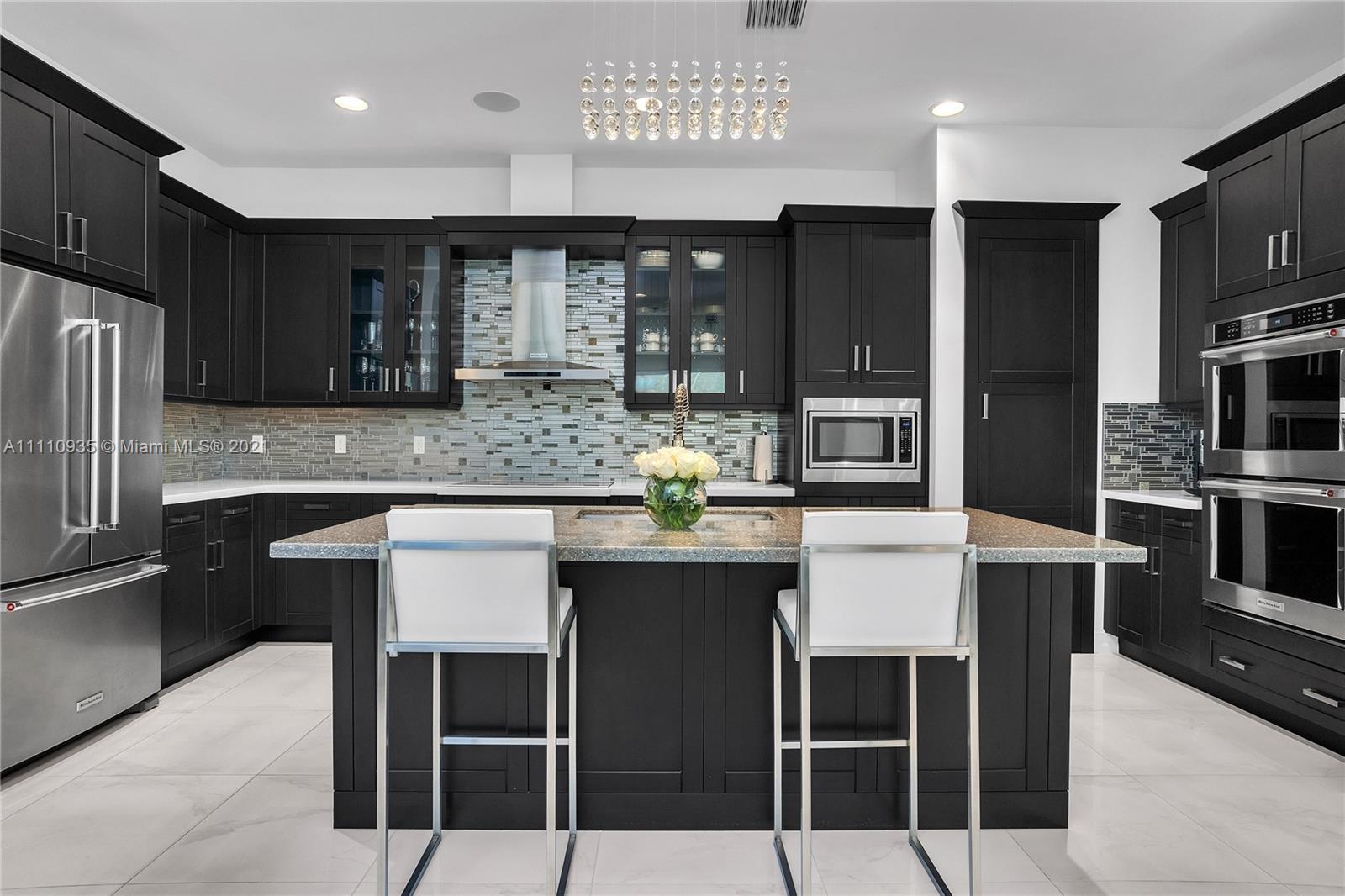 Stunning 4 bed, 4.5 bath + loft home. Impact windows & doors. Immaculate upgrades & finishes. Enter through double doors onto 24x24 porcelain tiles. Pass a beautifully appointed den to the kitchen with cambria & white ice quartz countertops, Kitchen Aid SS appliances, double oven, countertop stove and beautiful cabinets. Downstairs primary boasts dual walk-in closets with designer shelving. Primary bath has premium finishes incl. rain shower, twin basins, Moen fixtures & personalized tile pattern. Home has fabulous lighting fixtures throughout, wood stairs and railings. Step outside to your pool surrounded by travertine tiles. Sit under your covered pergola on this very large lot to enjoy the lake. Home has security cameras & built-in ceiling speakers. Community has gym, clubhouse & pool.