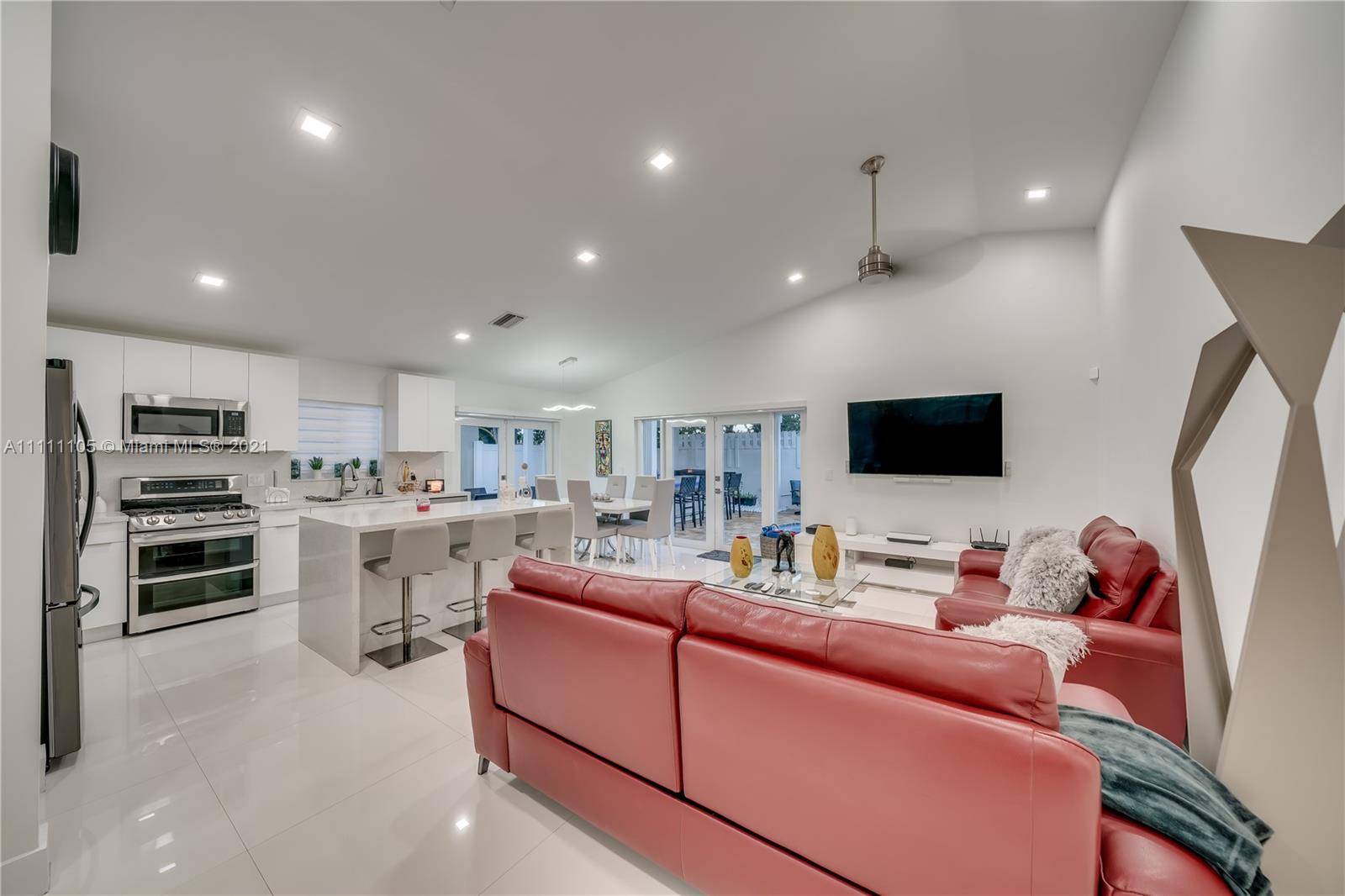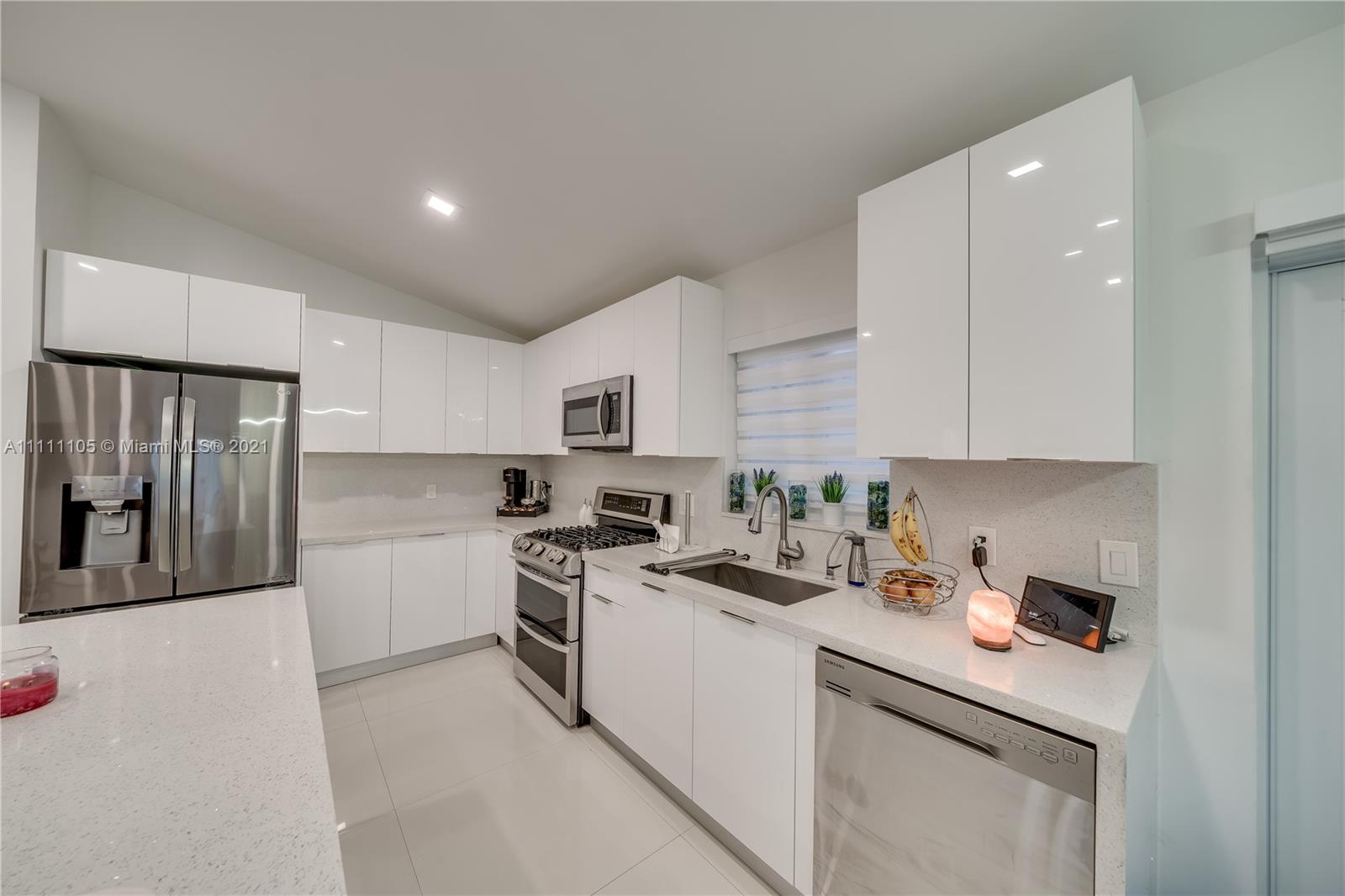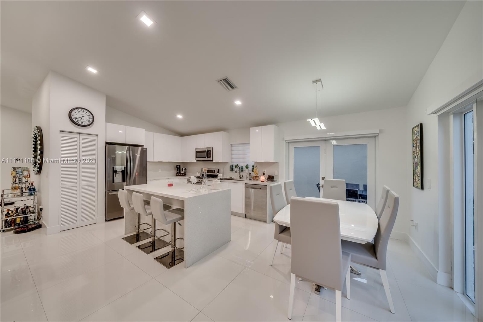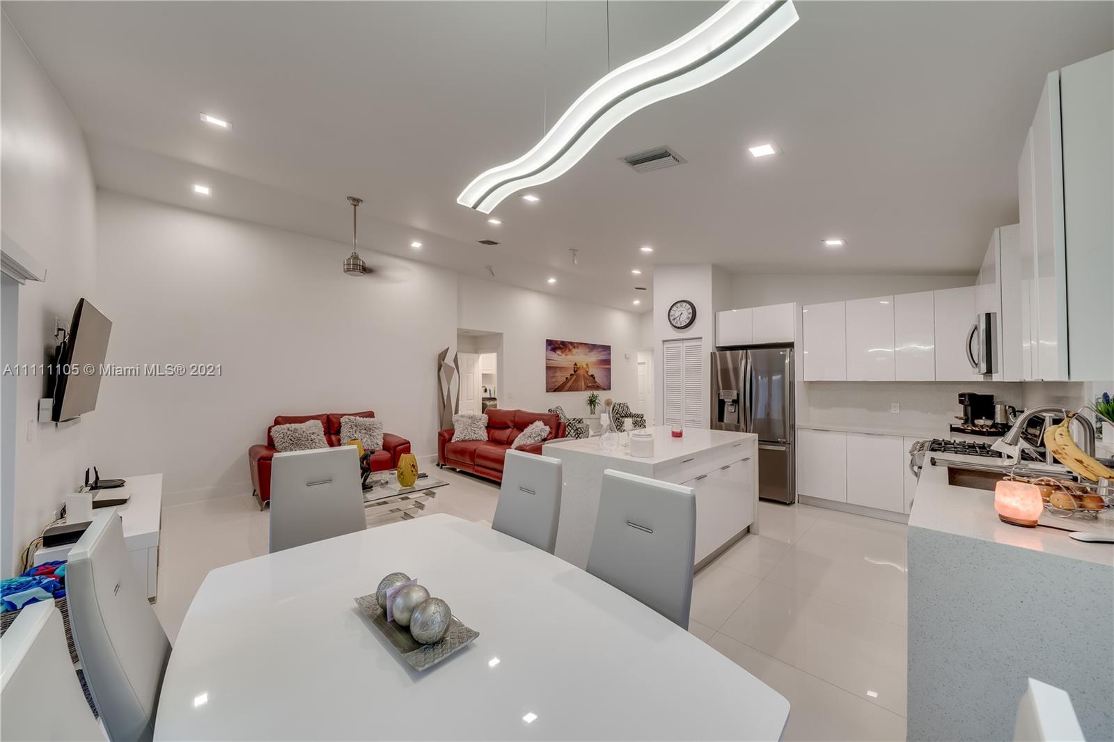 Beautifully fully remodeled 4/2 with Pool. Modern and Contemporary look. High Impact doors and windows, a new pool pump, also the pool was resurfaced in March this year, New Summer Kitchen with underground gas installation so forget about buying a gas tank, 2 mini fridge, wine fridge with dual temperatures in outdoor kitchen, travertine marble in patio, Vaulted ceilings, with LED Lights throughout and white glossy 32x32 porcelain floors. European Style white glossy Kitchen cabinets have an Open Floor concept overlooking the family room and pool. Quartz counters. Gas Stove, double over LG & fridge LG double ice maker are less than 1 yr, Gas Water heater/Gas dryer, smart outlet and switches in living area, kitchen and patio. Cable and Blast Internet included in HOA. Excellent schools.