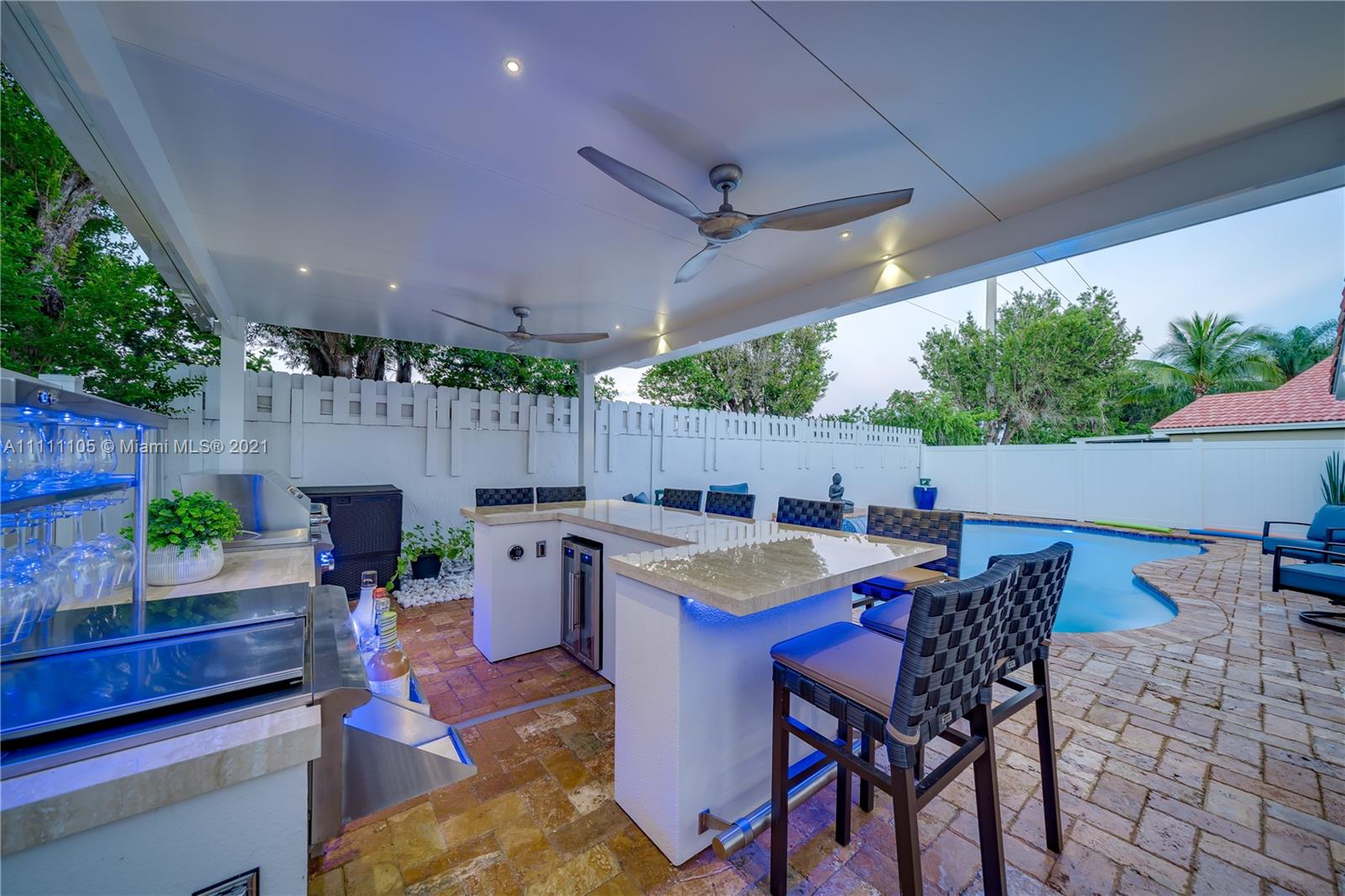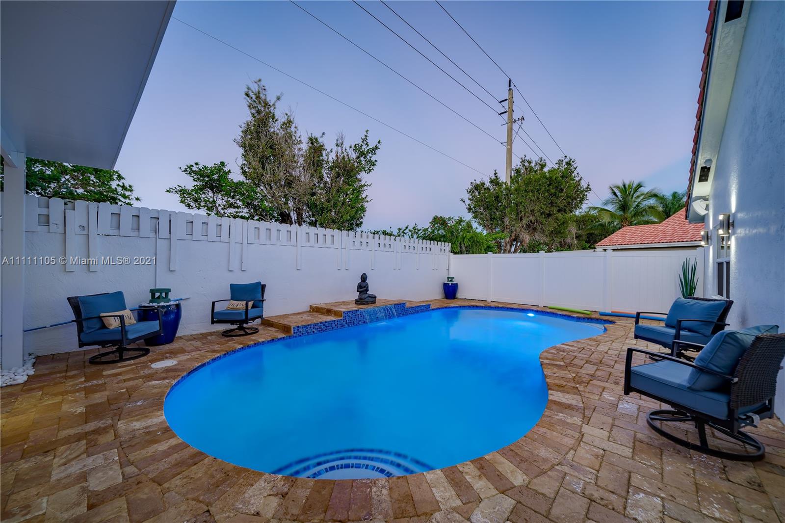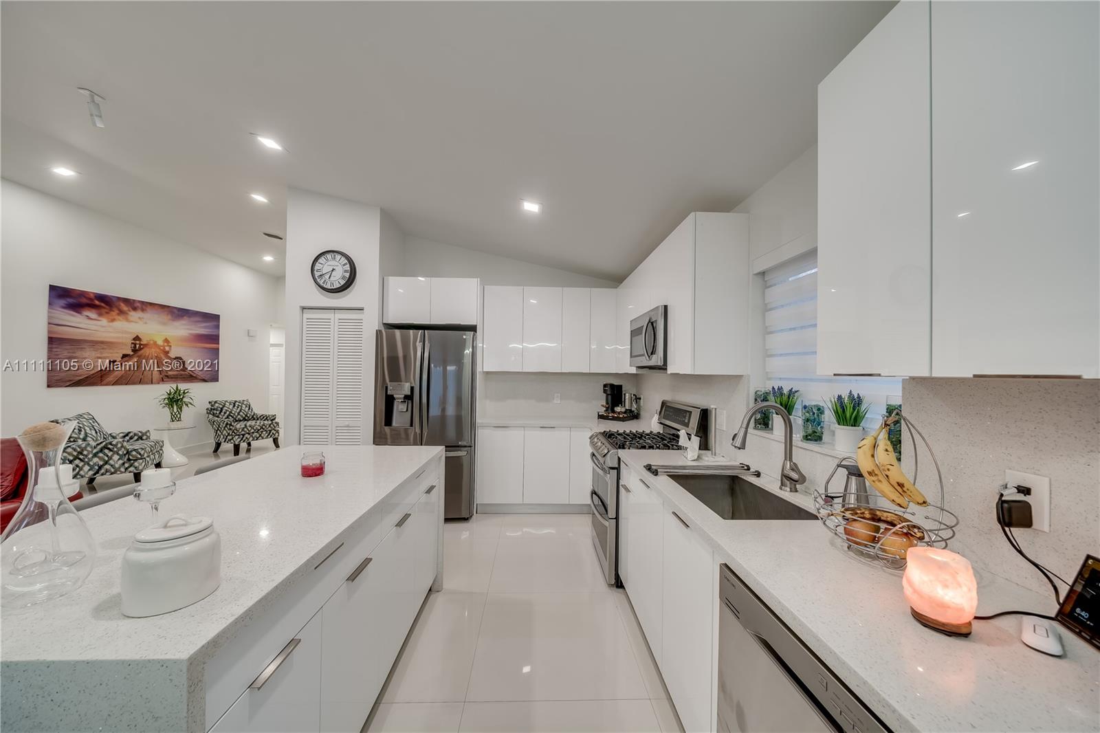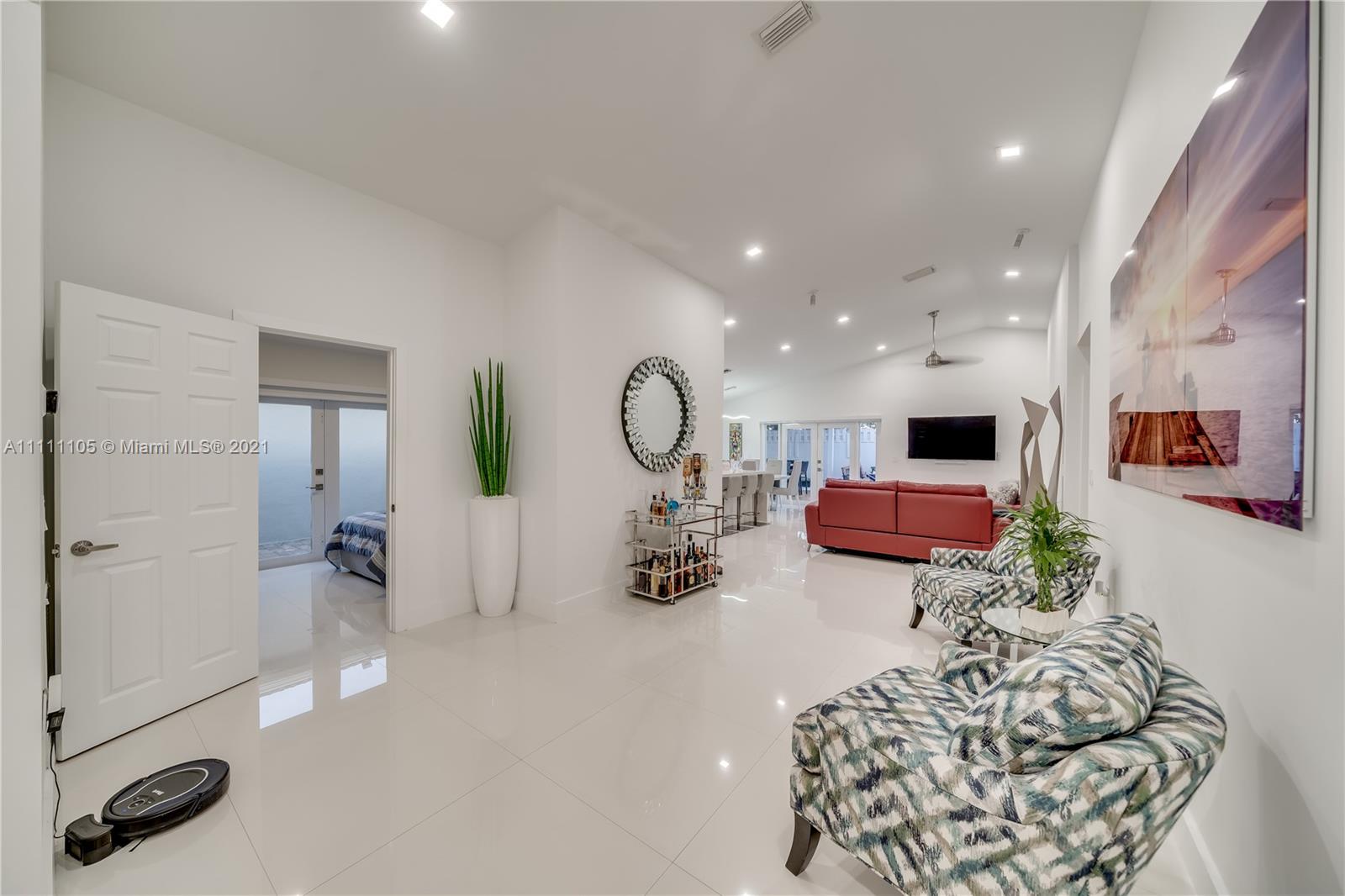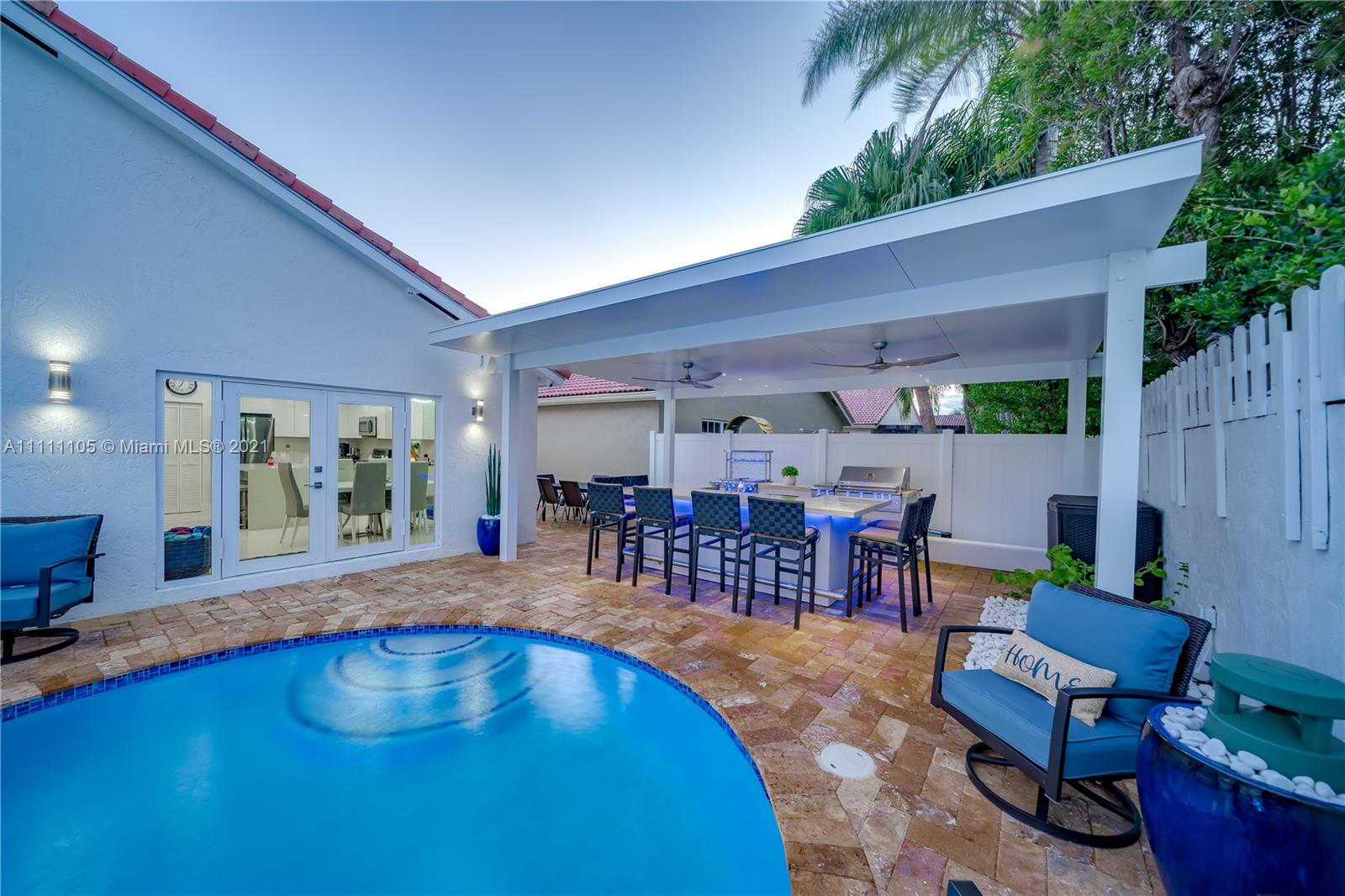 Beautifully fully remodeled 4/2 with Pool. Modern and Contemporary look. High Impact doors and windows, a new pool pump, also the pool was resurfaced in March this year, New Summer Kitchen with underground gas installation so forget about buying a gas tank, 2 mini fridge, wine fridge with dual temperatures in outdoor kitchen, travertine marble in patio, Vaulted ceilings, with LED Lights throughout and white glossy 32x32 porcelain floors. European Style white glossy Kitchen cabinets have an Open Floor concept overlooking the family room and pool. Quartz counters. Gas Stove, double over LG & fridge LG double ice maker are less than 1 yr, Gas Water heater/Gas dryer, smart outlet and switches in living area, kitchen and patio. Cable and Blast Internet included in HOA. Excellent schools.