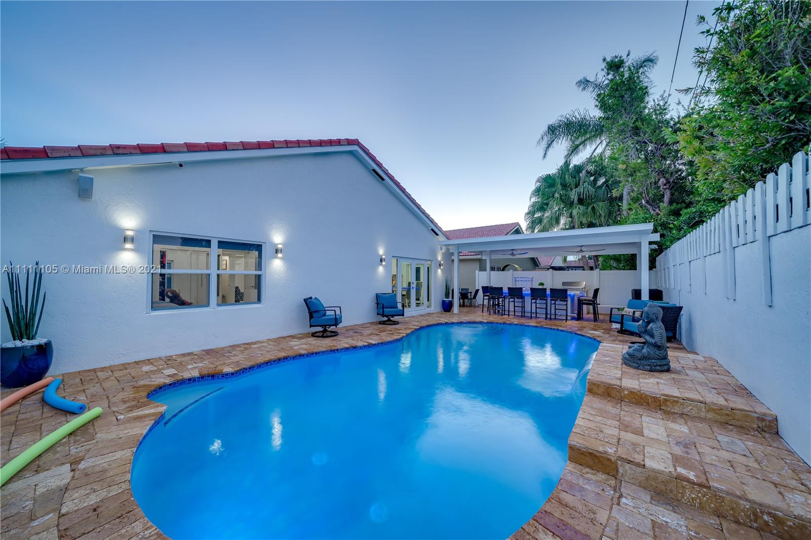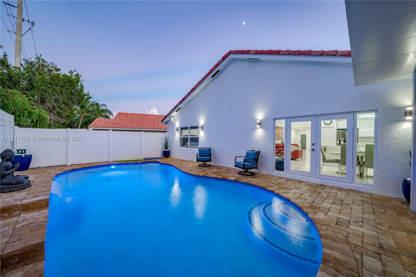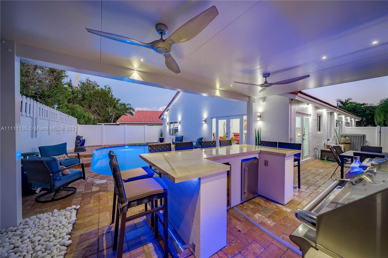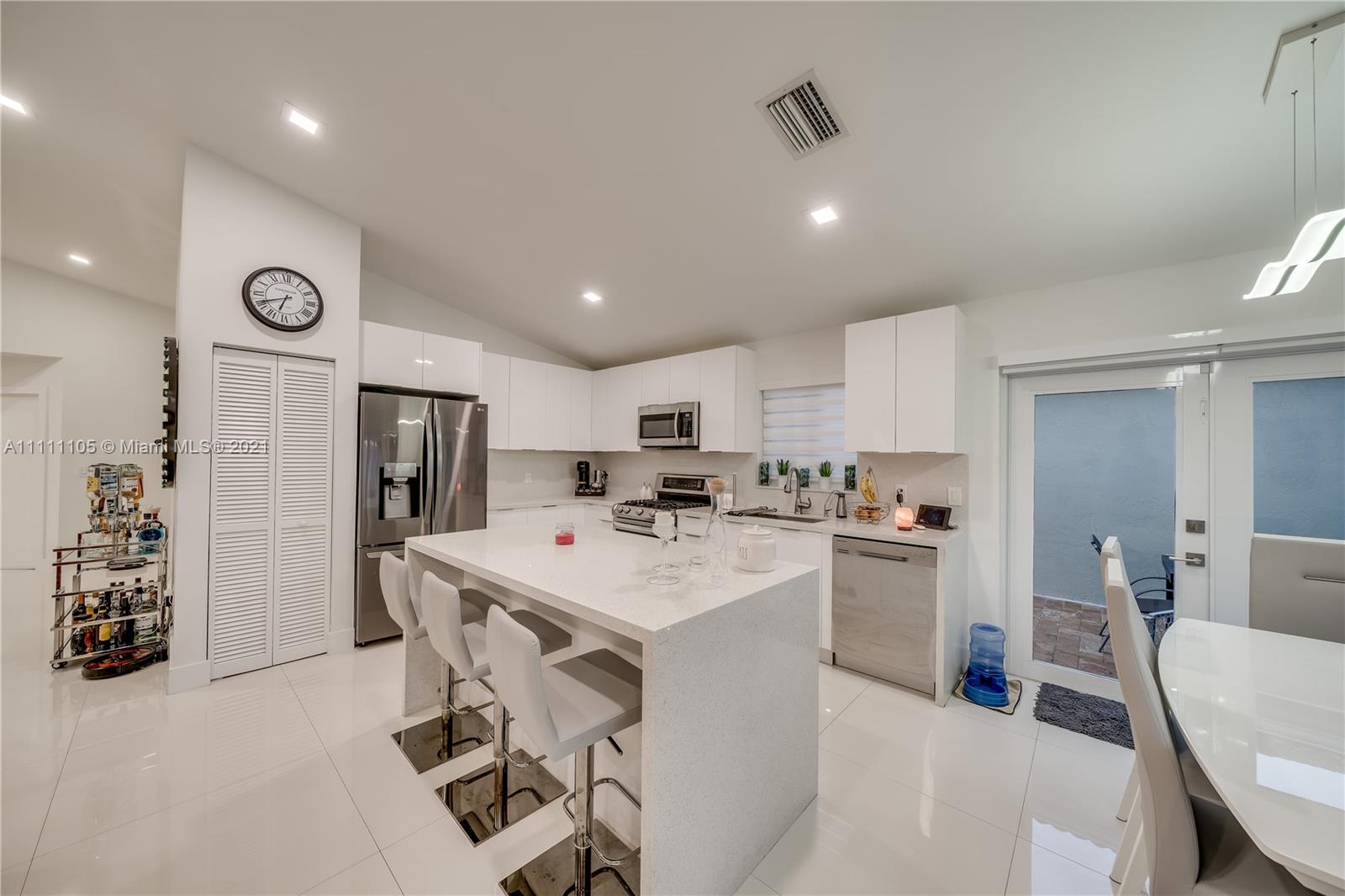 Beautifully fully remodeled 4/2 with Pool. Modern and Contemporary look. High Impact doors and windows, a new pool pump, also the pool was resurfaced in March this year, New Summer Kitchen with underground gas installation so forget about buying a gas tank, 2 mini fridge, wine fridge with dual temperatures in outdoor kitchen, travertine marble in patio, Vaulted ceilings, with LED Lights throughout and white glossy 32x32 porcelain floors. European Style white glossy Kitchen cabinets have an Open Floor concept overlooking the family room and pool. Quartz counters. Gas Stove, double over LG & fridge LG double ice maker are less than 1 yr, Gas Water heater/Gas dryer, smart outlet and switches in living area, kitchen and patio. Cable and Blast Internet included in HOA. Excellent schools.