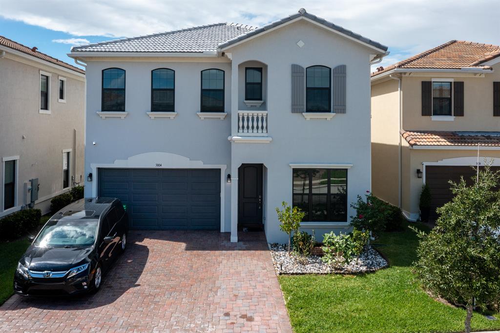 Beautiful open floor plan 6 bedroom, 4 full bathroom, 2 car garage home in the new gated community of Coral Lago. Master bedroom, located on the first floor, features a tray ceiling, with ensuite bathroom and a large walk-in closet. Additional guest bedroom located on first floor, off of entry way. Four bedrooms upstairs, each having ample closet space, that share a large loft area. Home has been freshly painted throughout in neutral colors. Kitchen has SS appliances, a large quartz kitchen island and countertops, with plenty of cabinet storage and a large pantry. Relaxing outdoor space, with extra pavers included if you want to extend the back patio area. Save yourself the hassle of new construction, this home was built in 2019, ready for you to bring your things and make it your own!